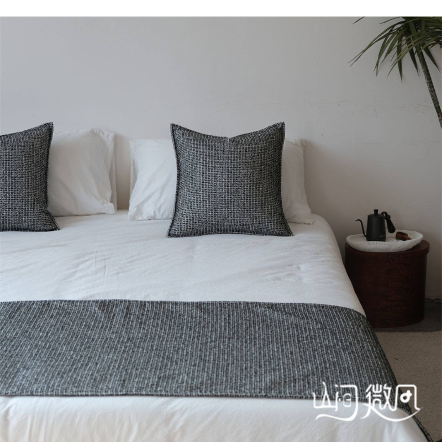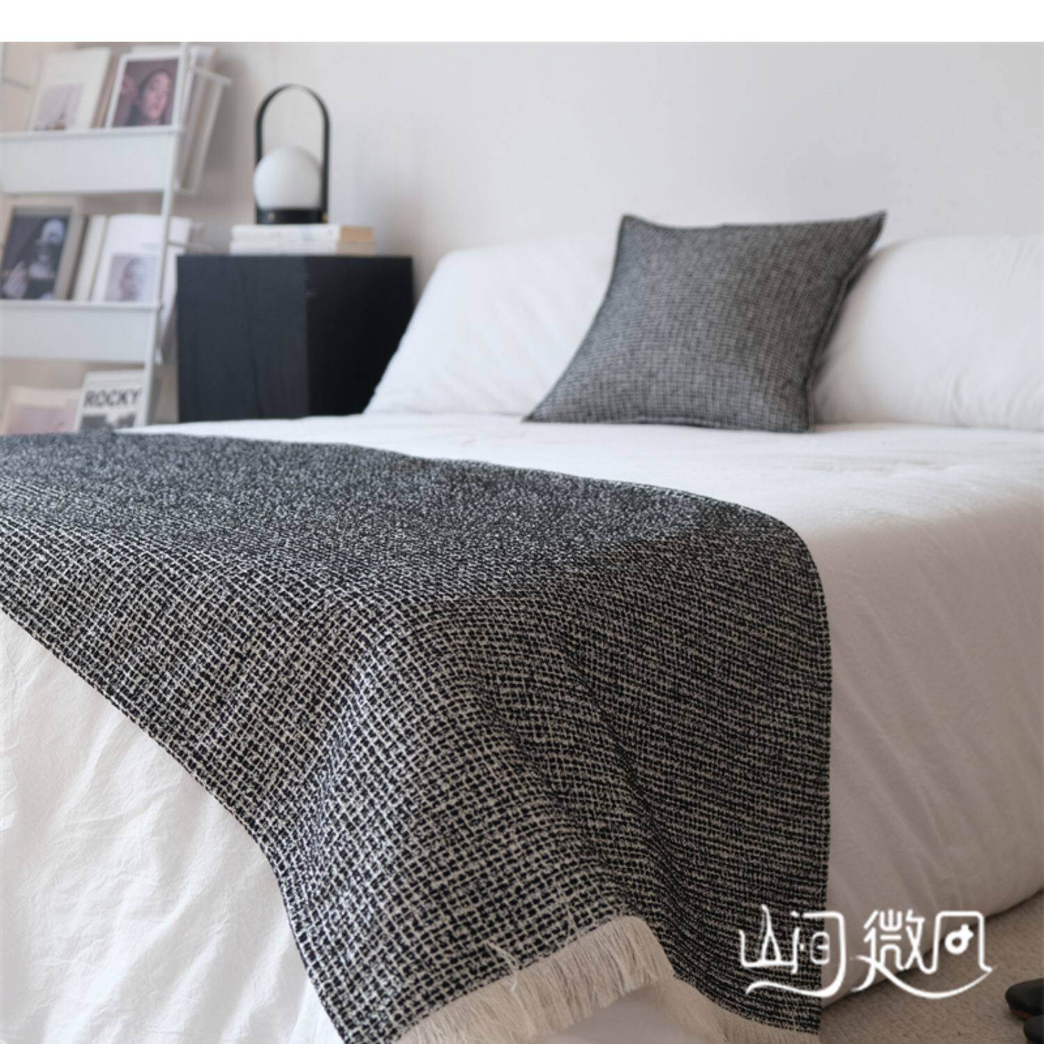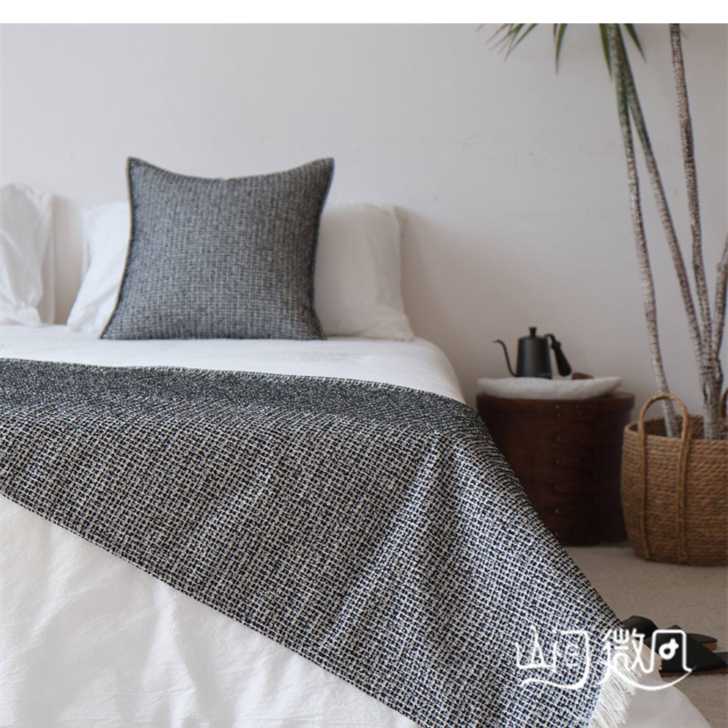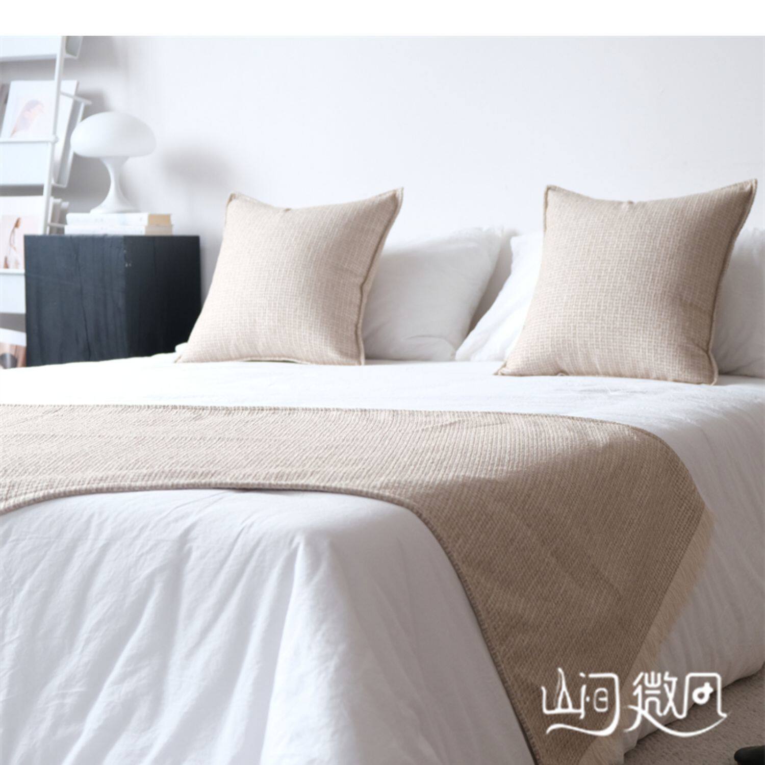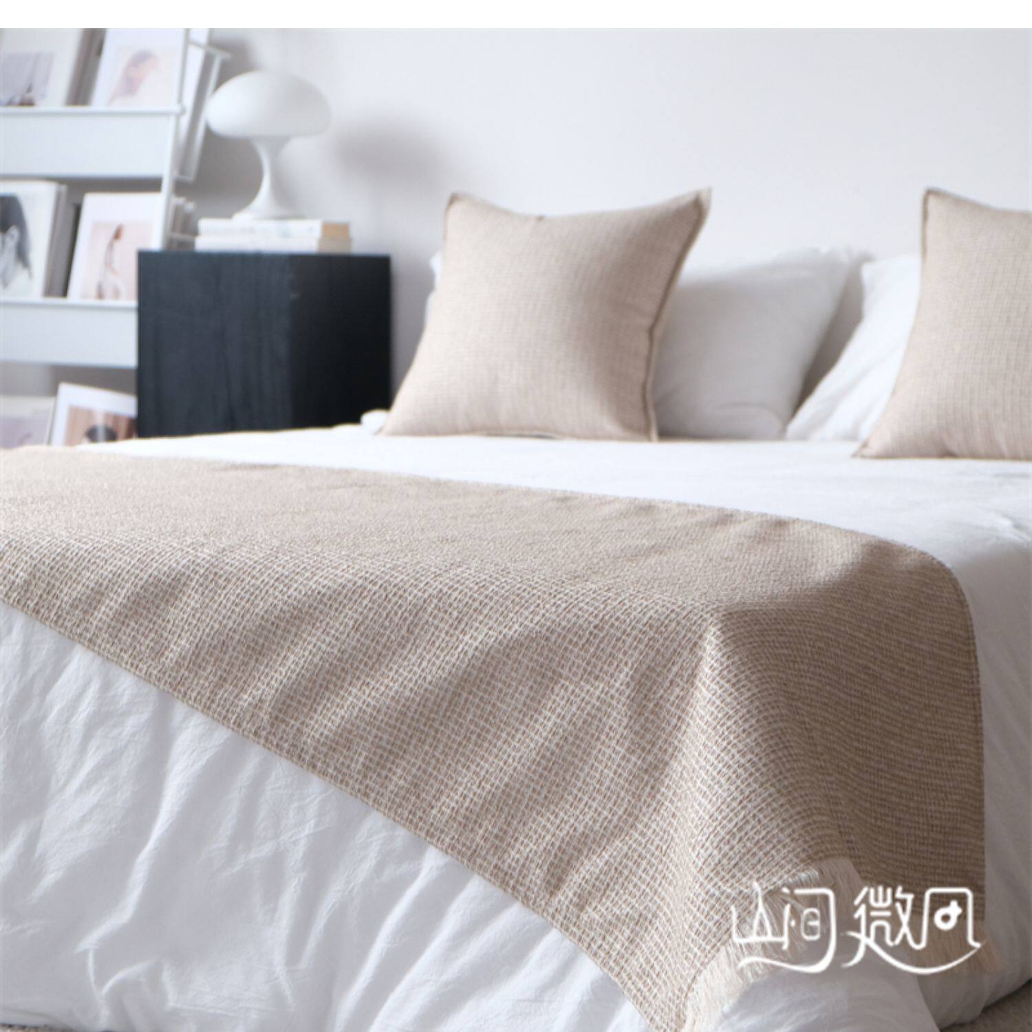 床尾毯咖色侘寂風中古風床尾巾搭毯搭巾新中式民宿酒店樣板間床旗