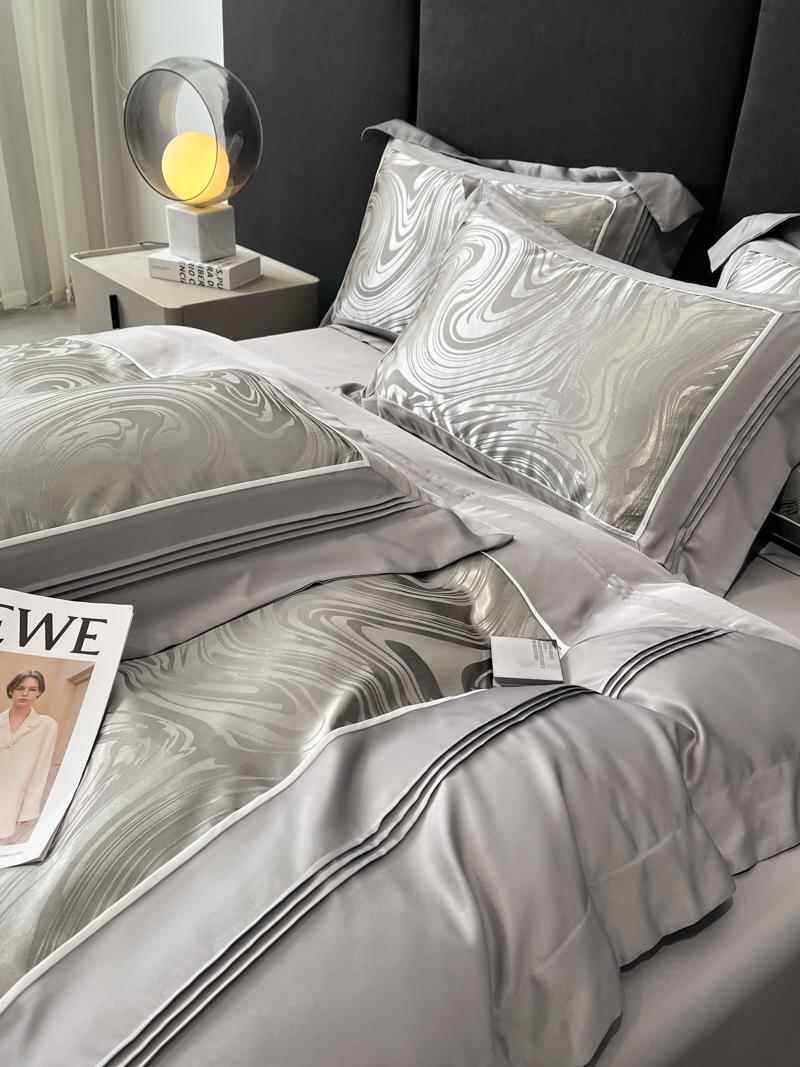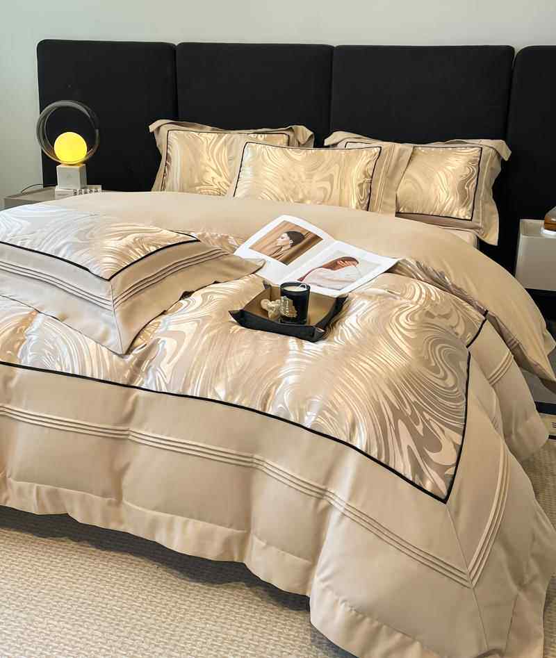 輕奢100s四件套端貢緞提花被套床床包裸睡床上用品4