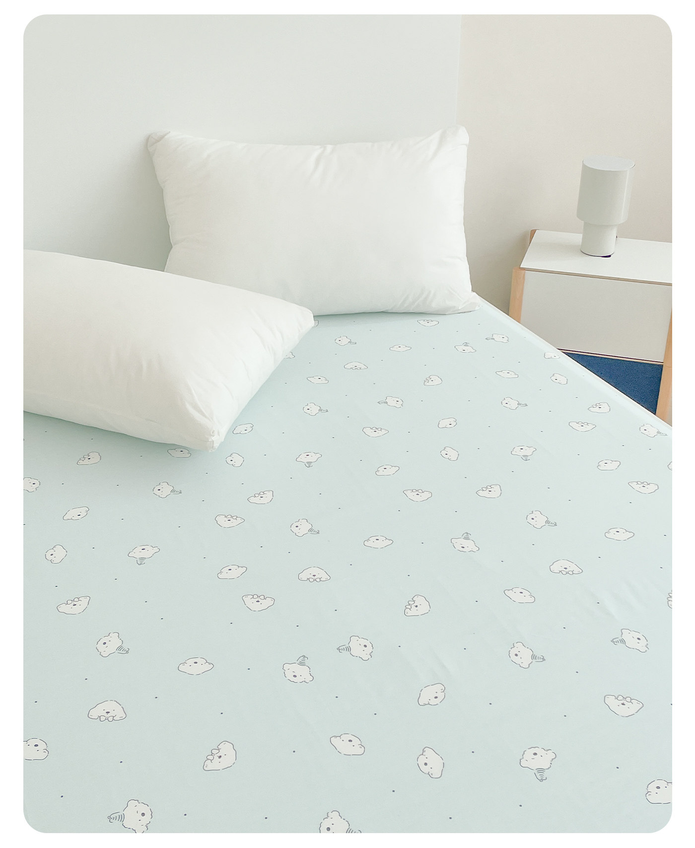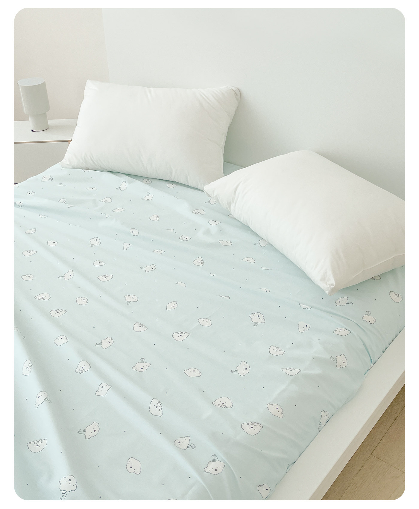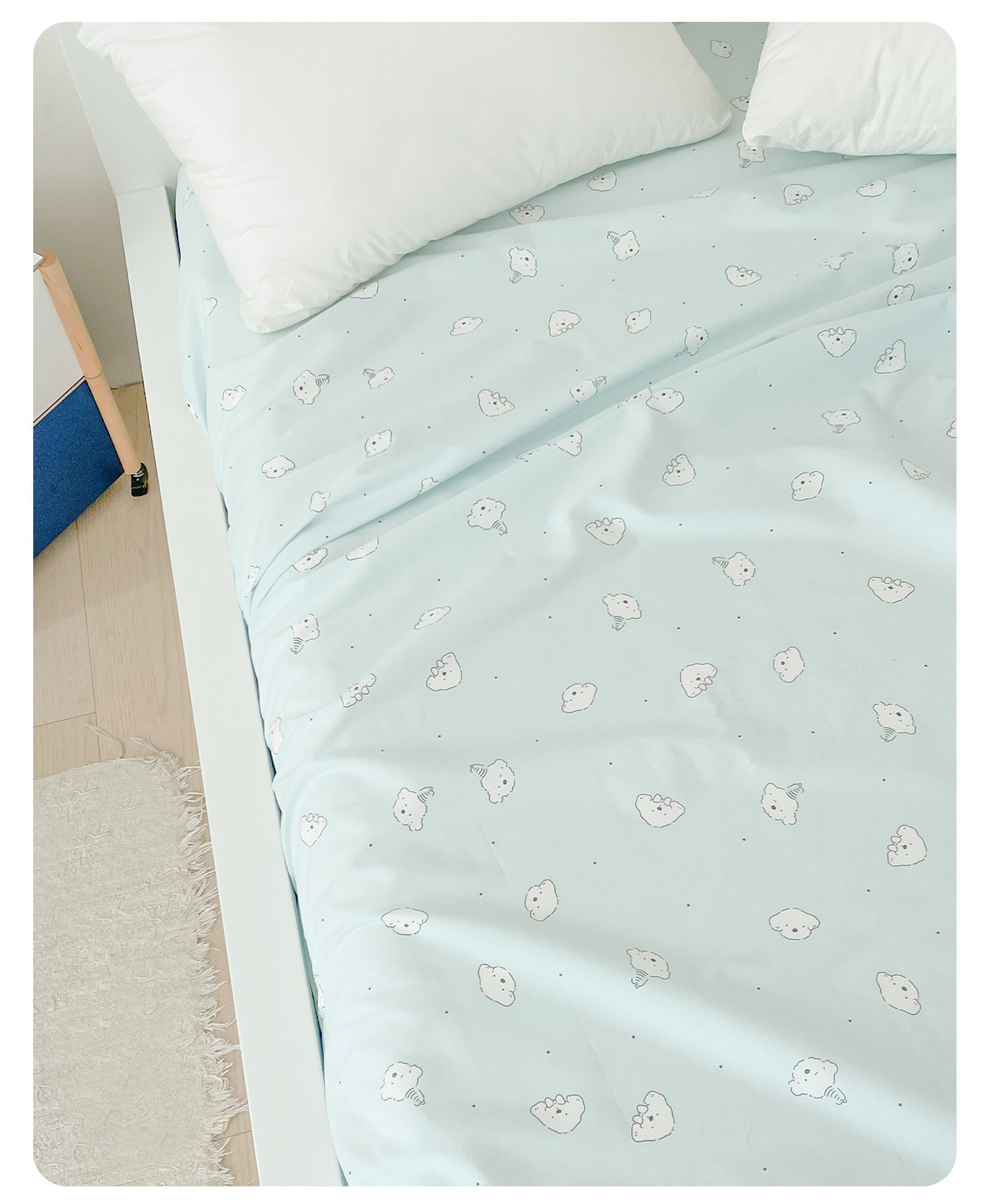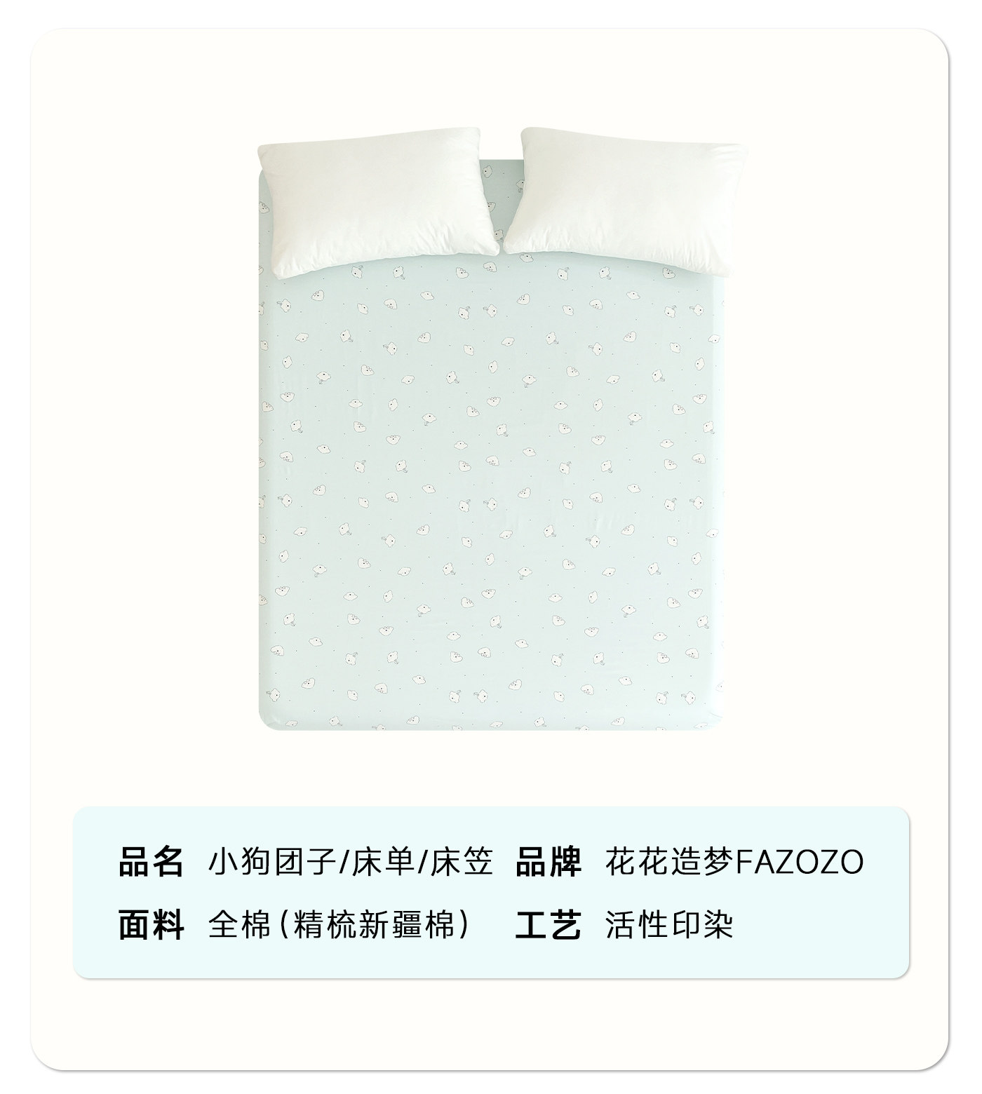 小狗團子 乾淨藍色系全棉床單床包原創可愛小白狗插畫100純棉單件