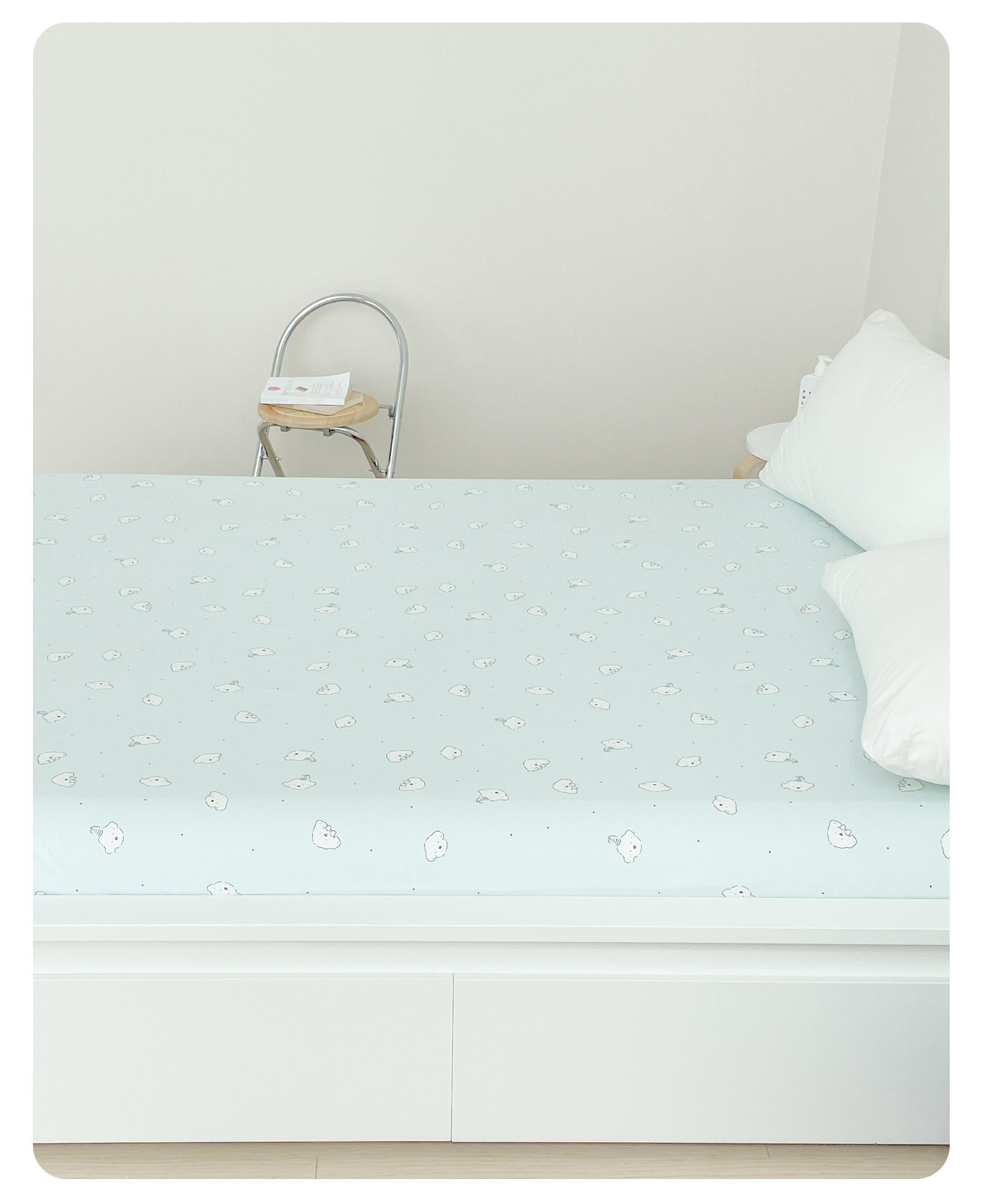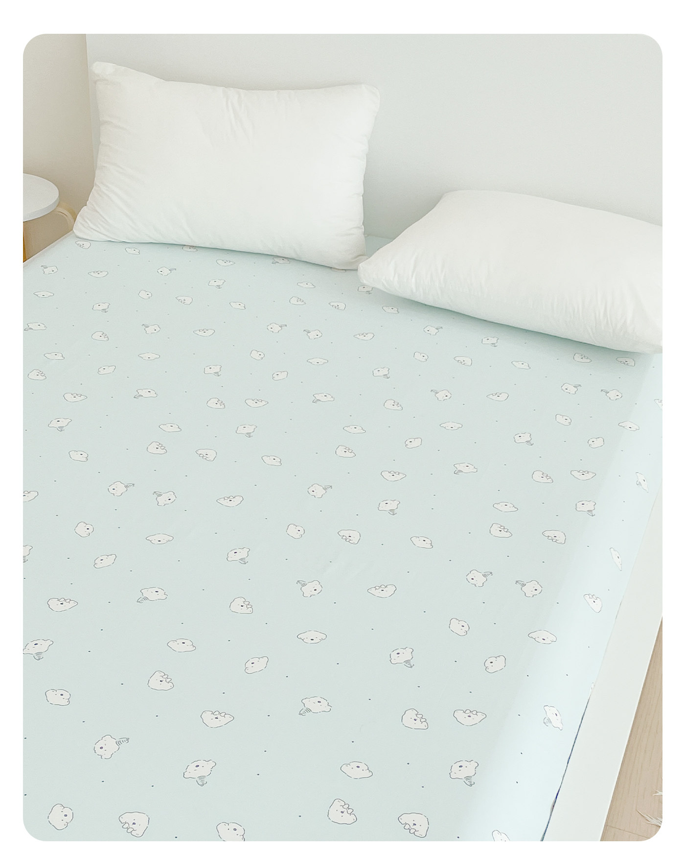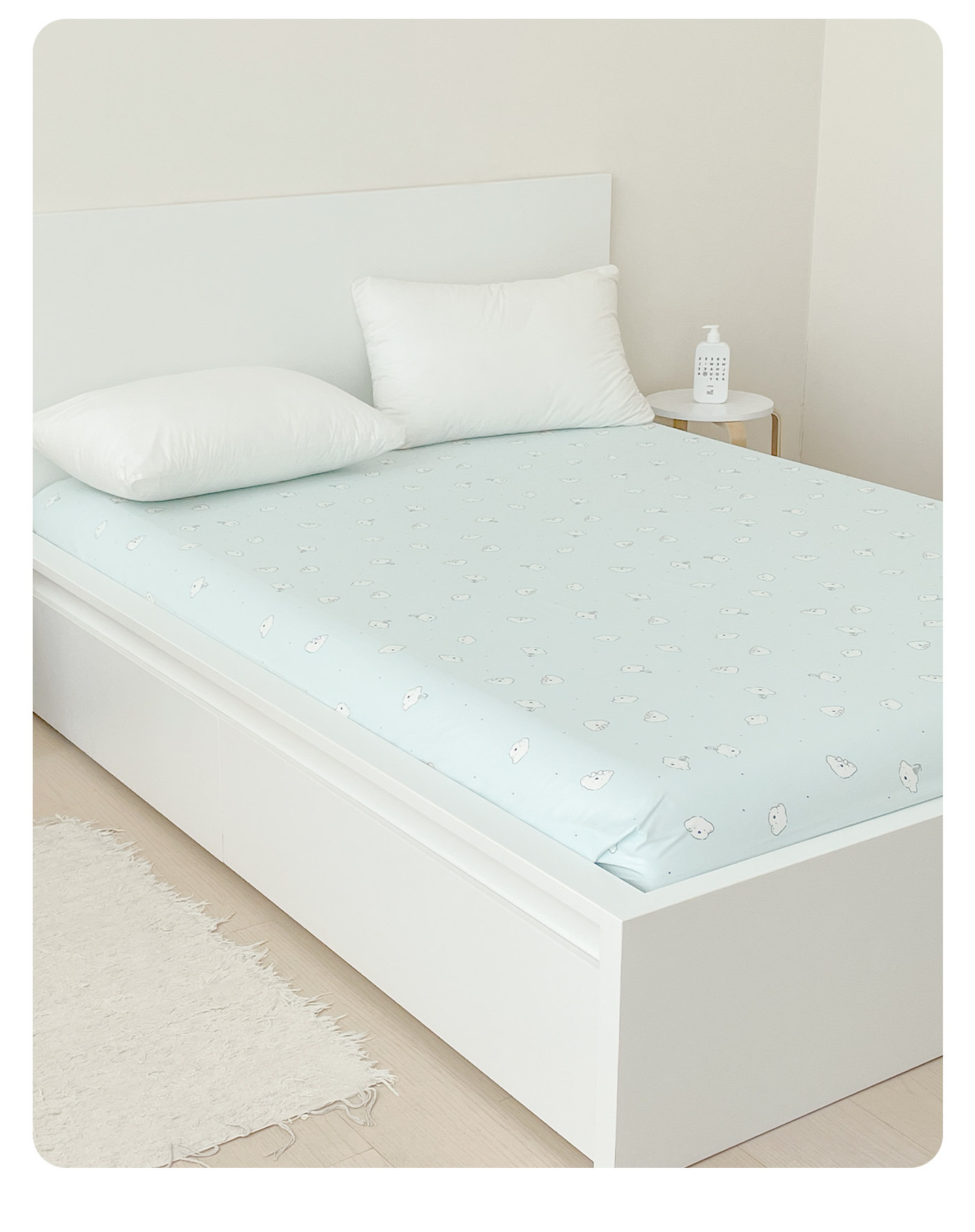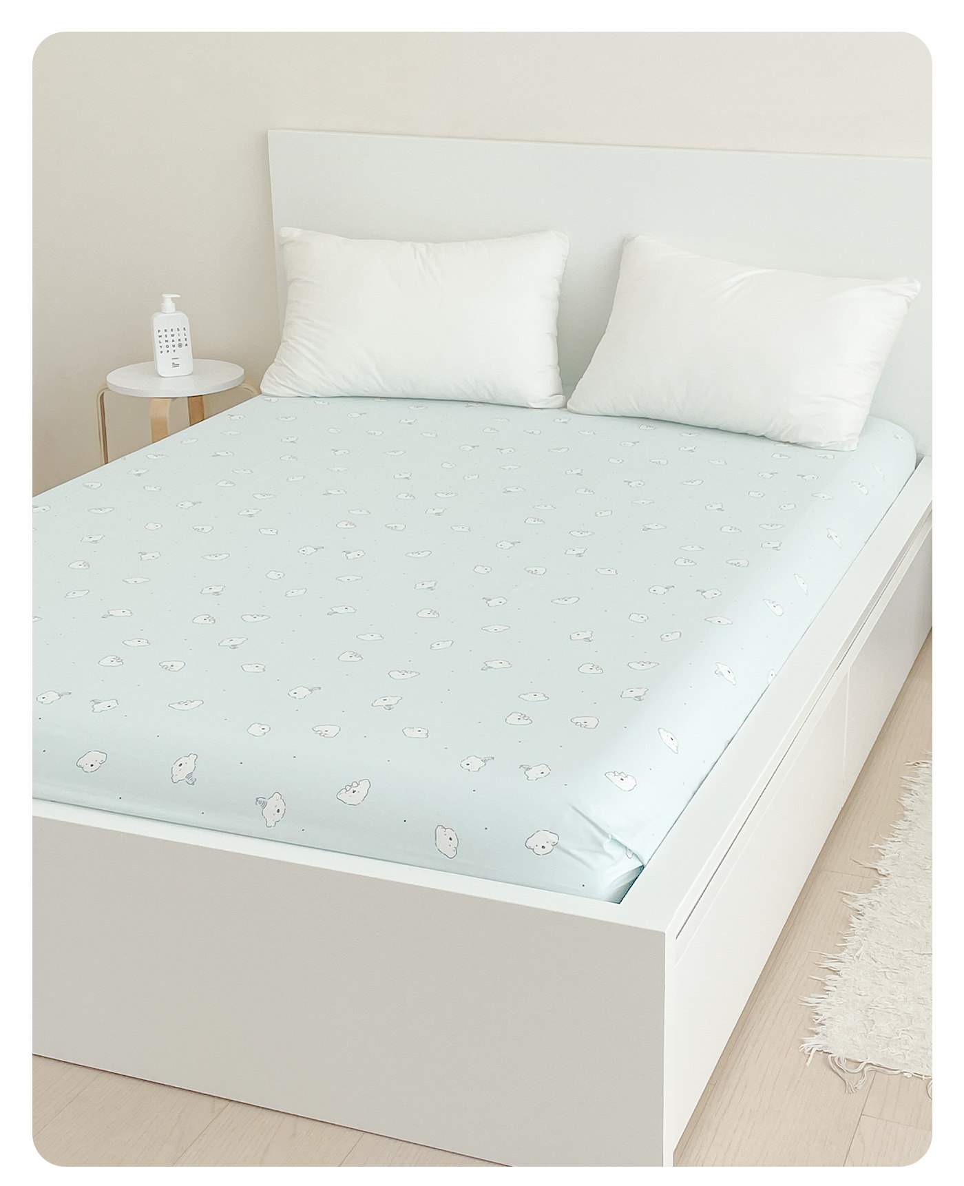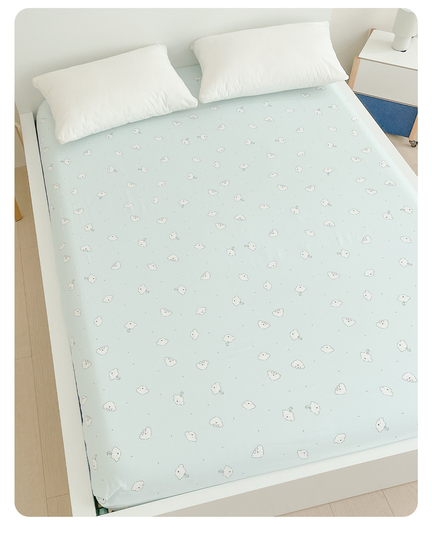 小狗團子 乾淨藍色系全棉床單床包原創可愛小白狗插畫100純棉單件