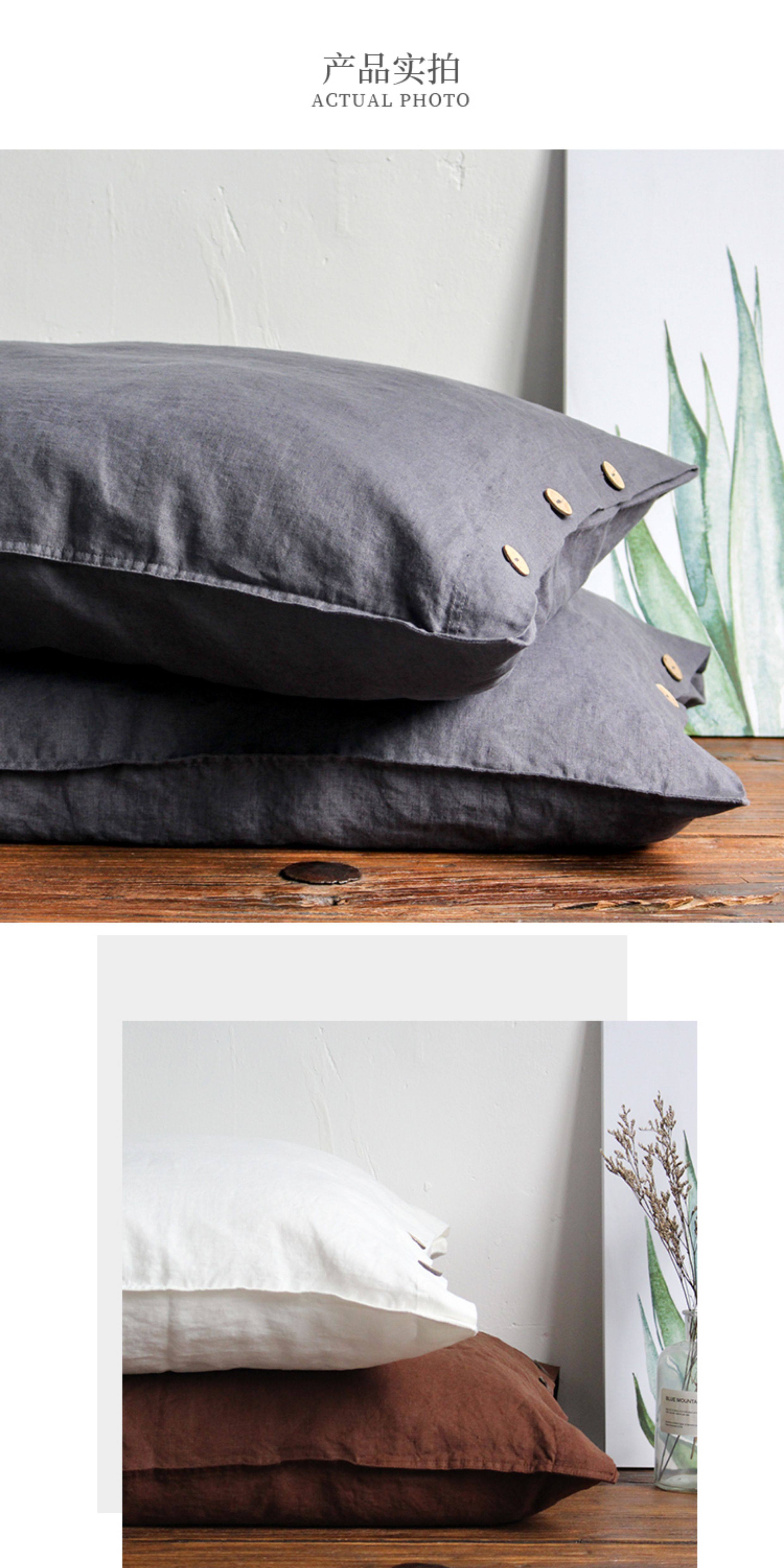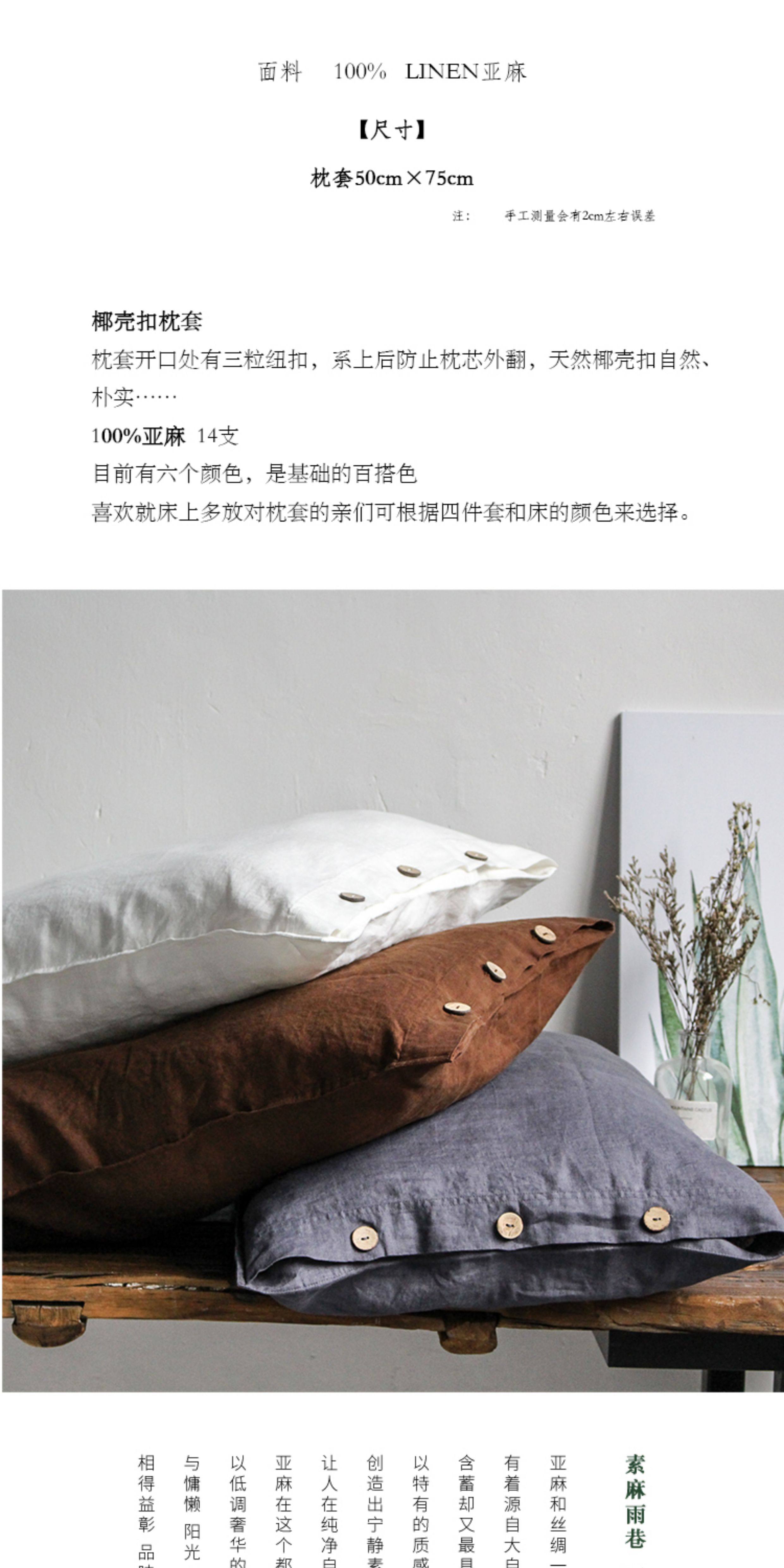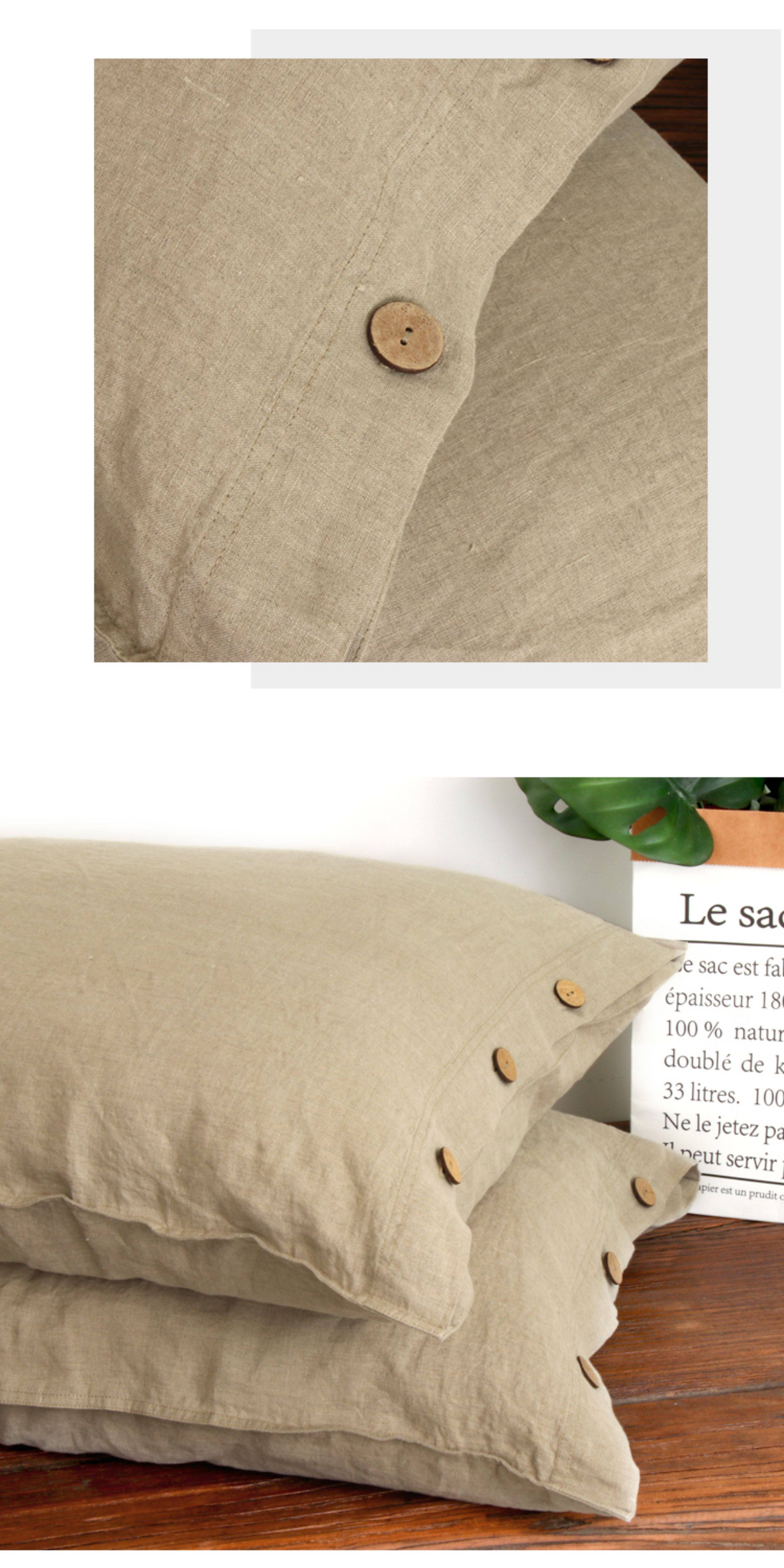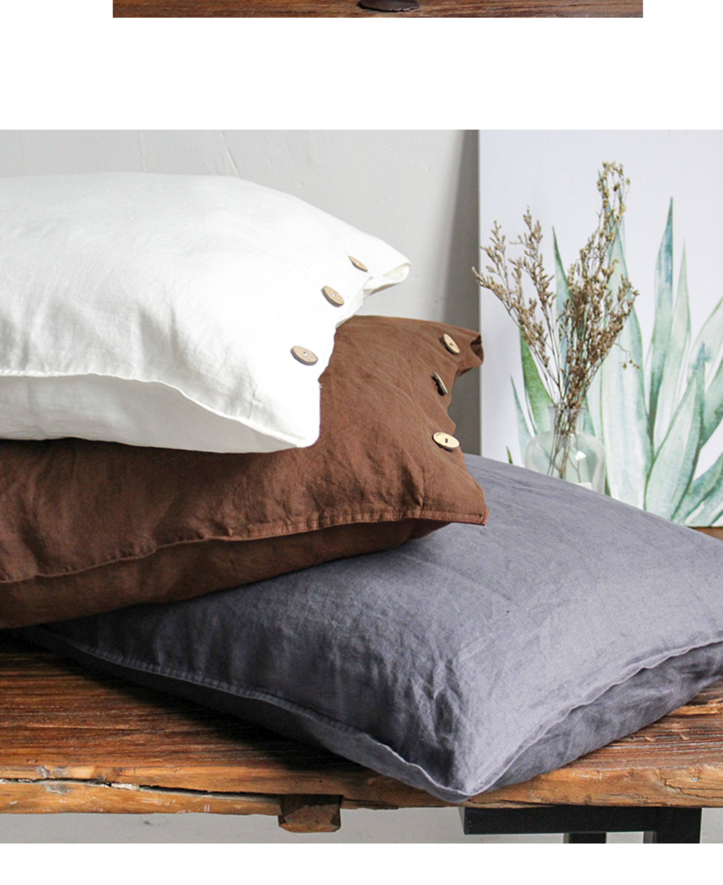 素麻雨巷 水洗純亞麻枕套椰殼紐釦款單人枕套抑菌抗過敏親膚透氣