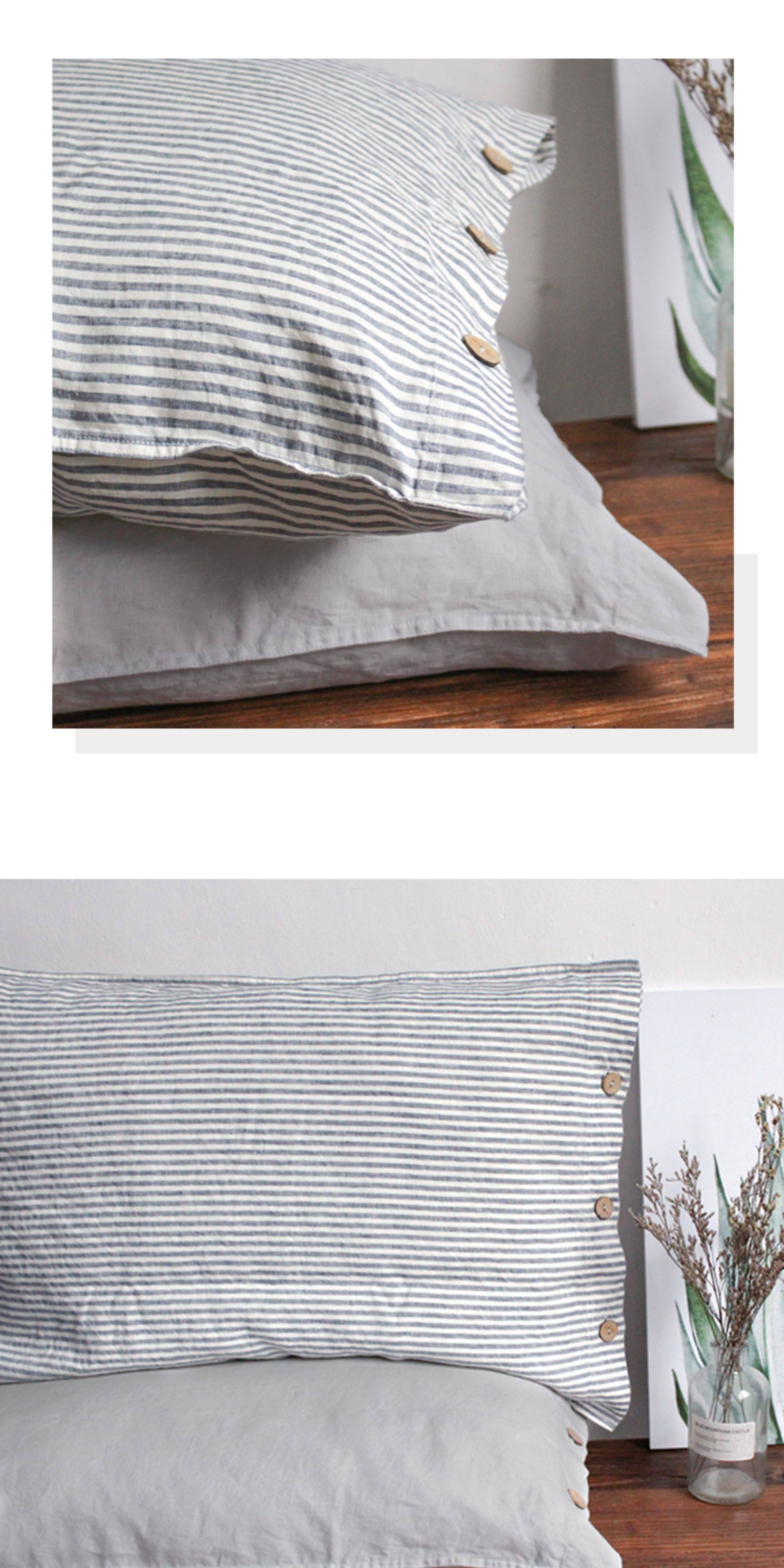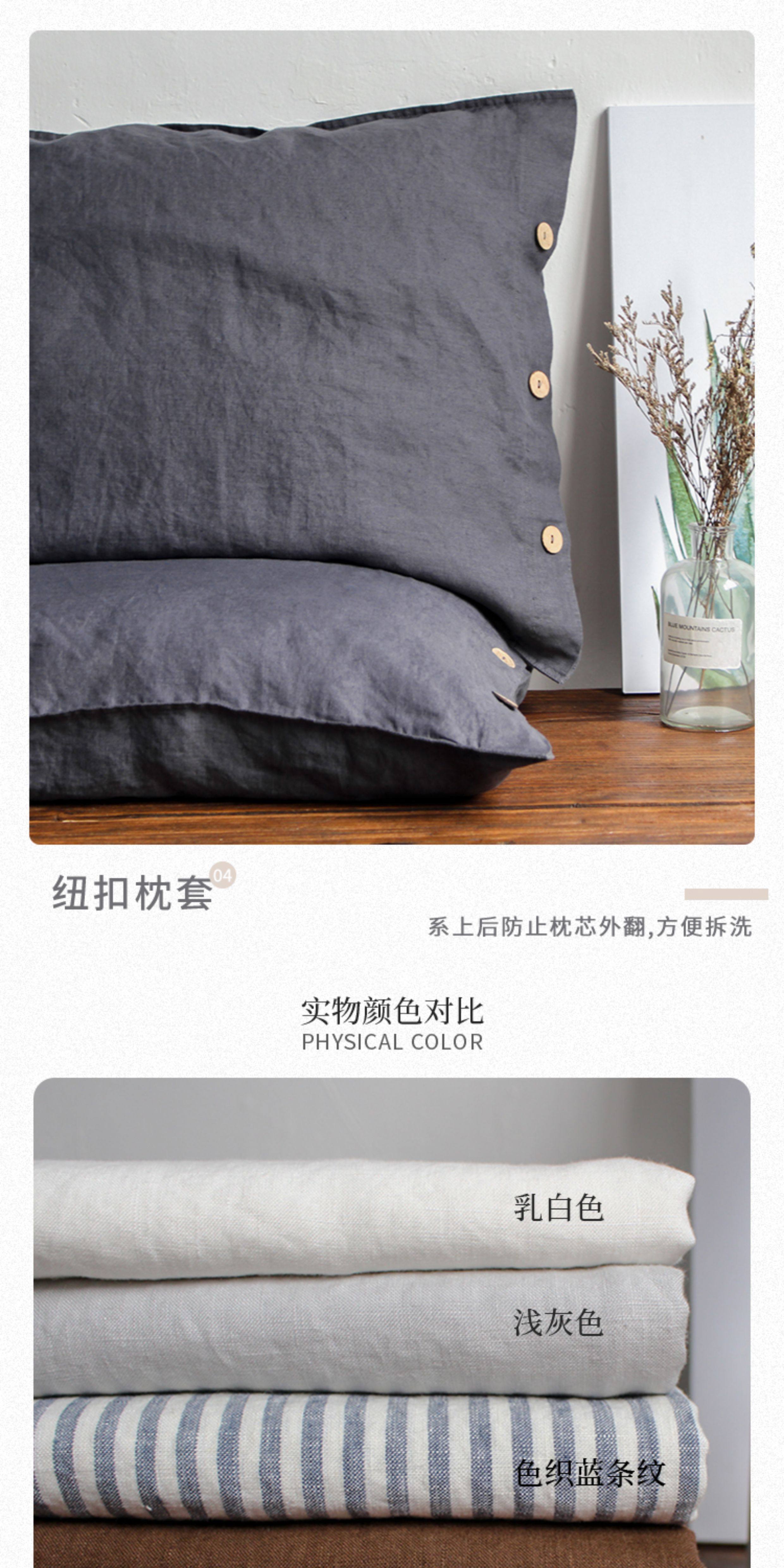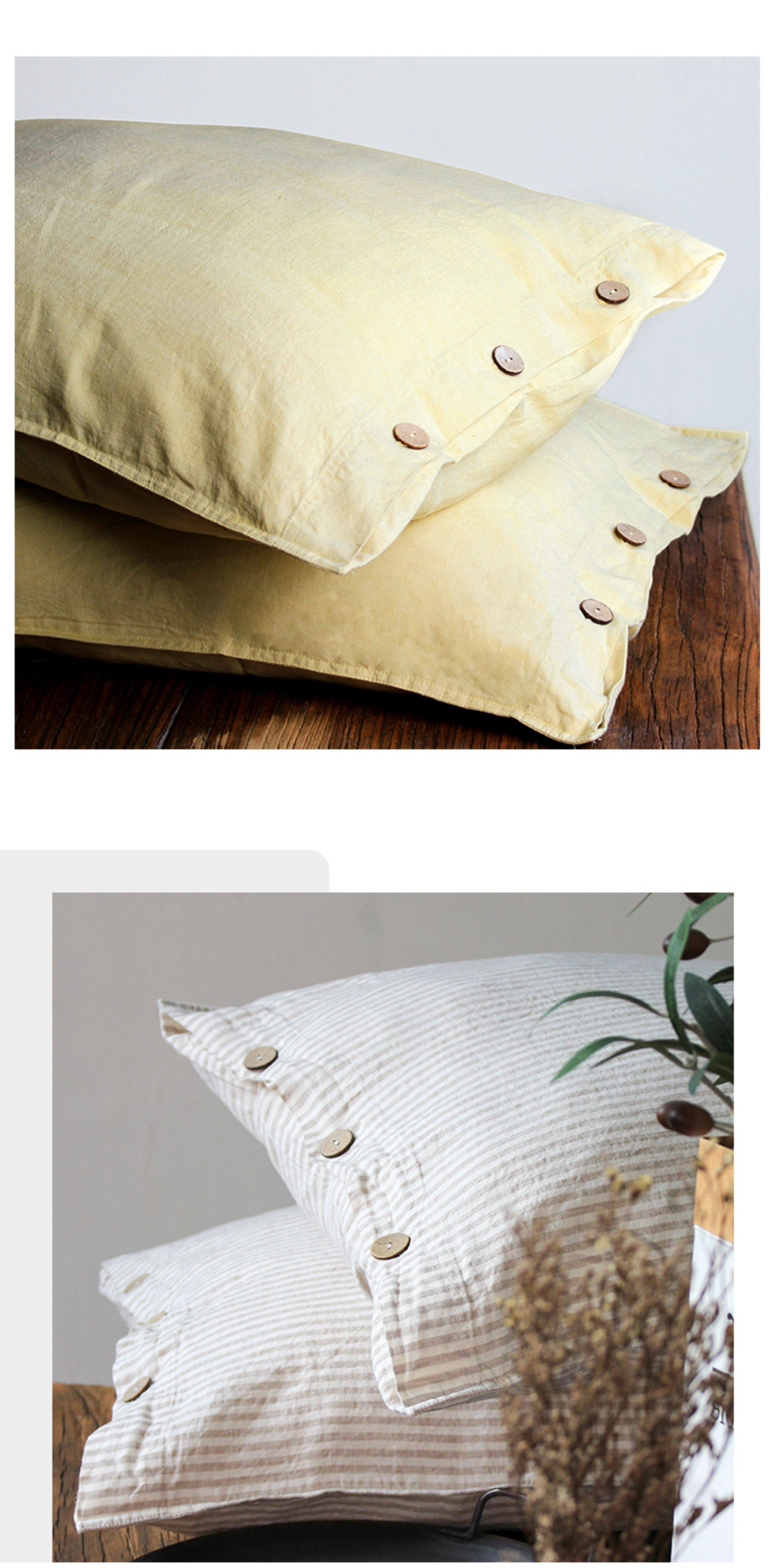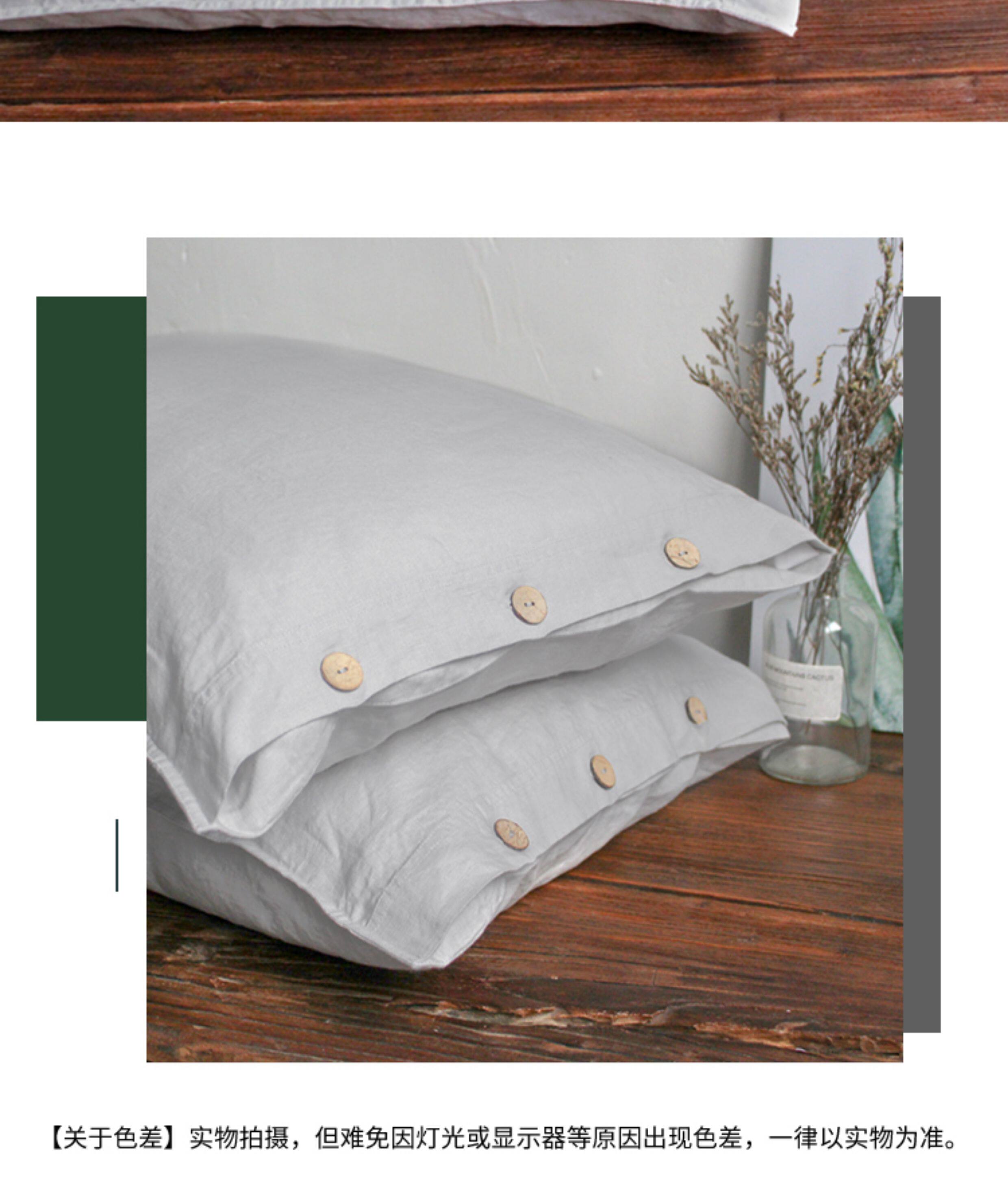 素麻雨巷 水洗純亞麻枕套椰殼紐釦款單人枕套抑菌抗過敏親膚透氣