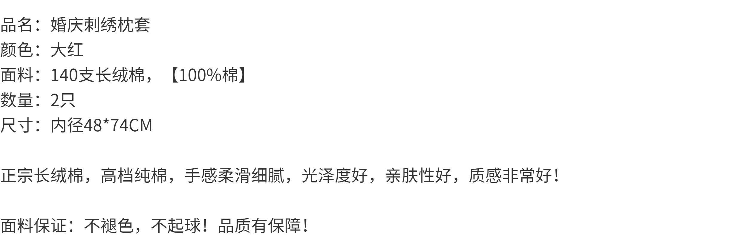 140支長絨棉刺綉枕套大紅加厚純棉喜字提花結婚床品48*74百子牡丹