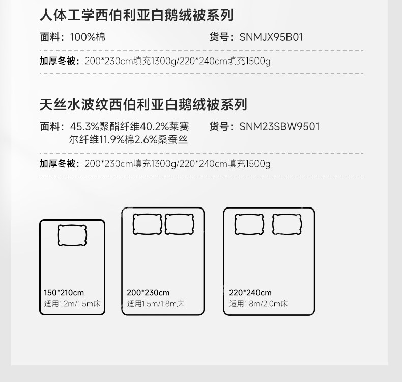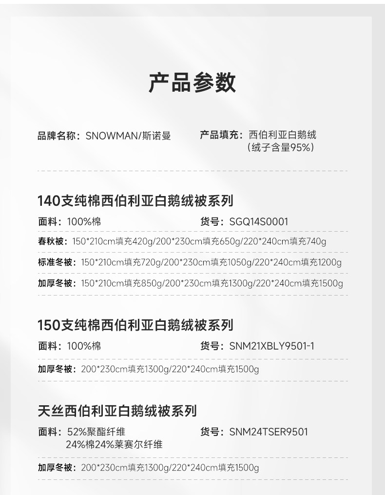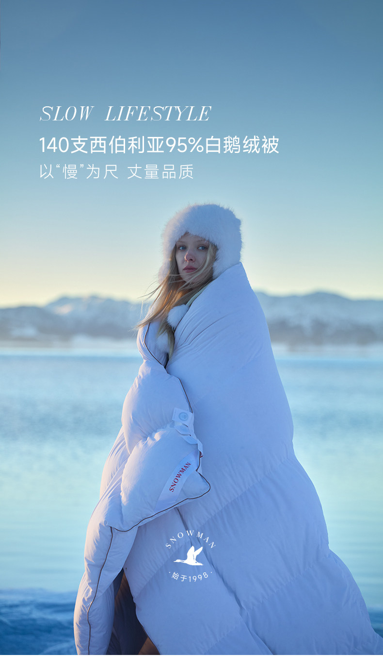 Snowman/斯諾曼西伯利亞95白鵞絨冬被羽絨被子保暖140支全棉被芯