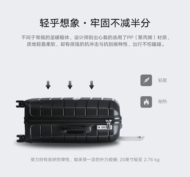 新.秀.麗輕便PP男女旅行箱磨砂行李箱靜音飛機輪可登機海關鎖拉桿