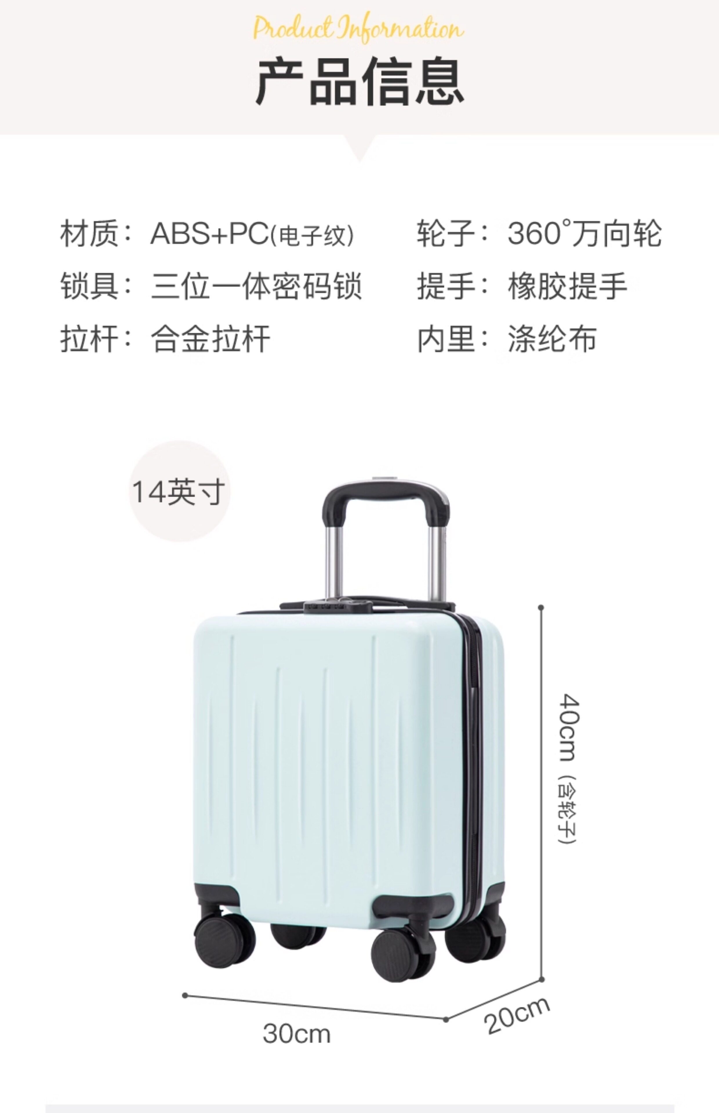 2026新款14寸行李箱女小型輕便春秋航空登機箱迷你兒童拉桿旅行箱