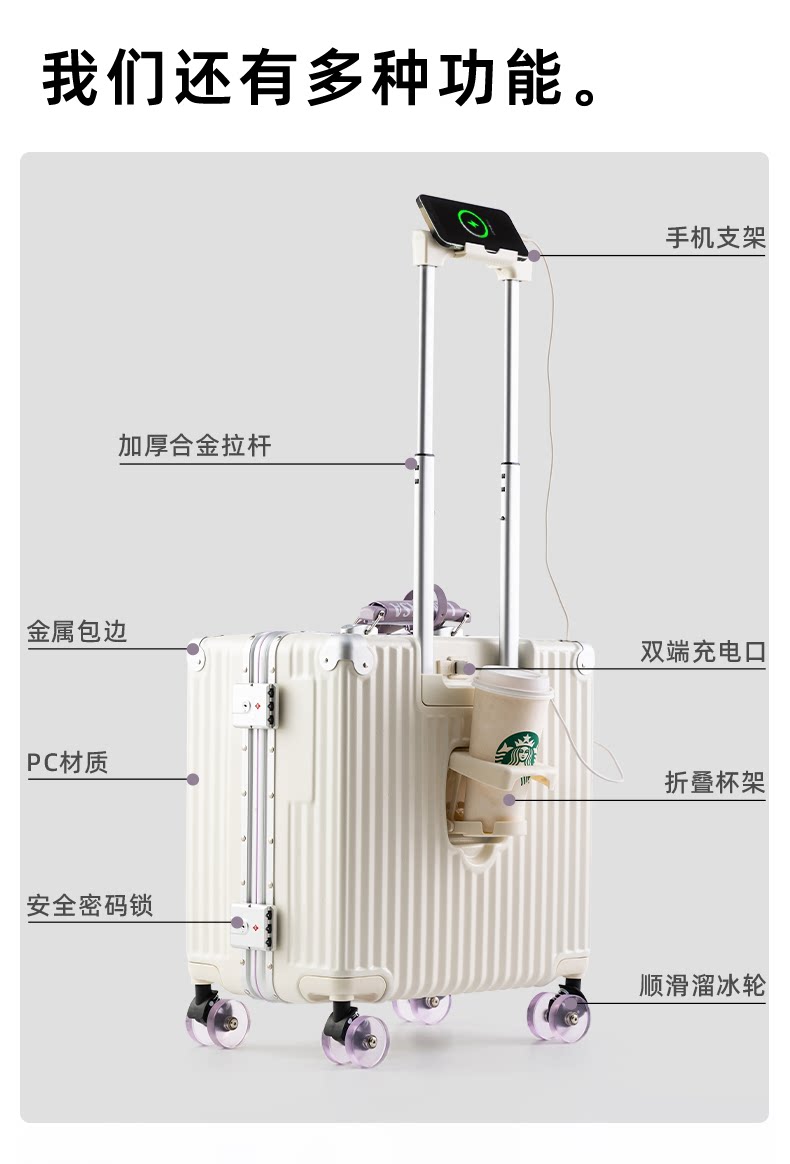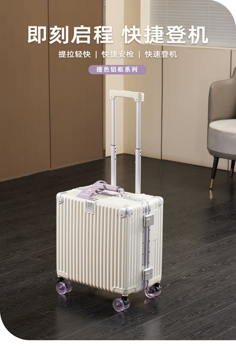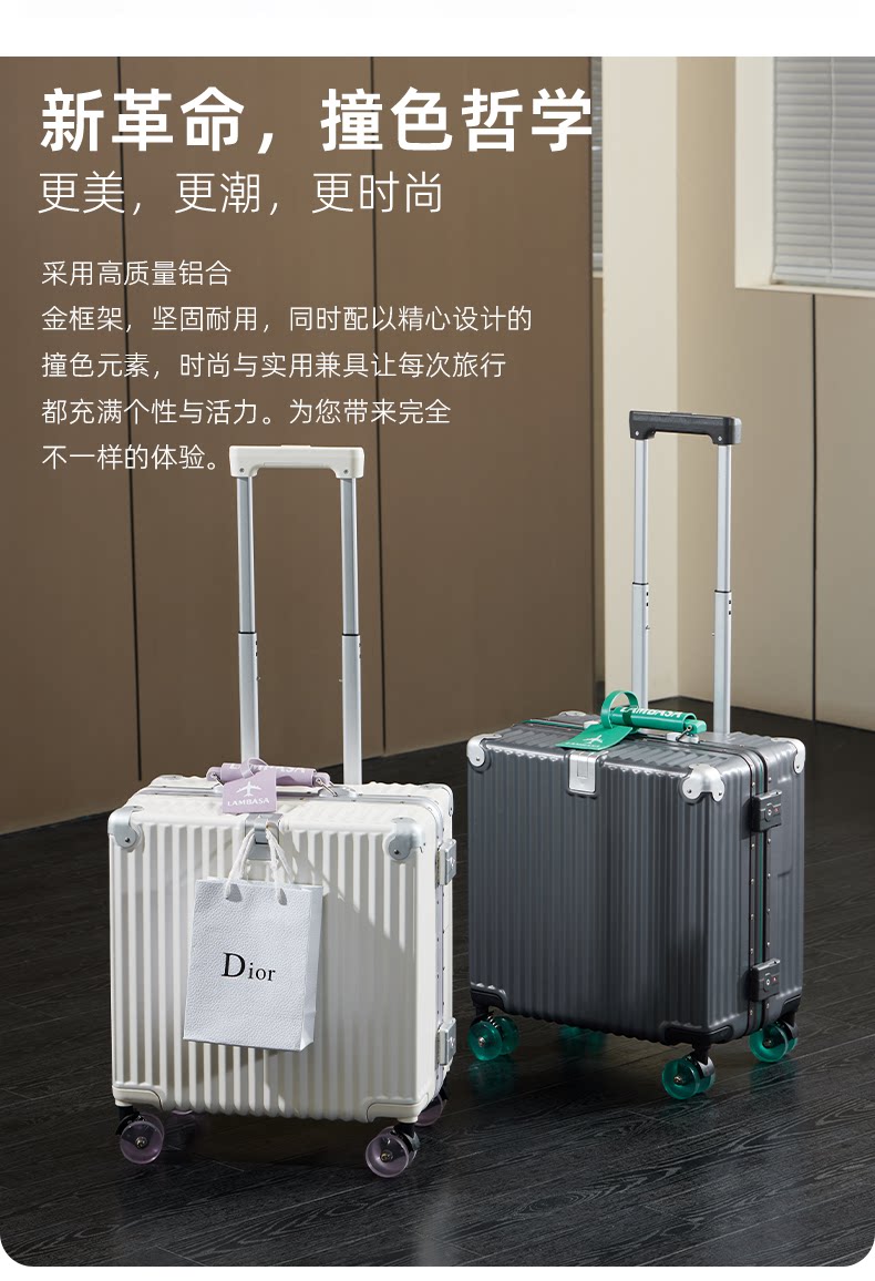 2026新款行李箱18寸可登機小型登機箱免托運鋁框旅行箱密碼箱男女