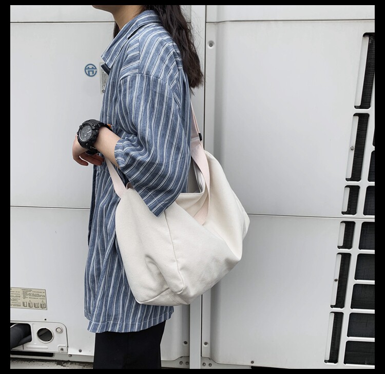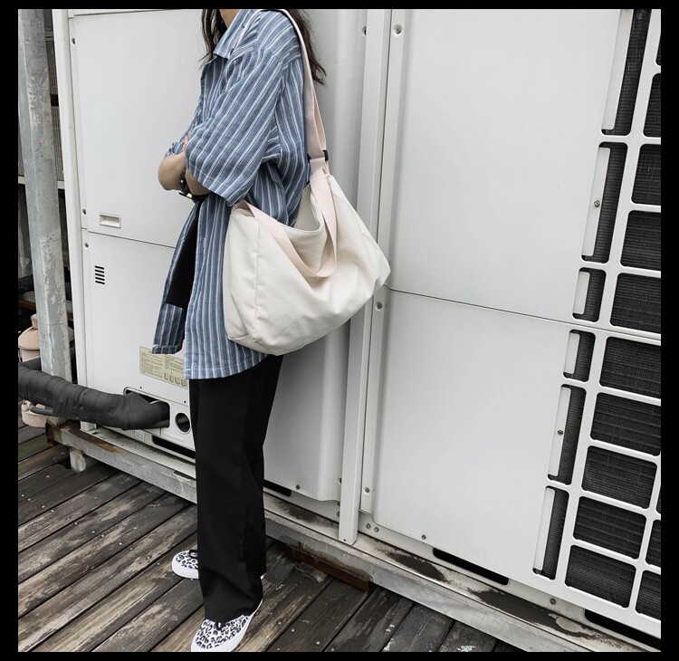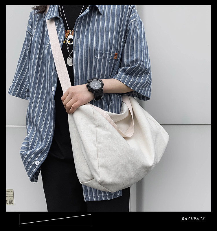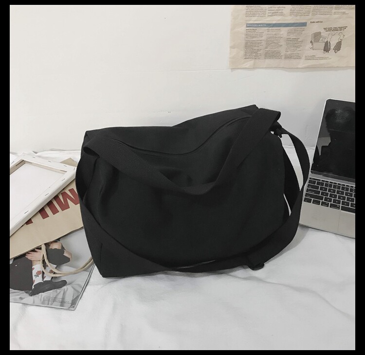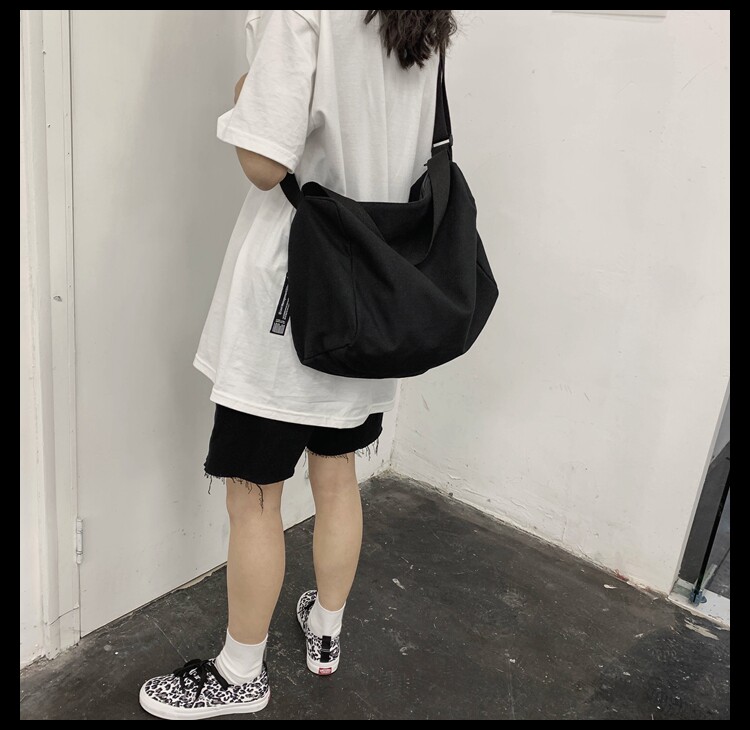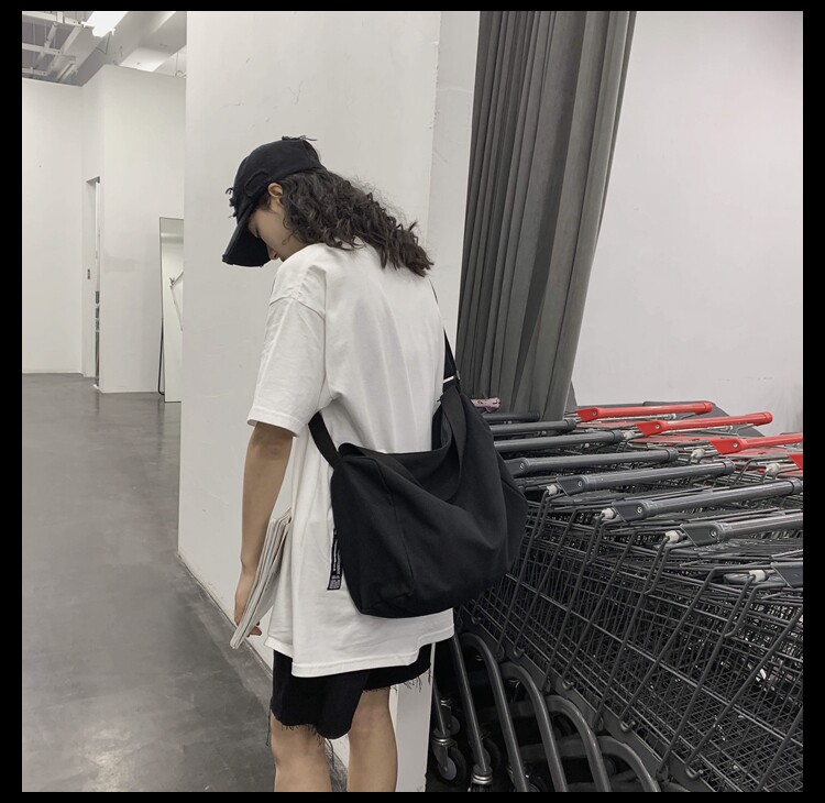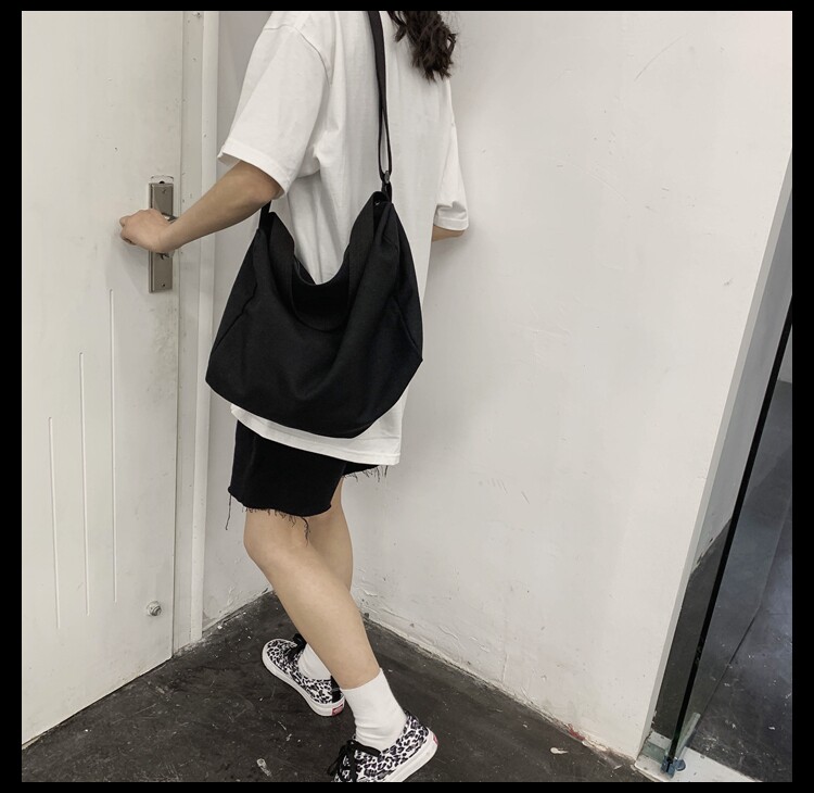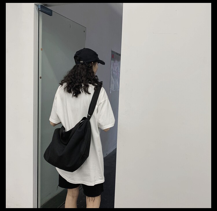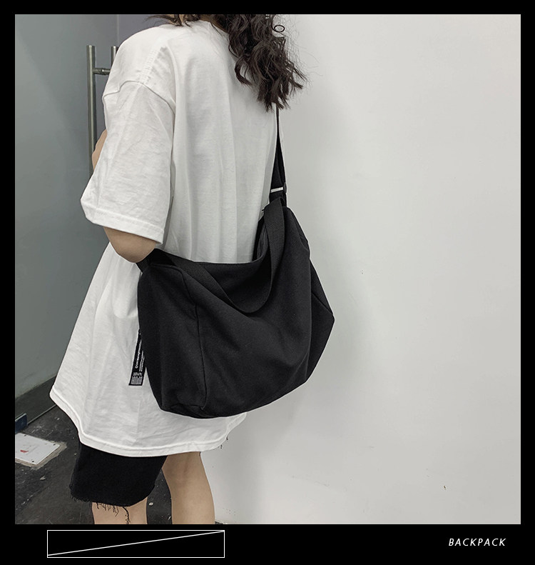 帆布大容量單肩包男女學生上課包休閒日系後後背包ins潮流手提斜後後背包
