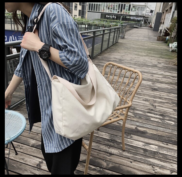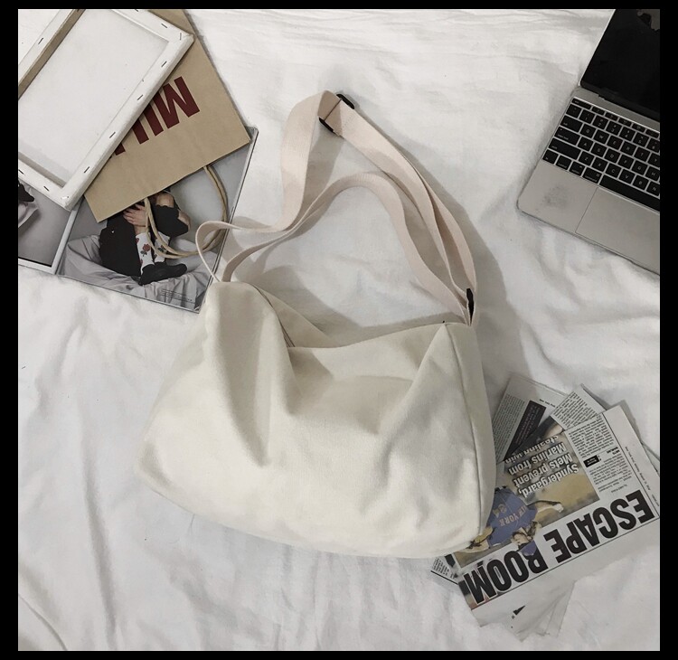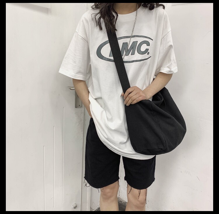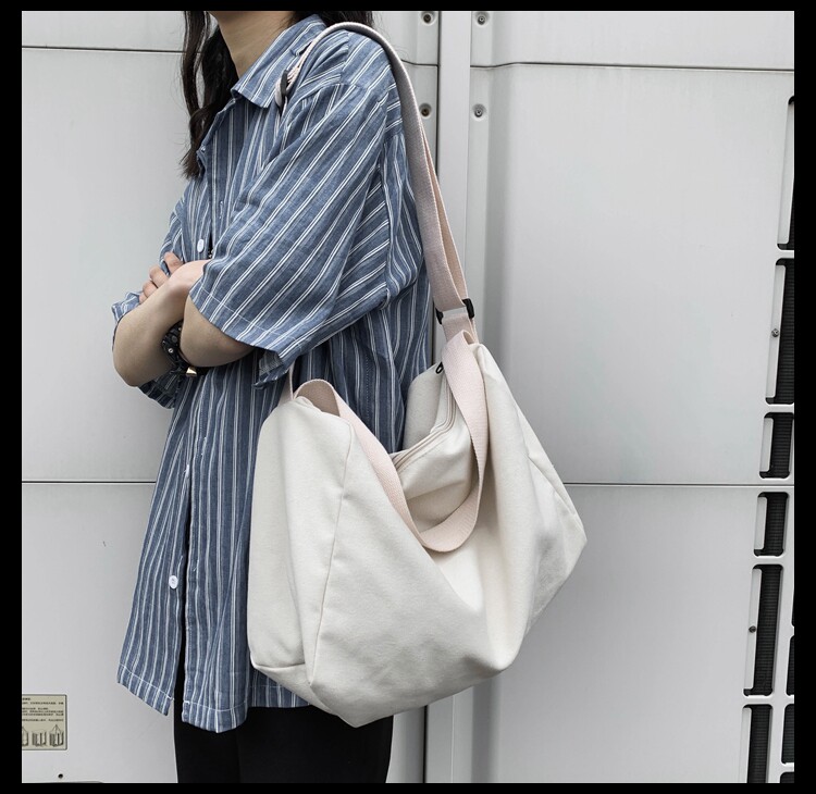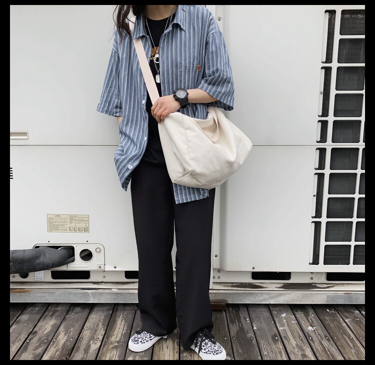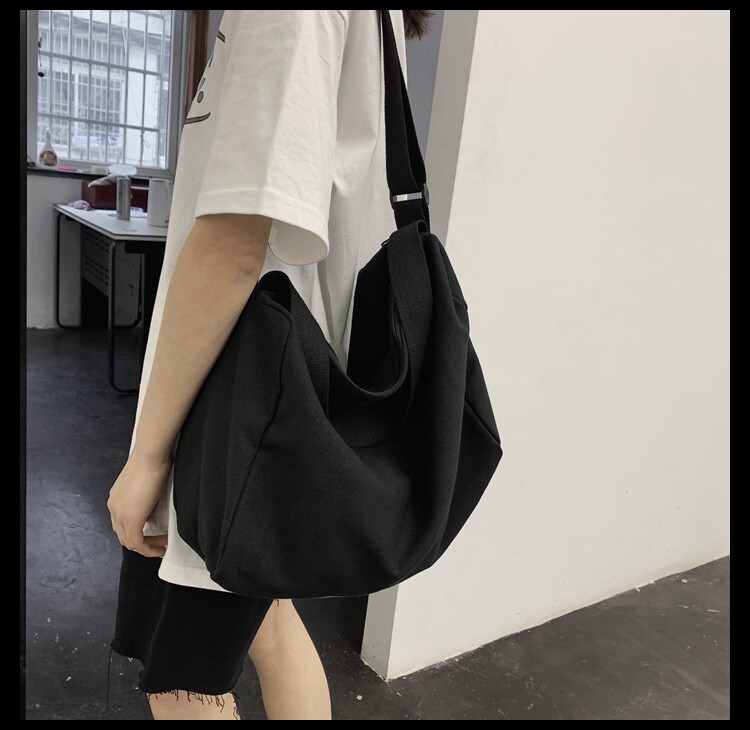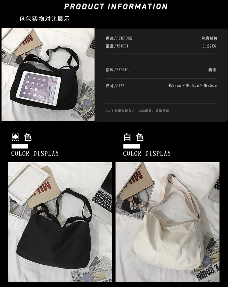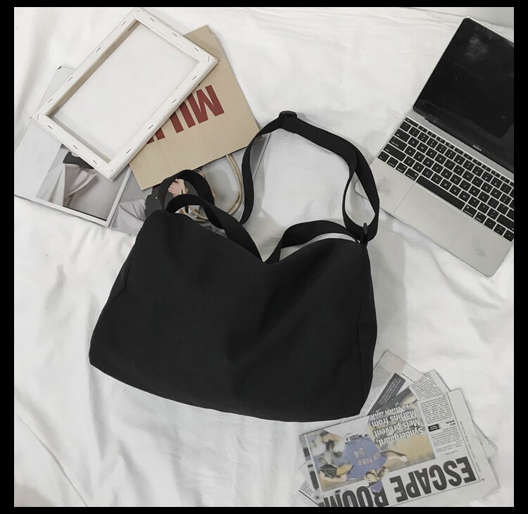 帆布大容量單肩包男女學生上課包休閒日系後後背包ins潮流手提斜後後背包