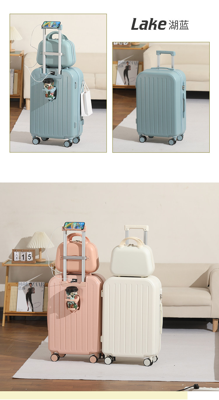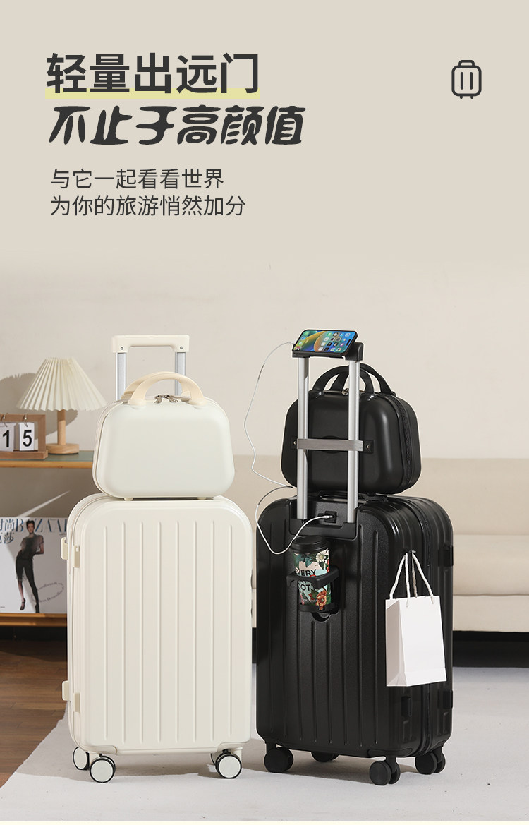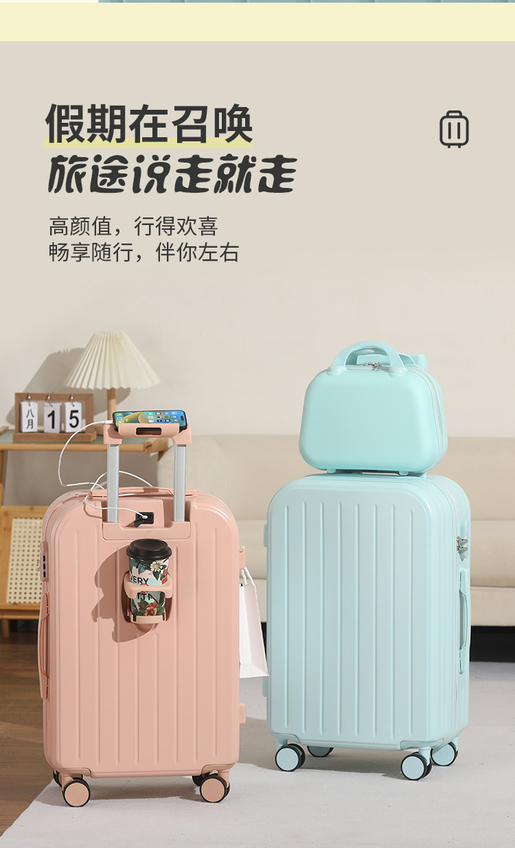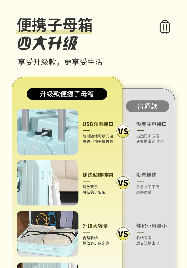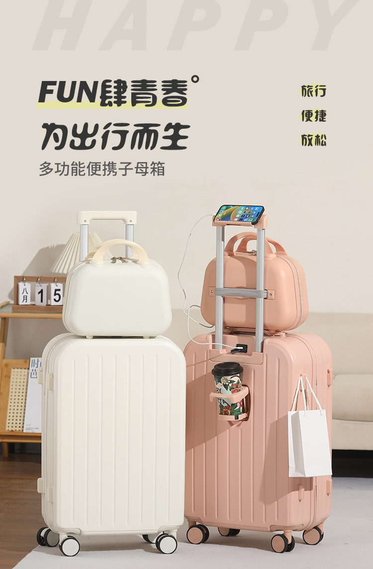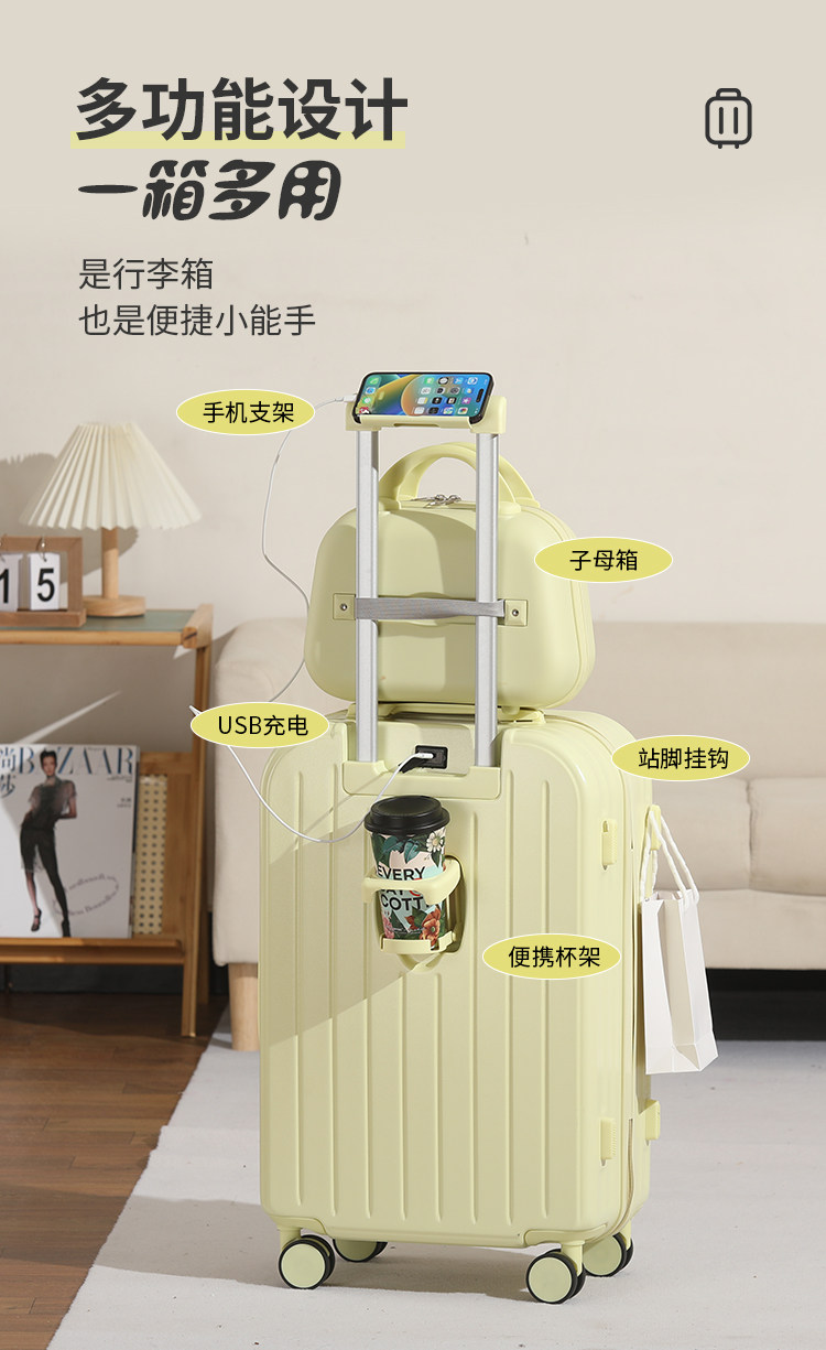 新款多功能時尚子母行李箱男女學生拉桿箱萬向輪結實耐用密碼箱子