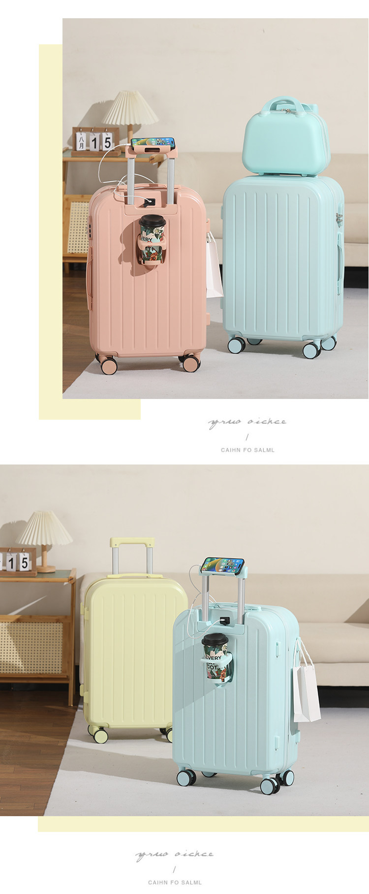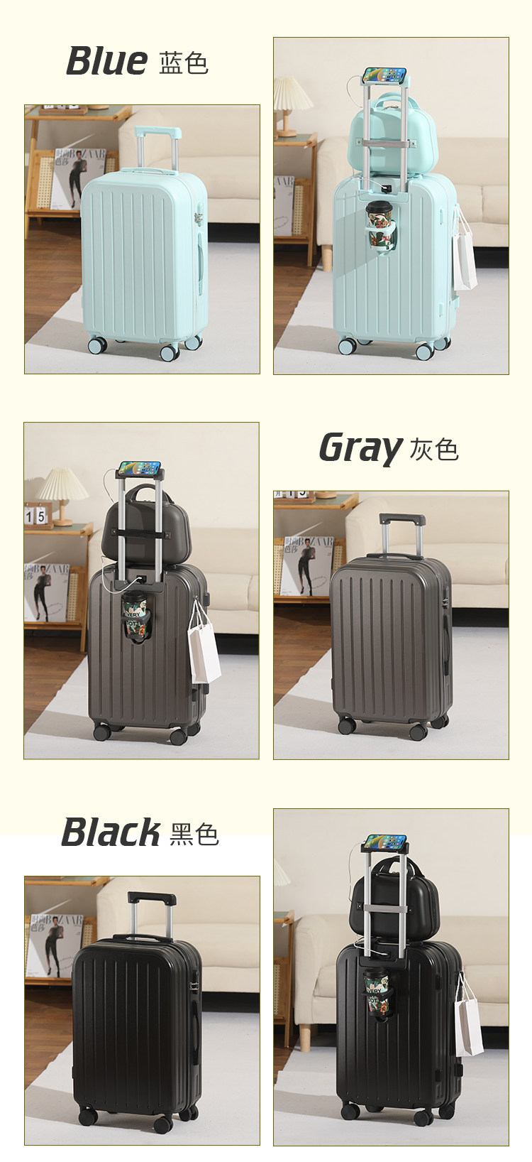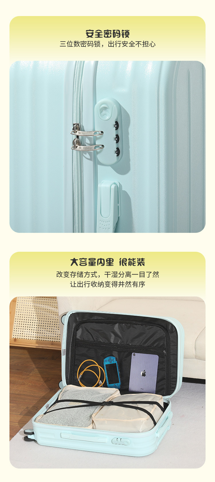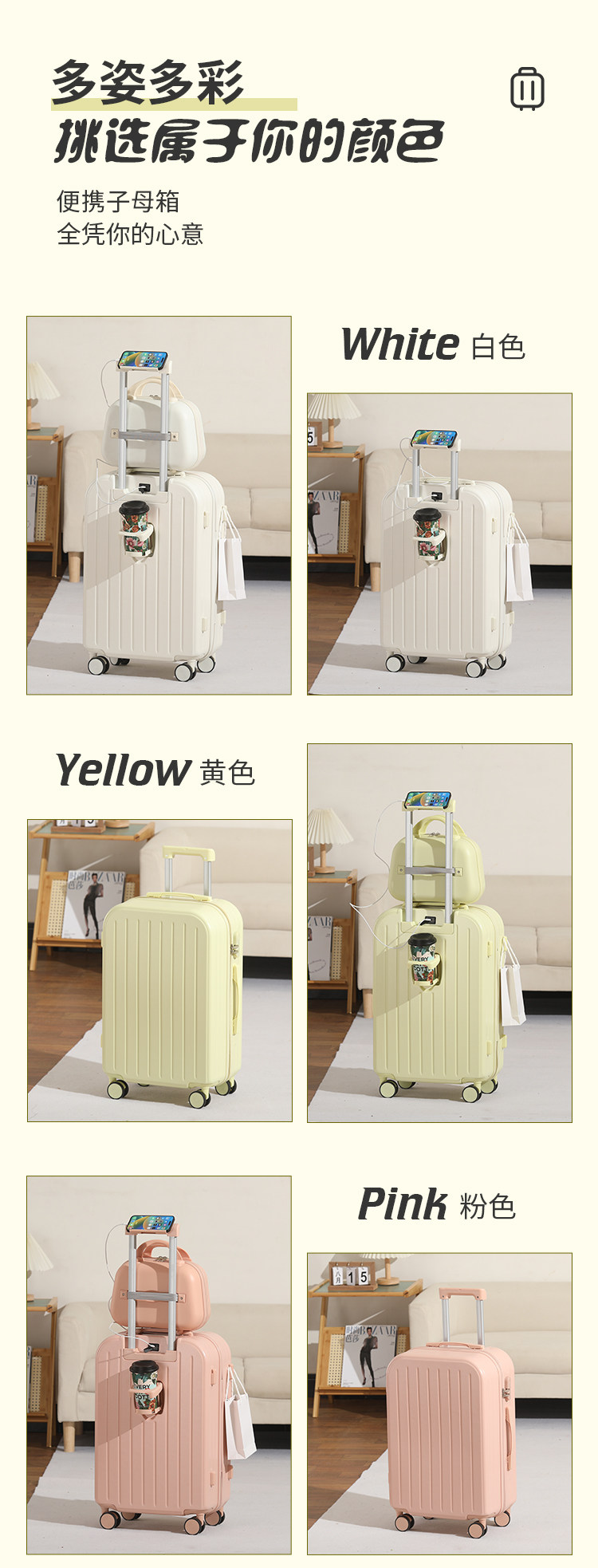 新款多功能時尚子母行李箱男女學生拉桿箱萬向輪結實耐用密碼箱子