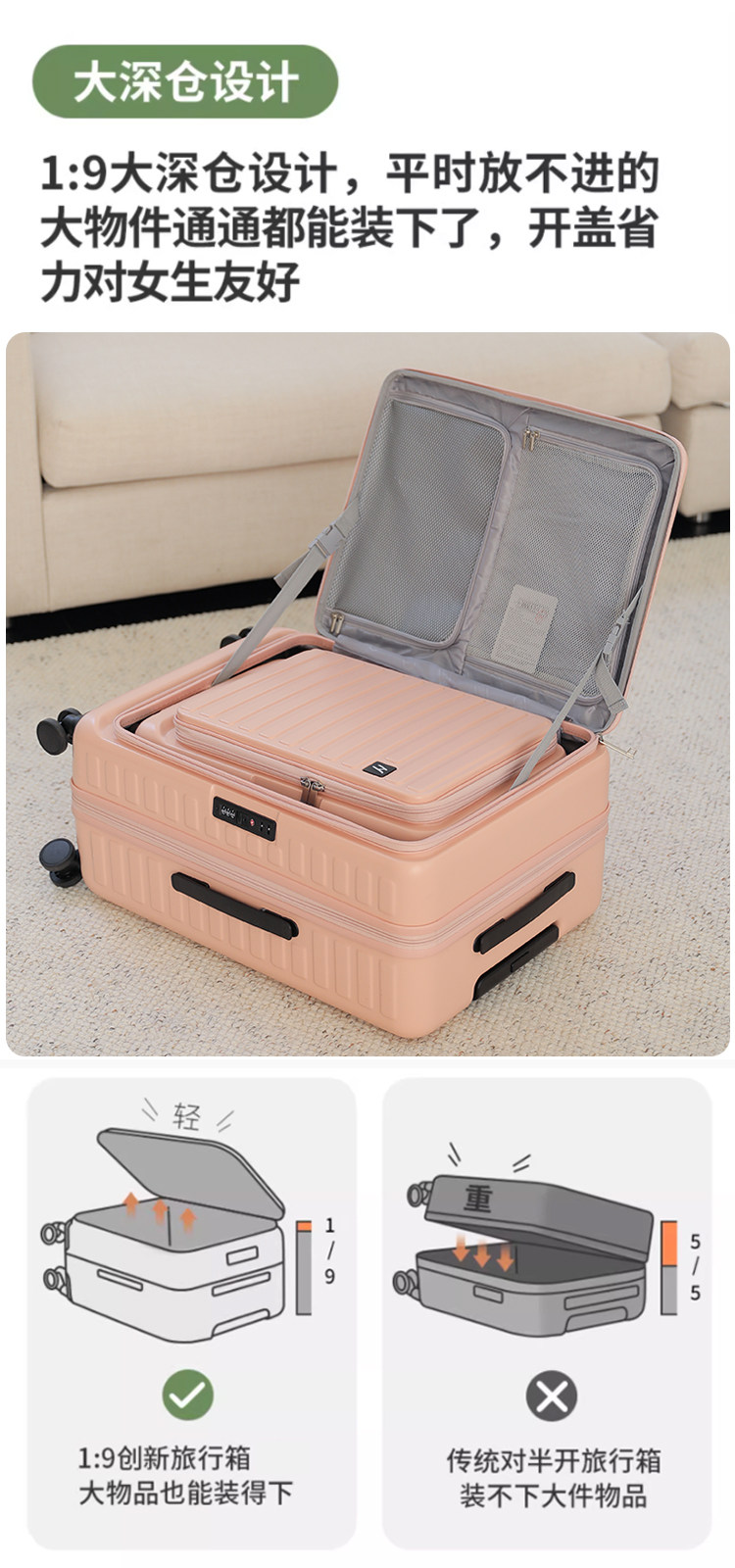 hinomoto靜音輪行李箱大容量可擴容旅行箱女防爆拉鍊側開蓋拉桿箱