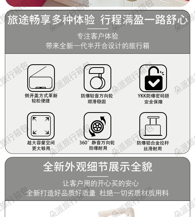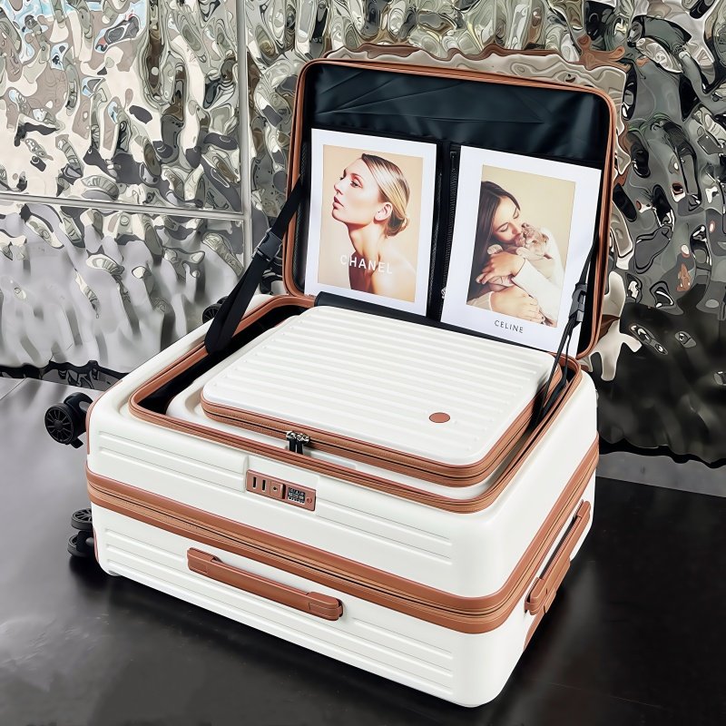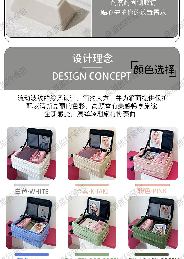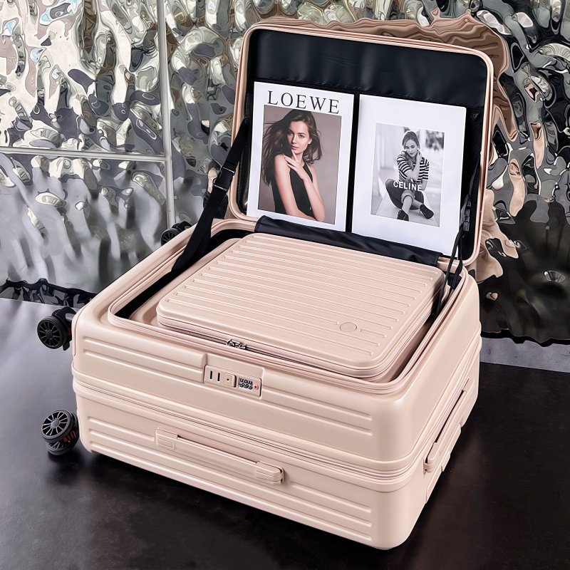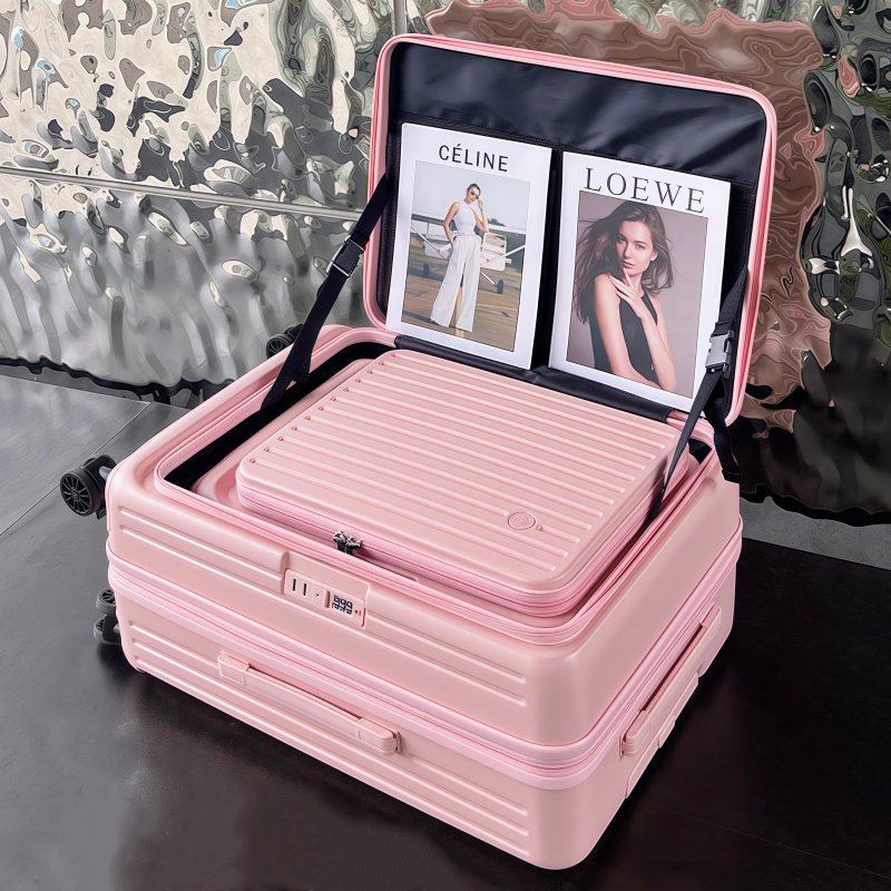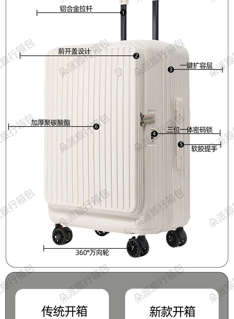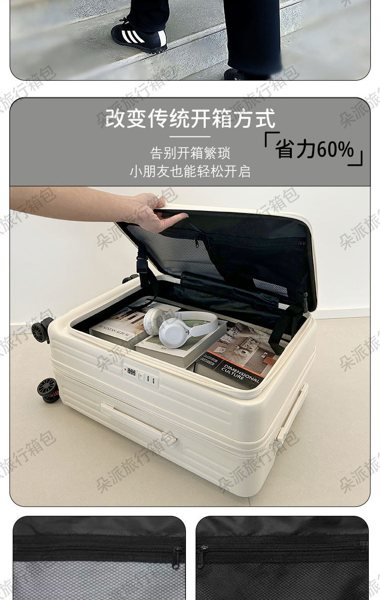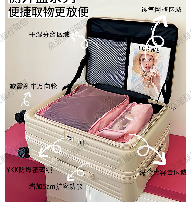 側開口行李箱超大容量靜音可擴展20寸登機箱繙蓋拉桿箱女PC旅行箱