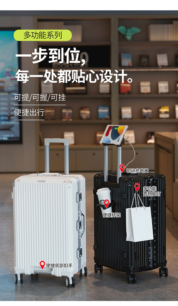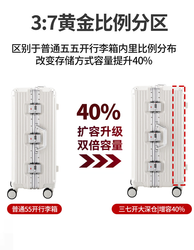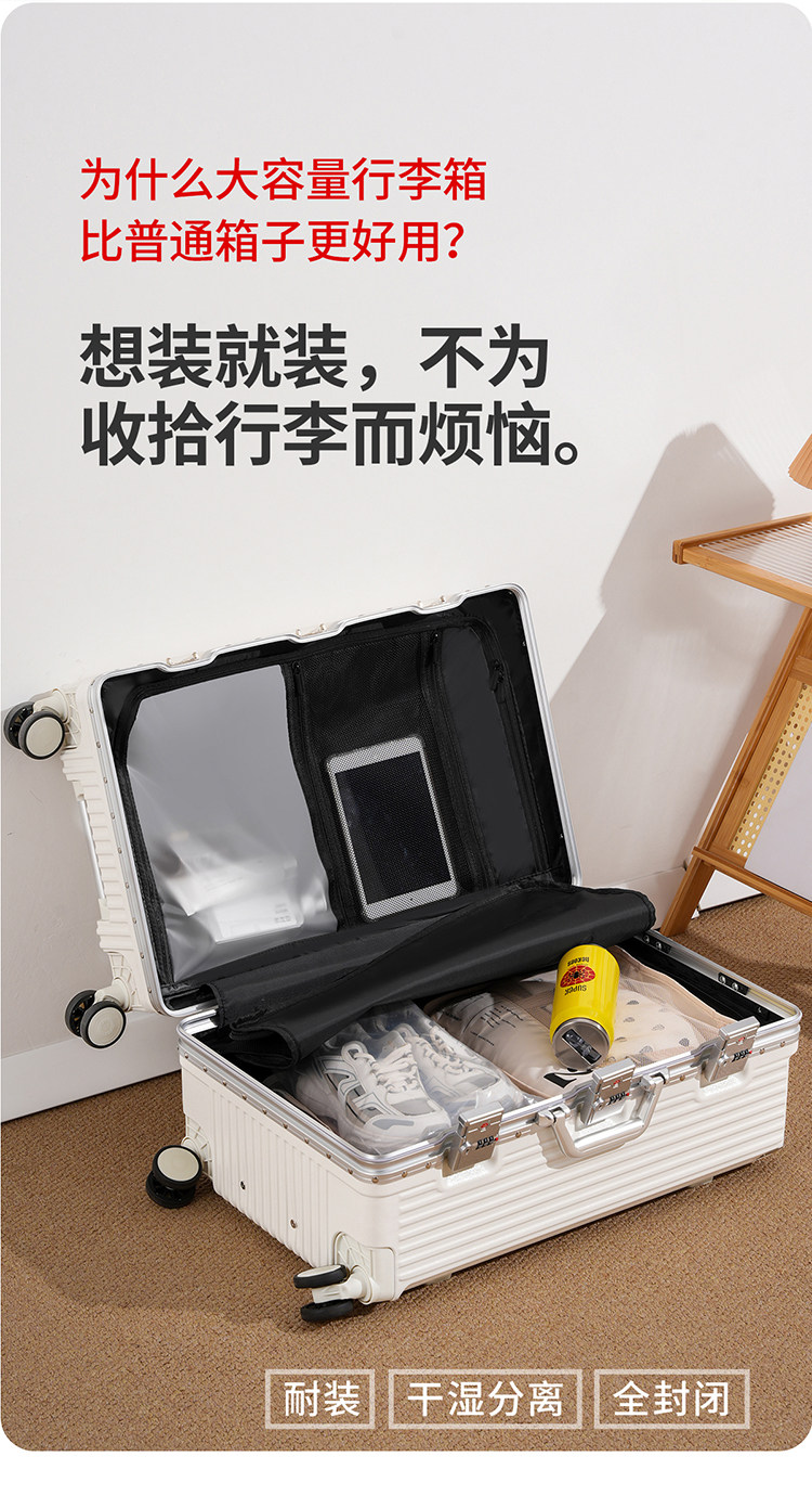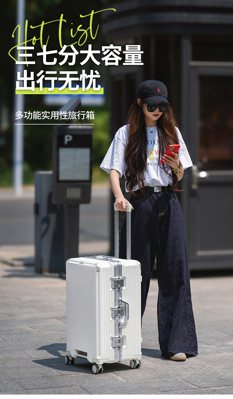 行李箱超大容量旅行箱三七分多功能鋁框男拉桿箱皮箱登機男