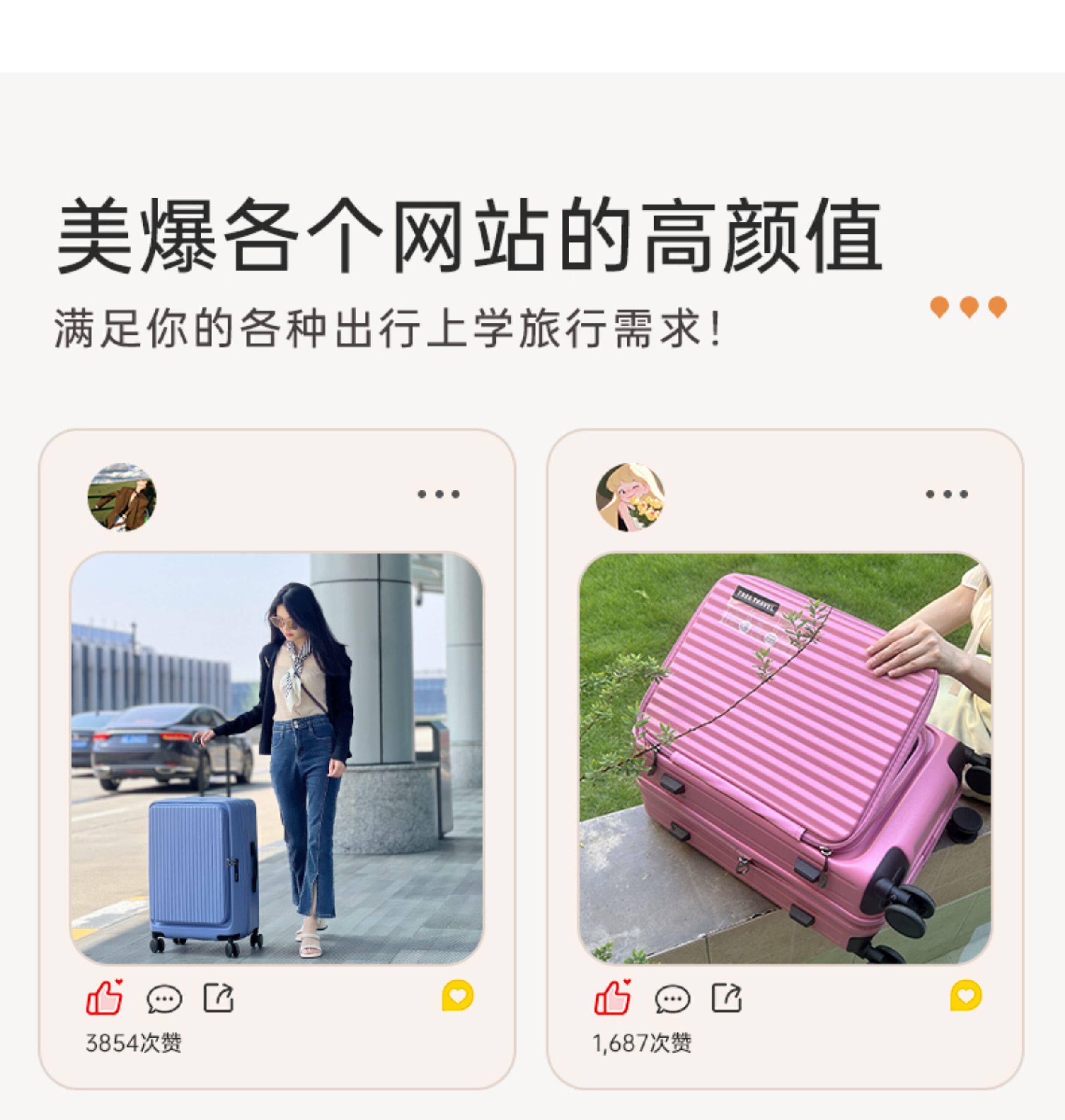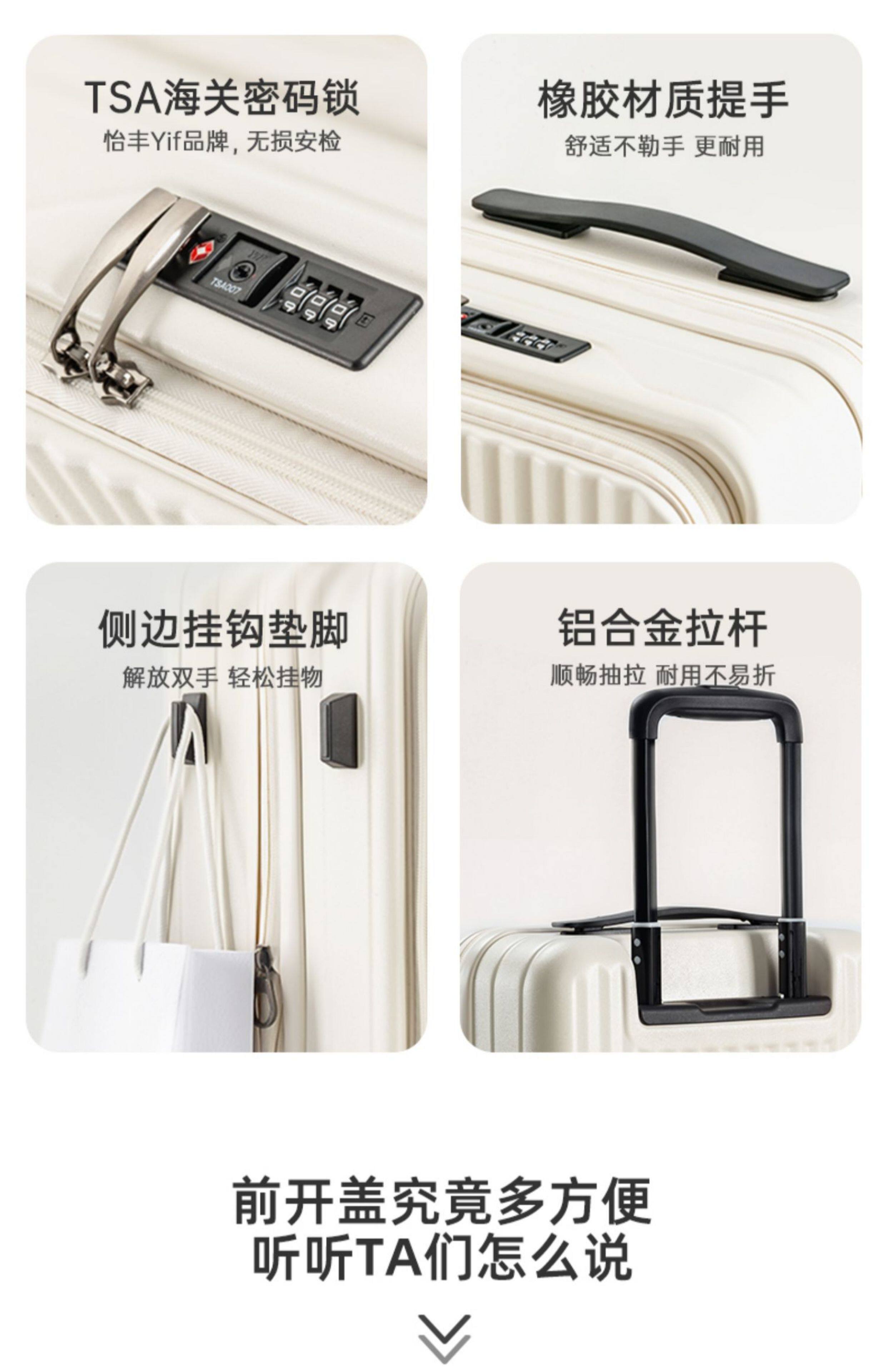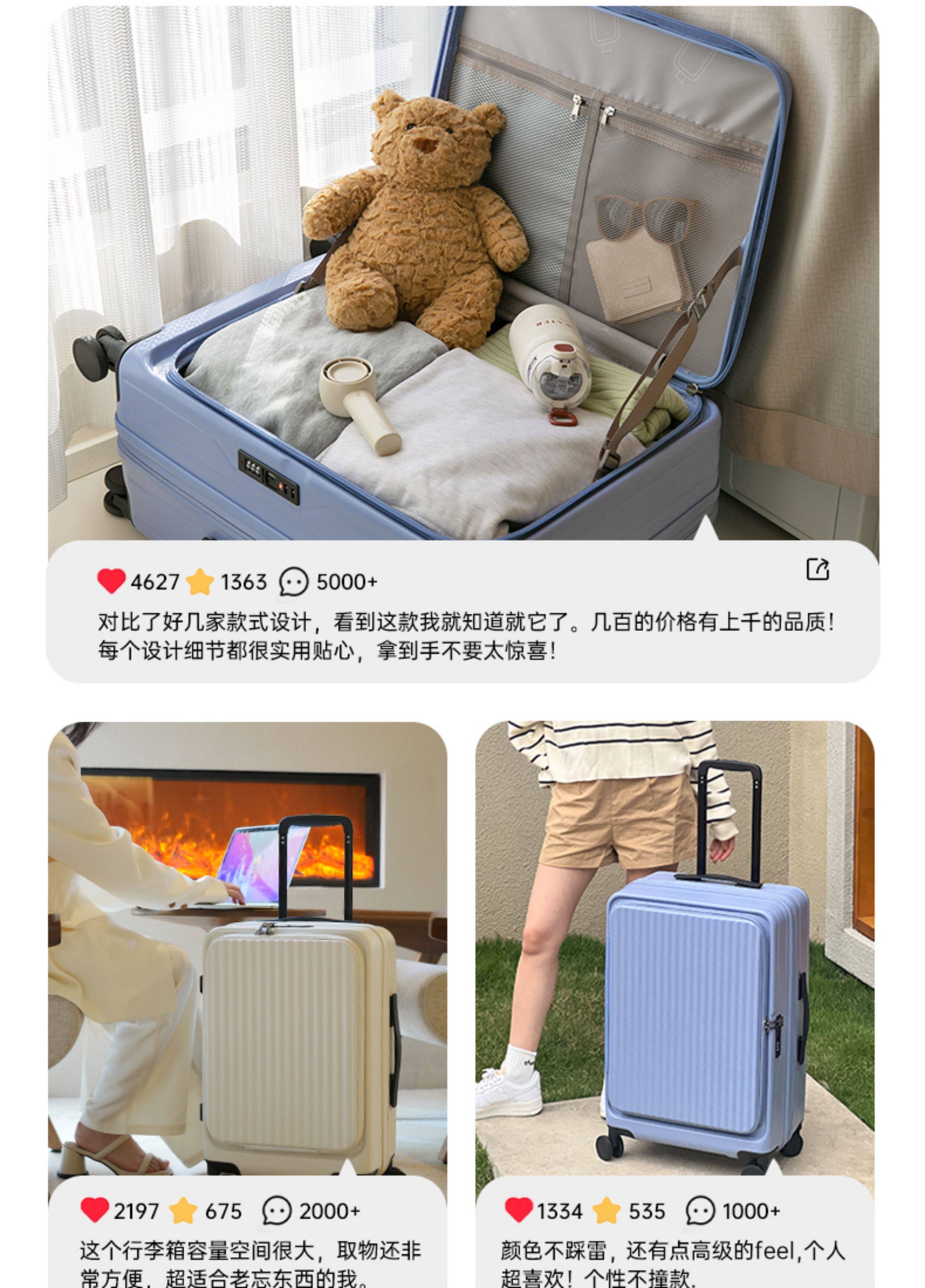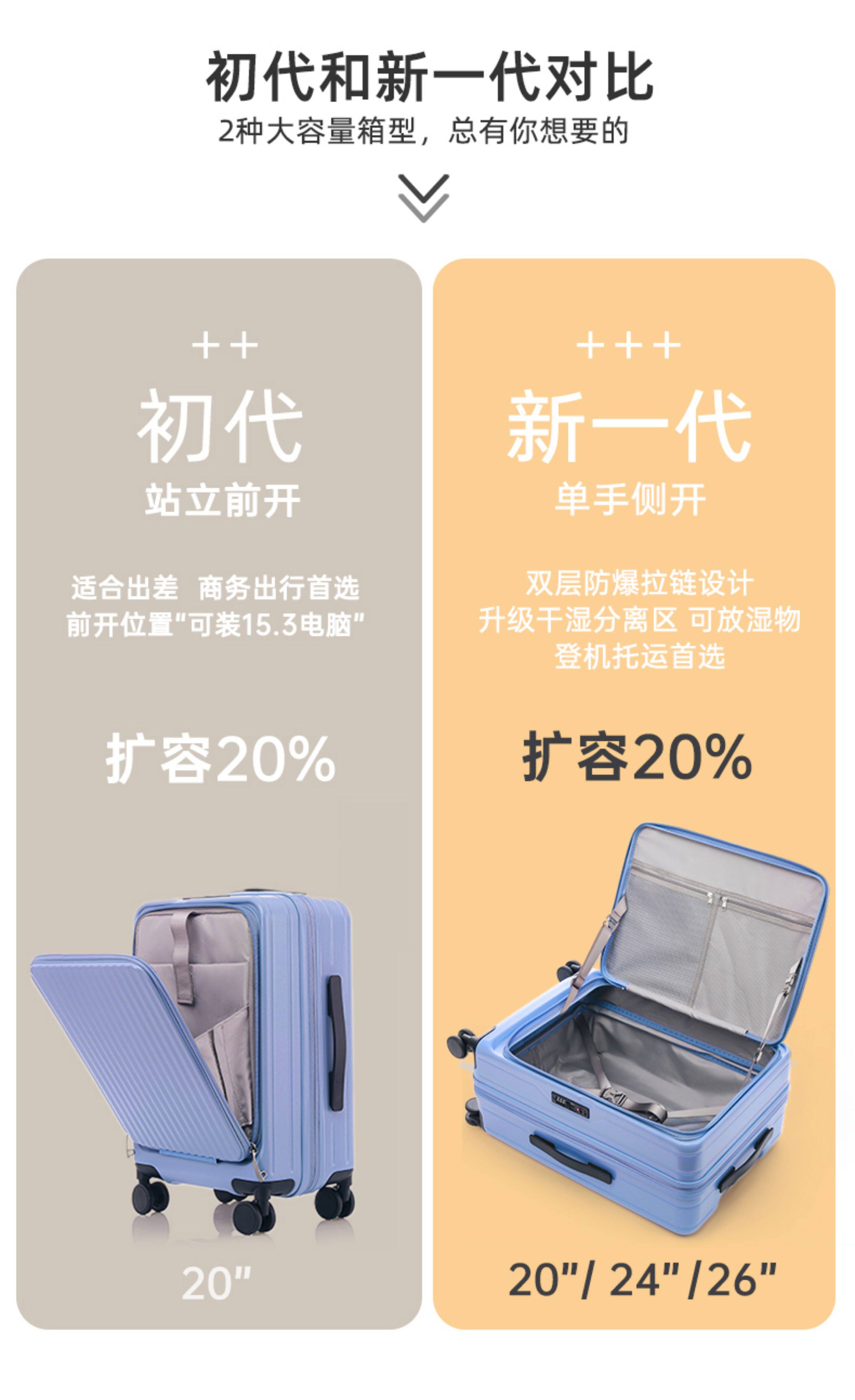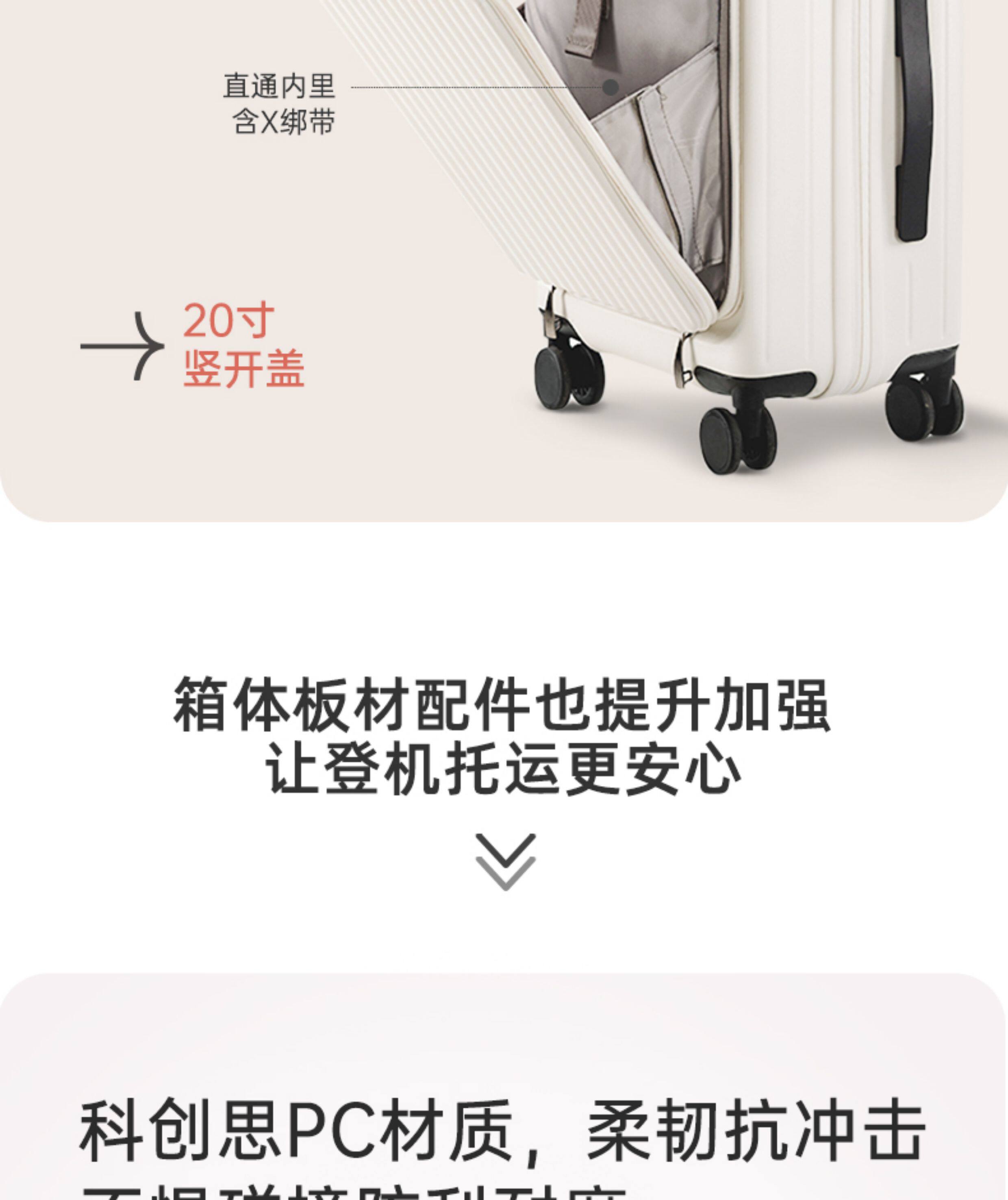 前開蓋旅行箱學生行李箱PC拉桿箱20寸登機箱耐用24可擴展大容量28