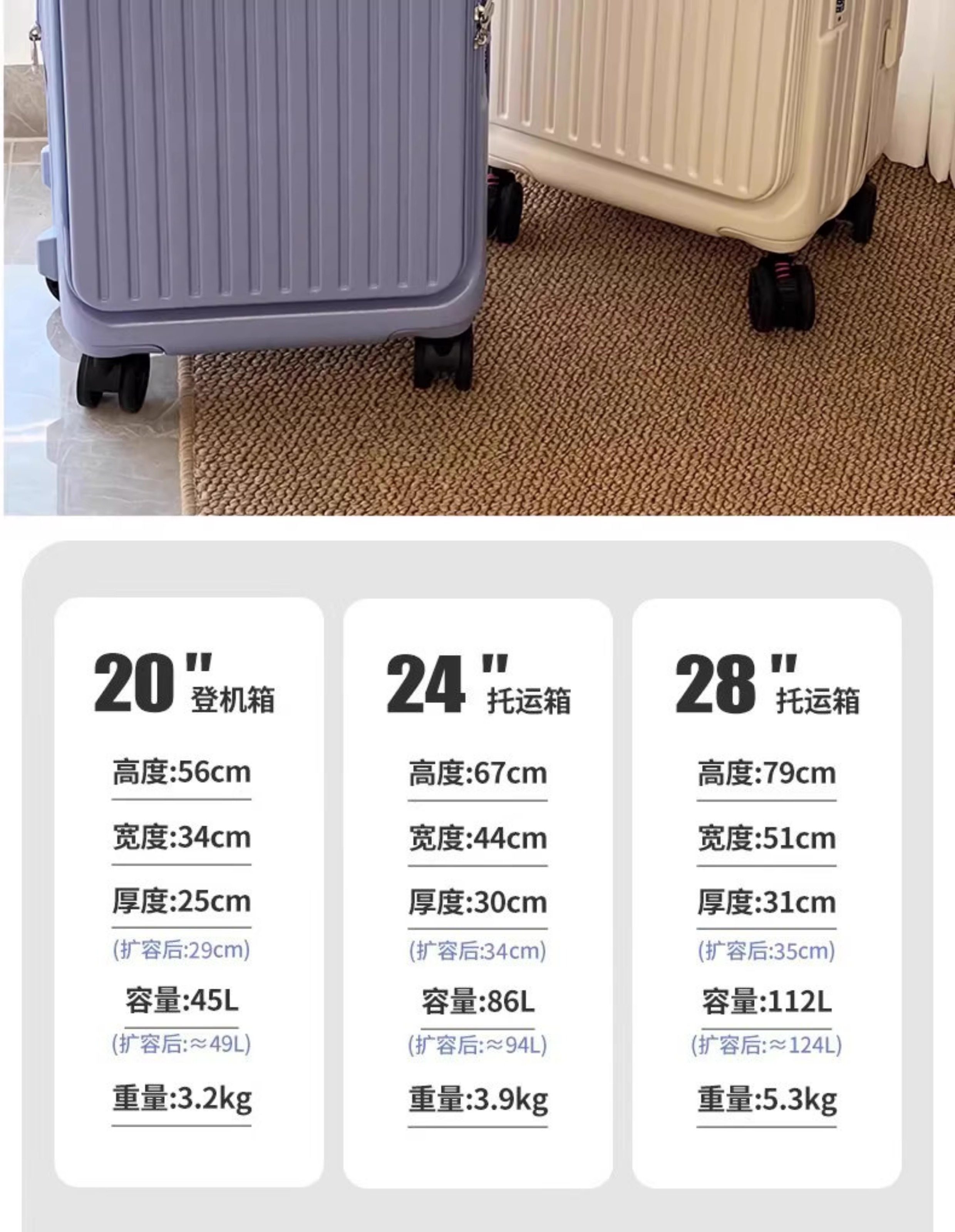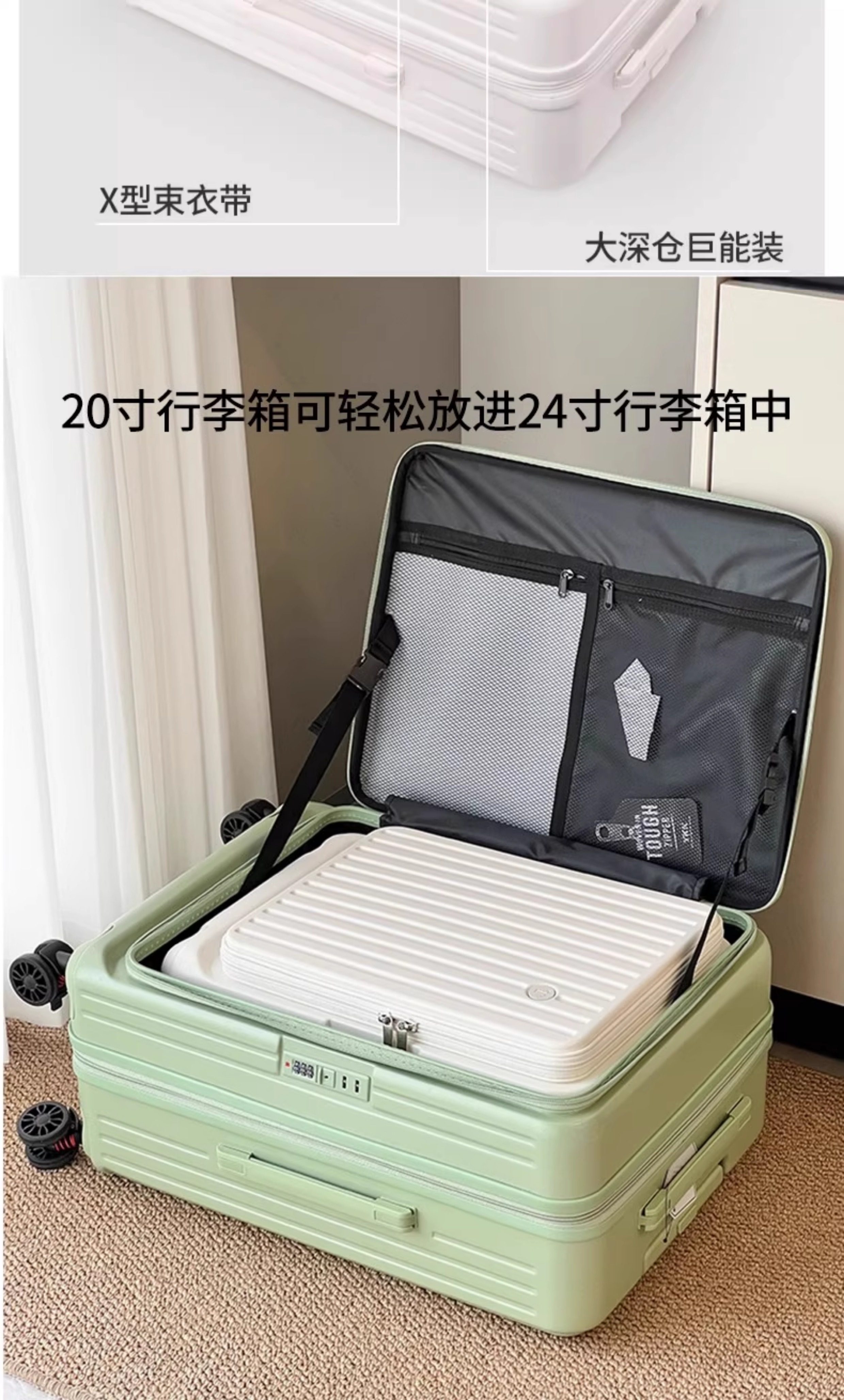 LETOO前開蓋帶擴展層行李箱可登機旅行箱大學生男女拉桿箱大容量
