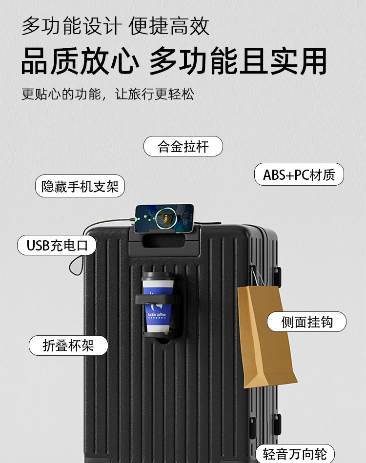 2026新款行李箱20寸可登機小型24寸前開口大容量密碼拉桿旅行箱子