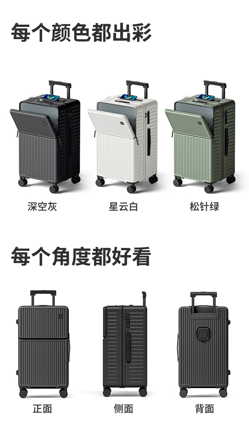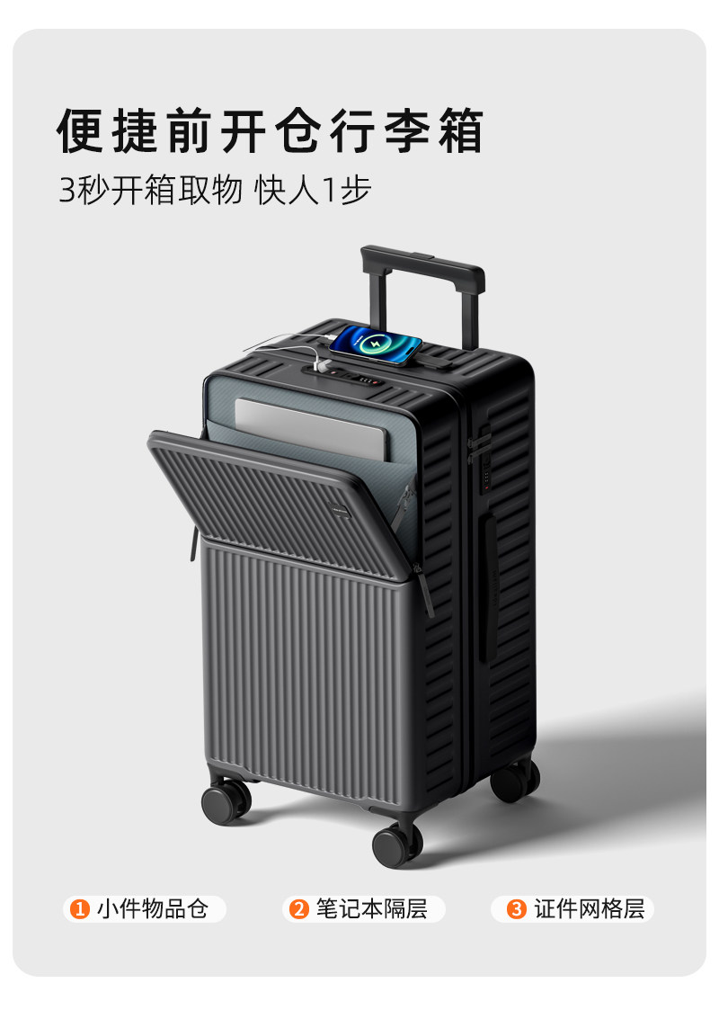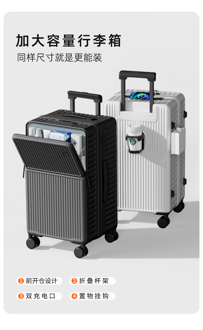 新款行李箱女登機箱20寸多功能前開口拉桿箱大容量旅行箱男密碼箱