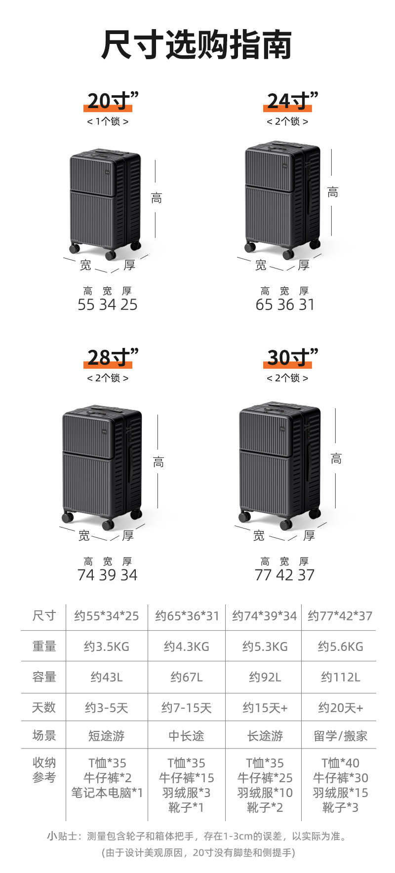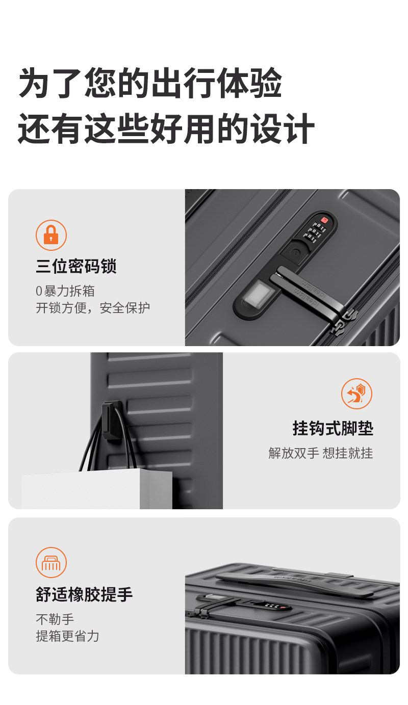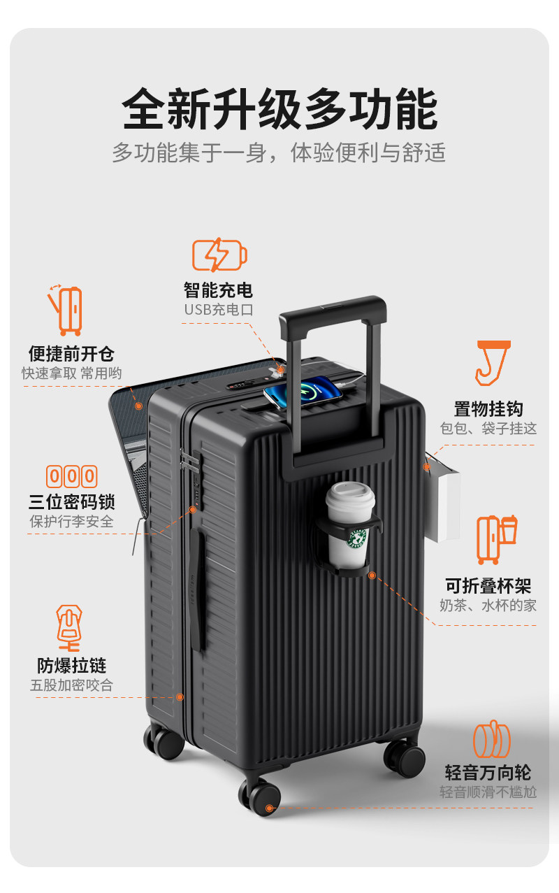 新款行李箱女登機箱20寸多功能前開口拉桿箱大容量旅行箱男密碼箱
