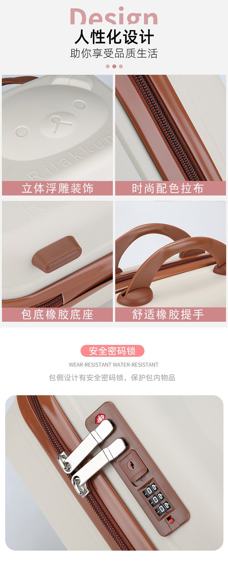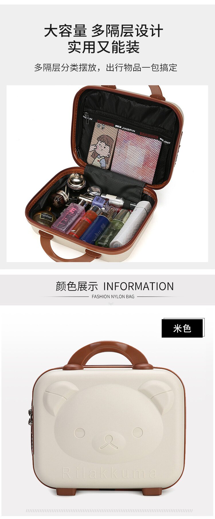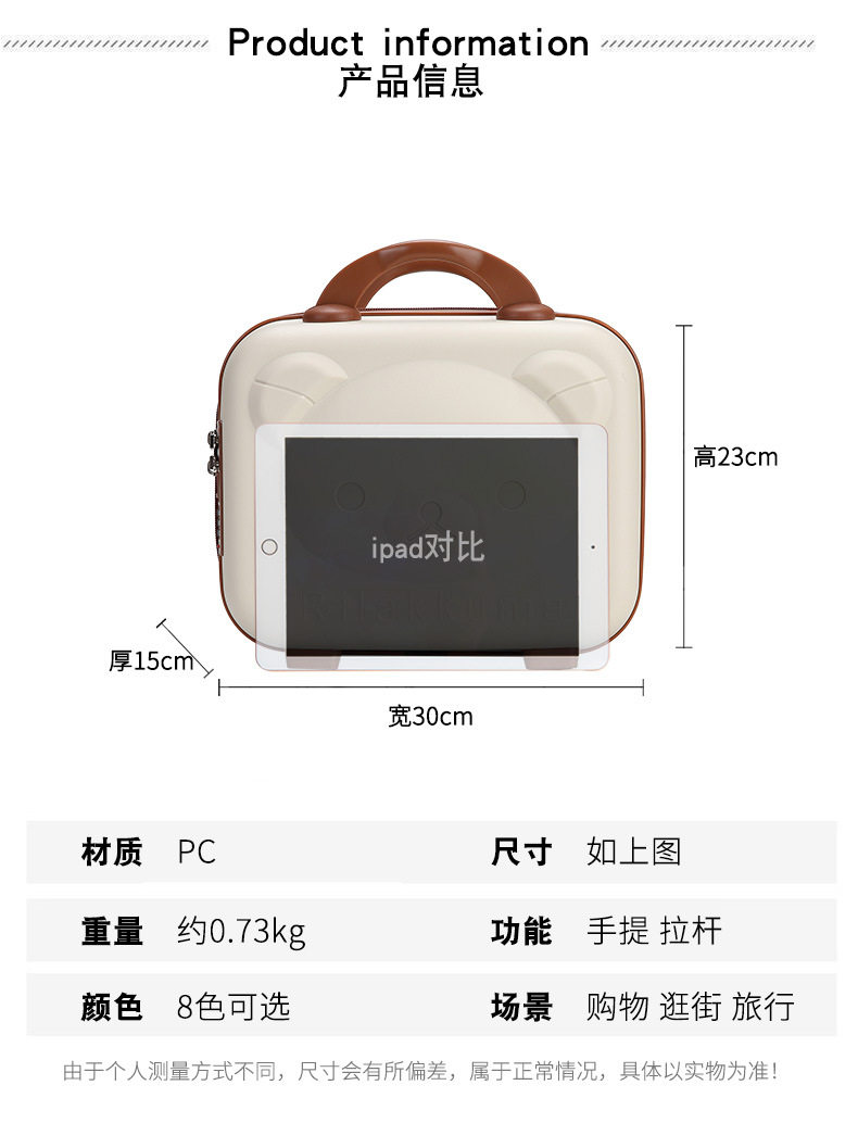 小熊手提箱卡通行李箱女可攜式登機箱伴手禮盒兒童收納化妝箱子14寸