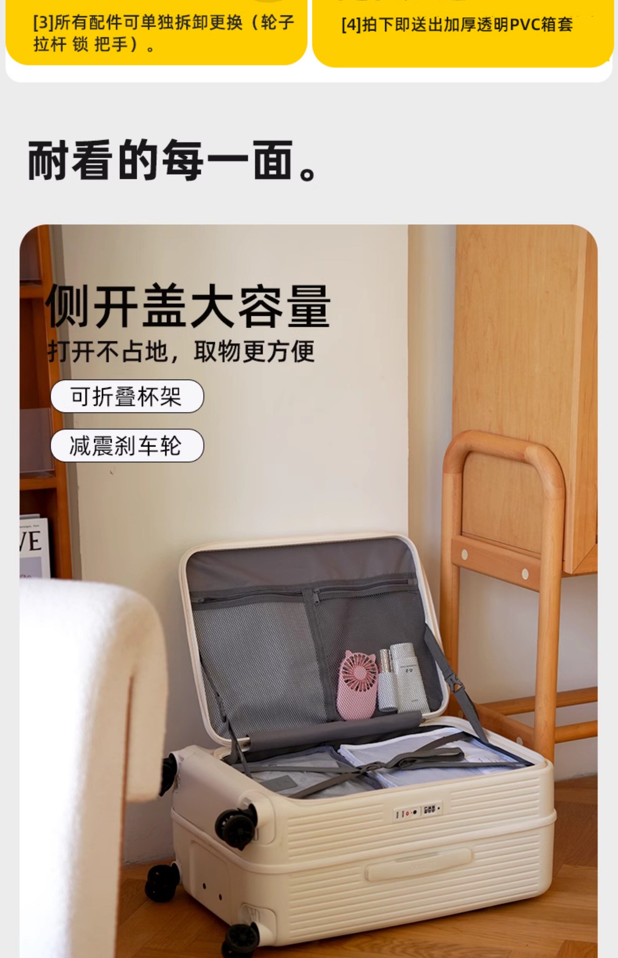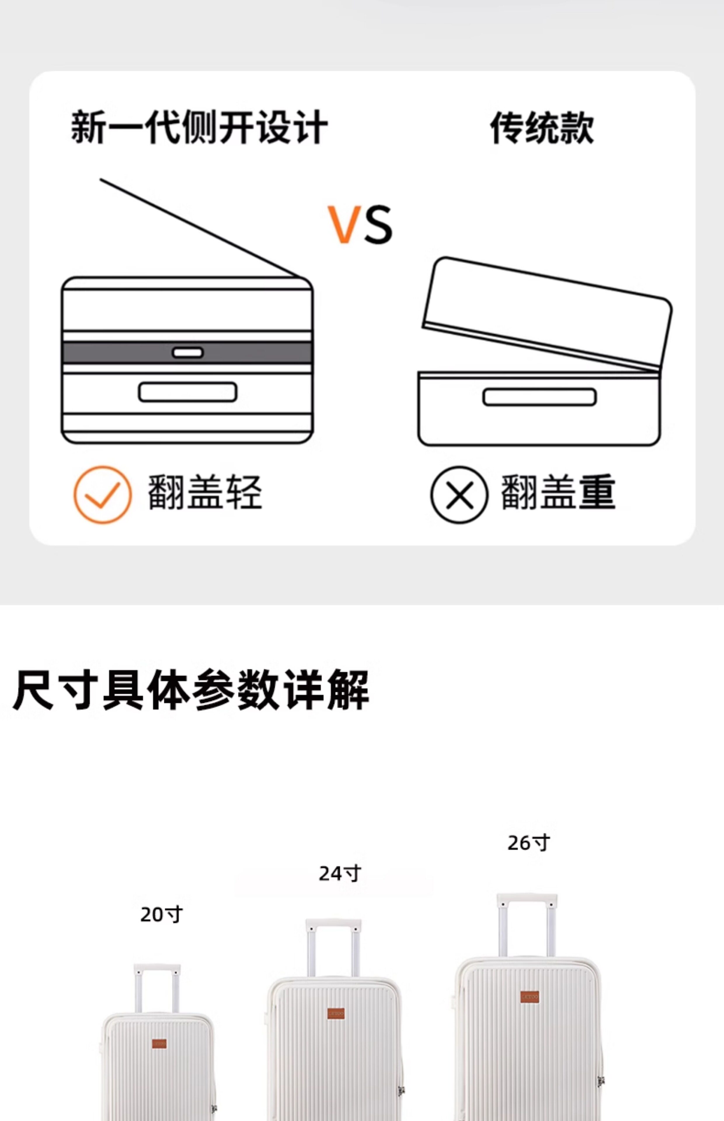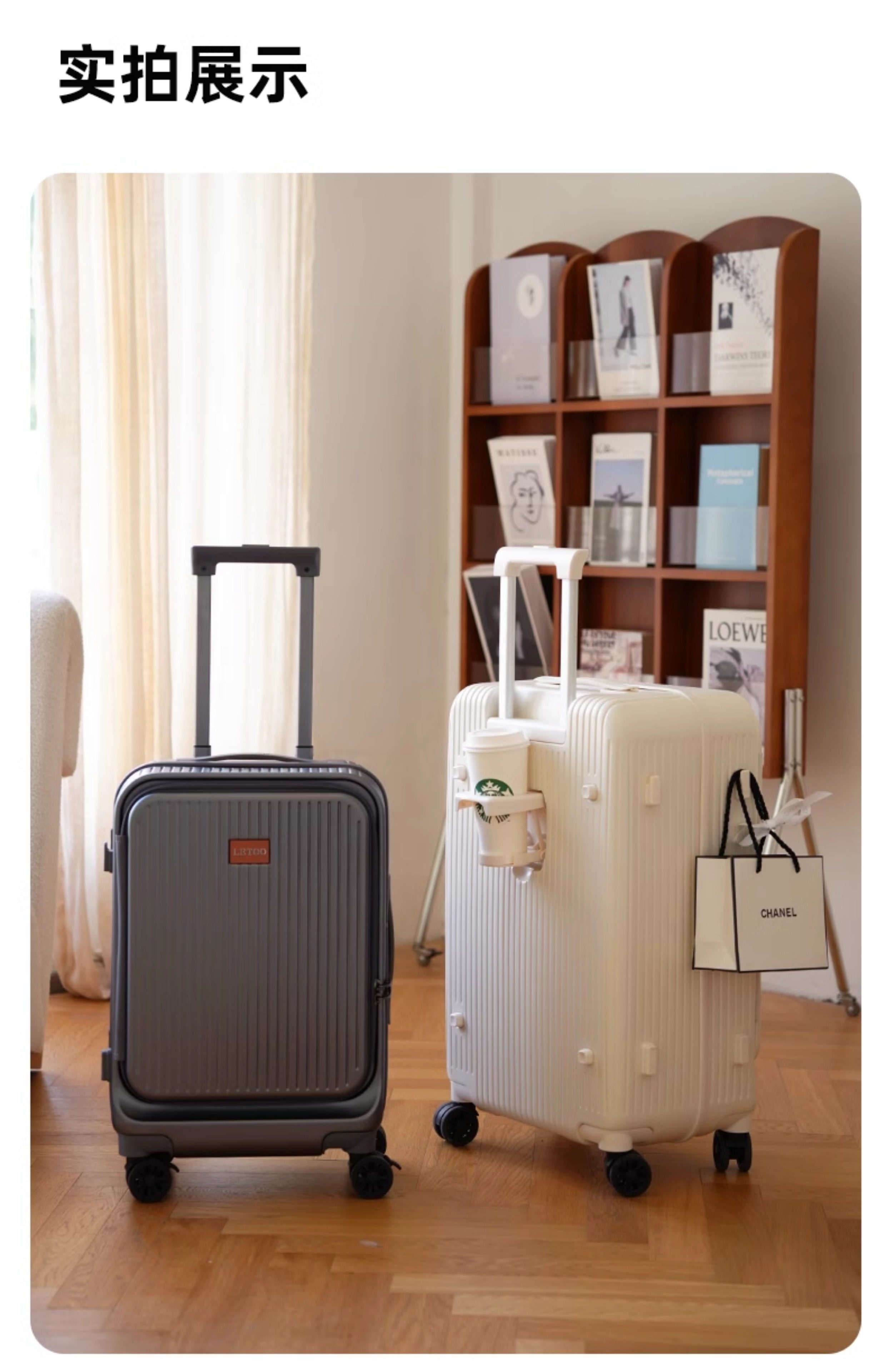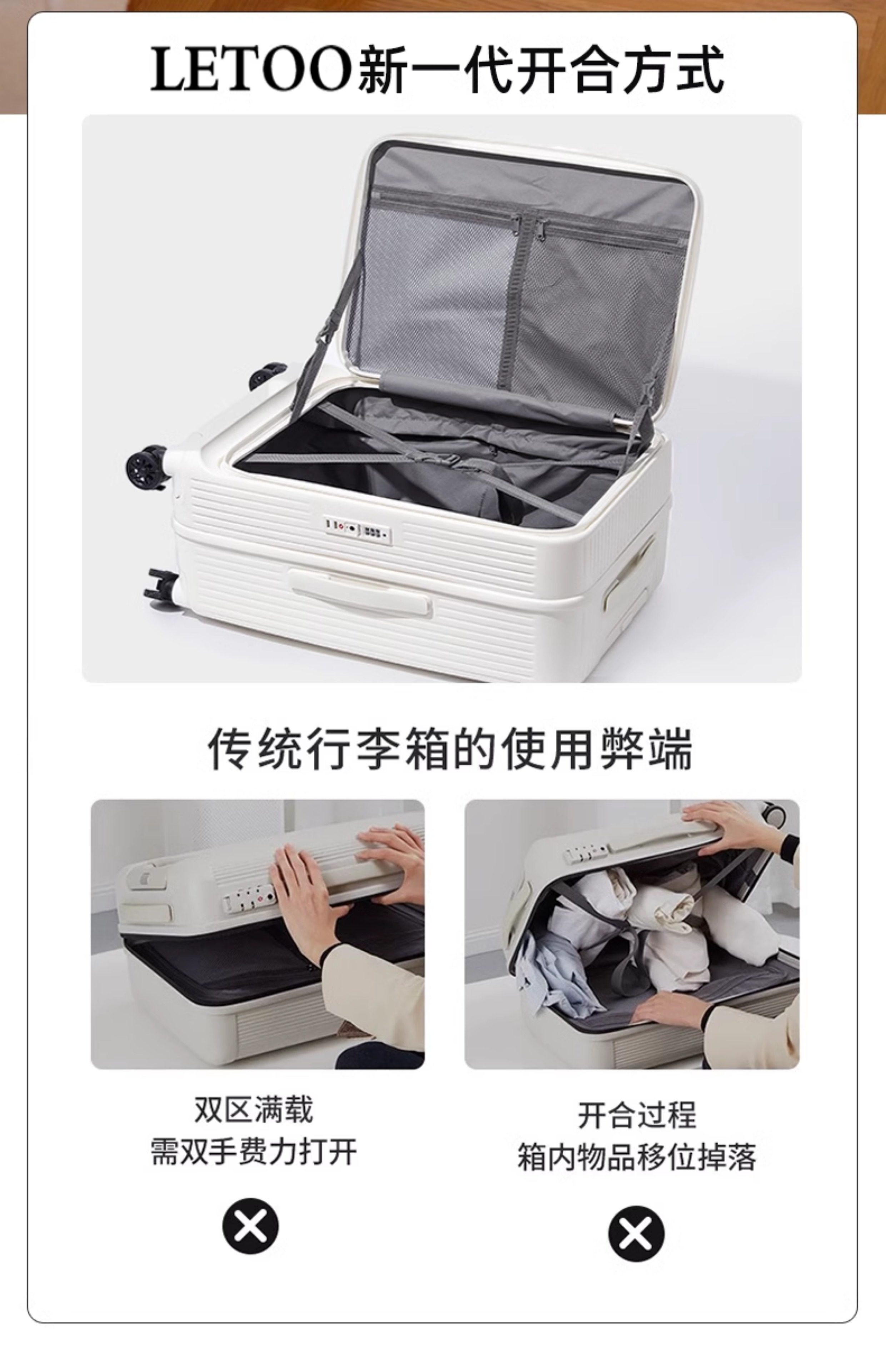 LETOO前側開蓋拉桿行李箱女大容量超輕拉鍊20寸登機密碼旅行箱24