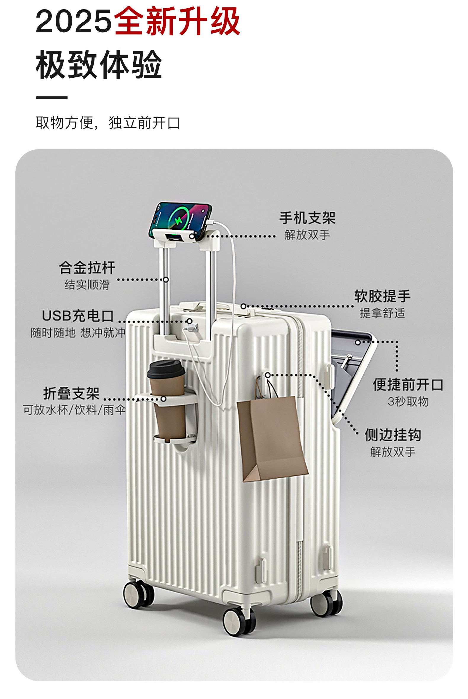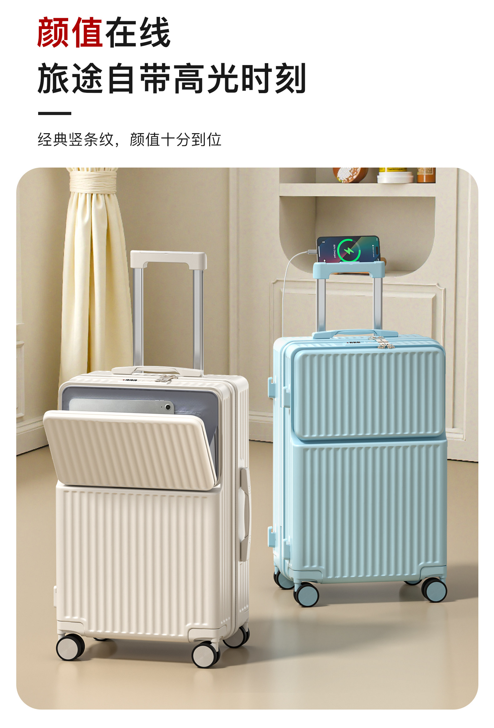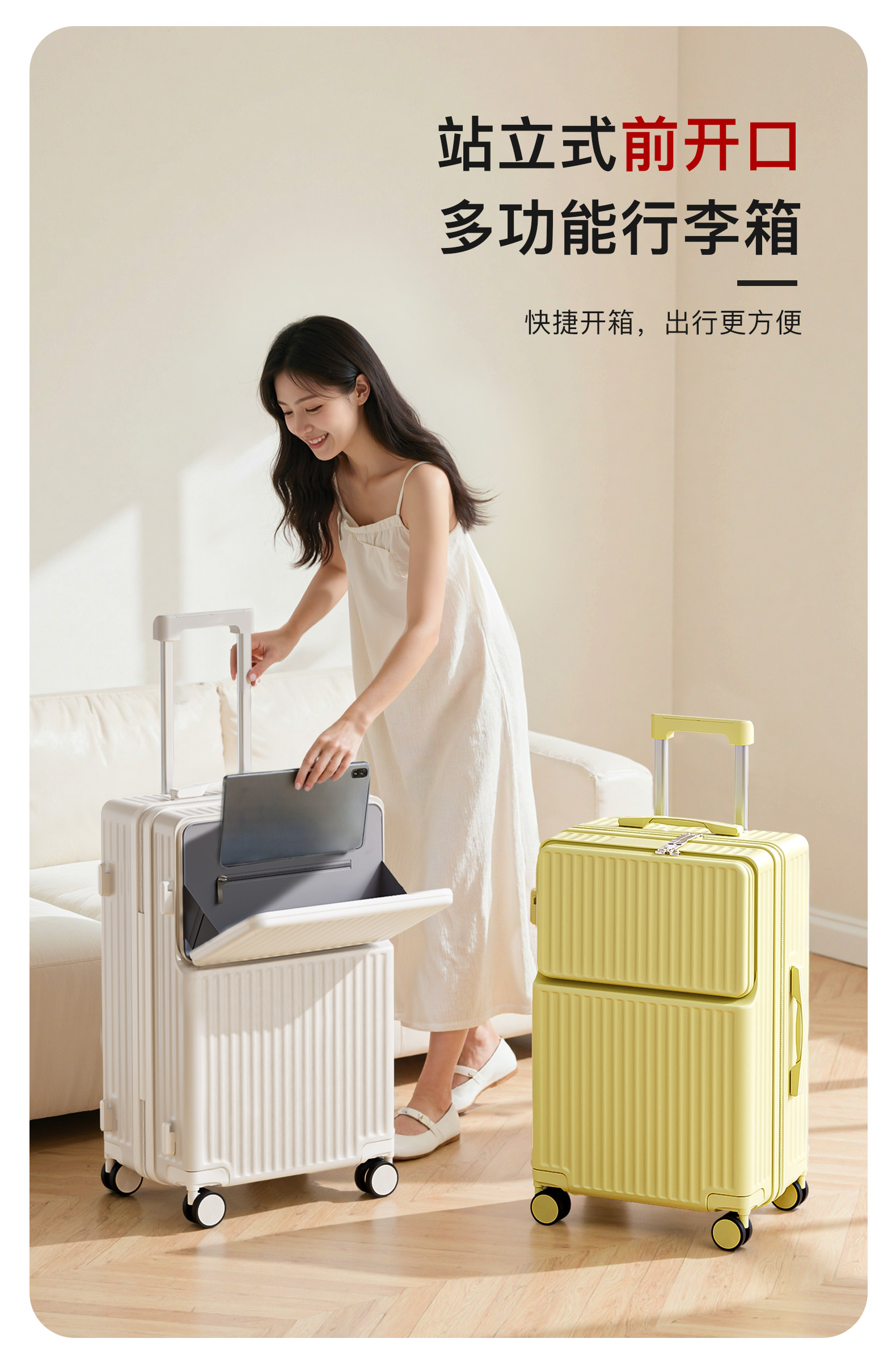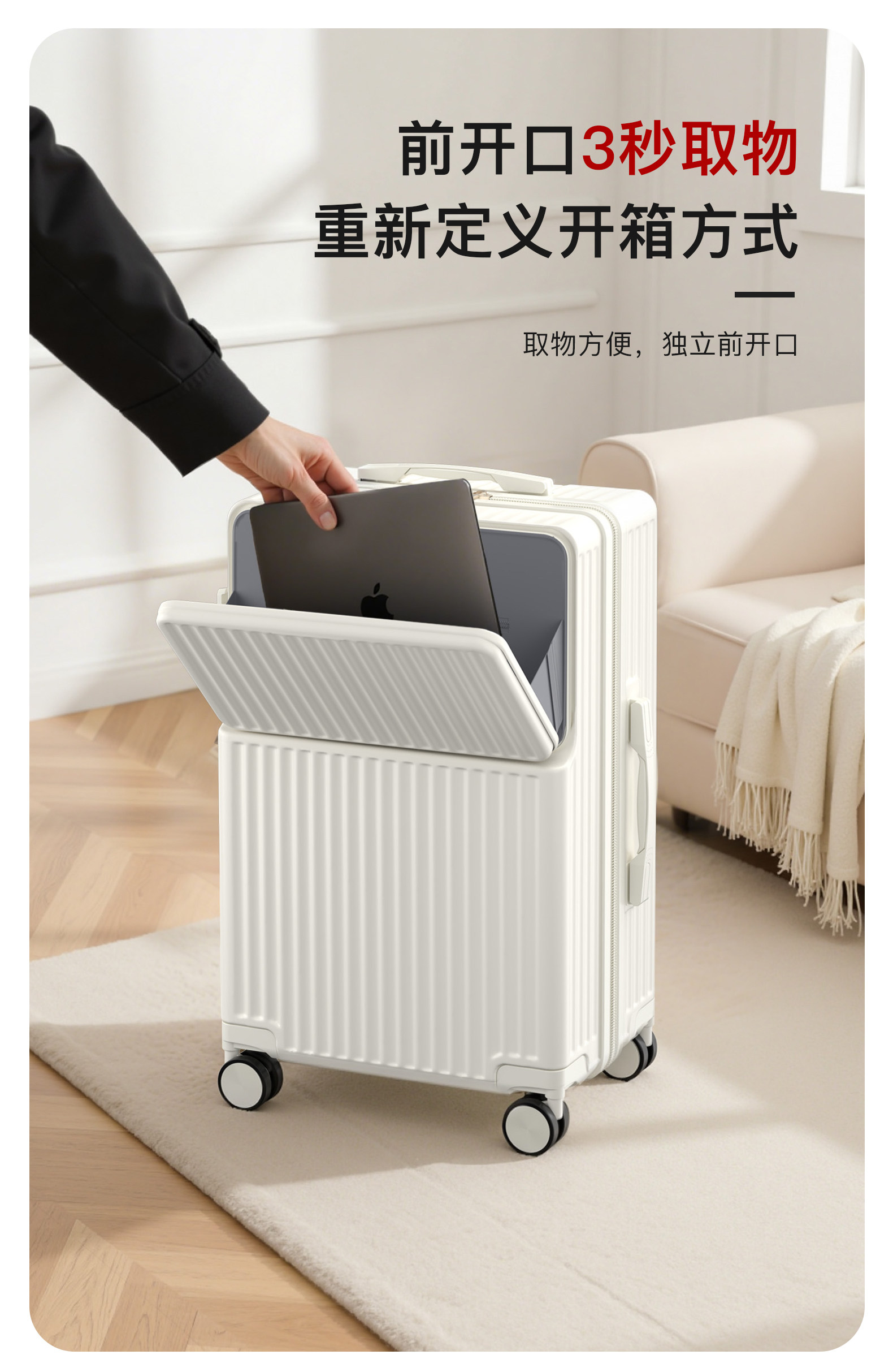 前置開口行李箱女2026新款拉桿箱子登機箱靜音輪子半開蓋旅行箱男