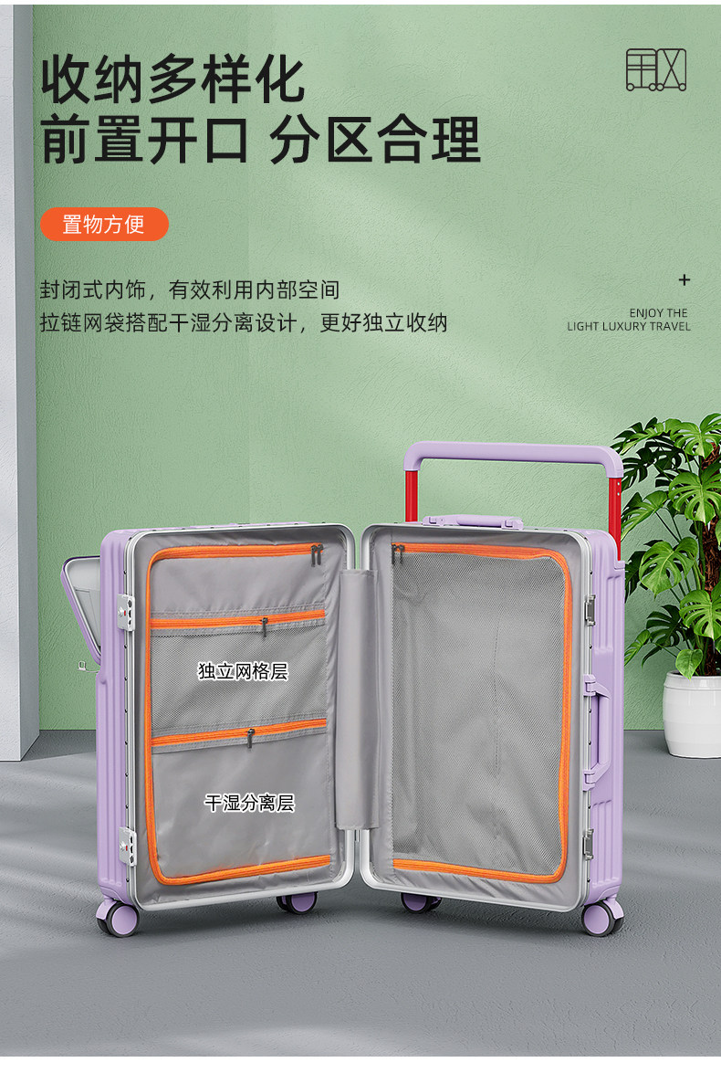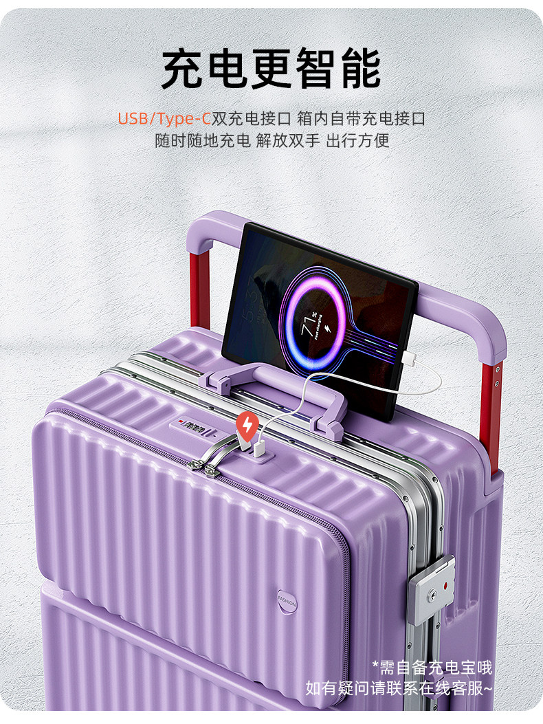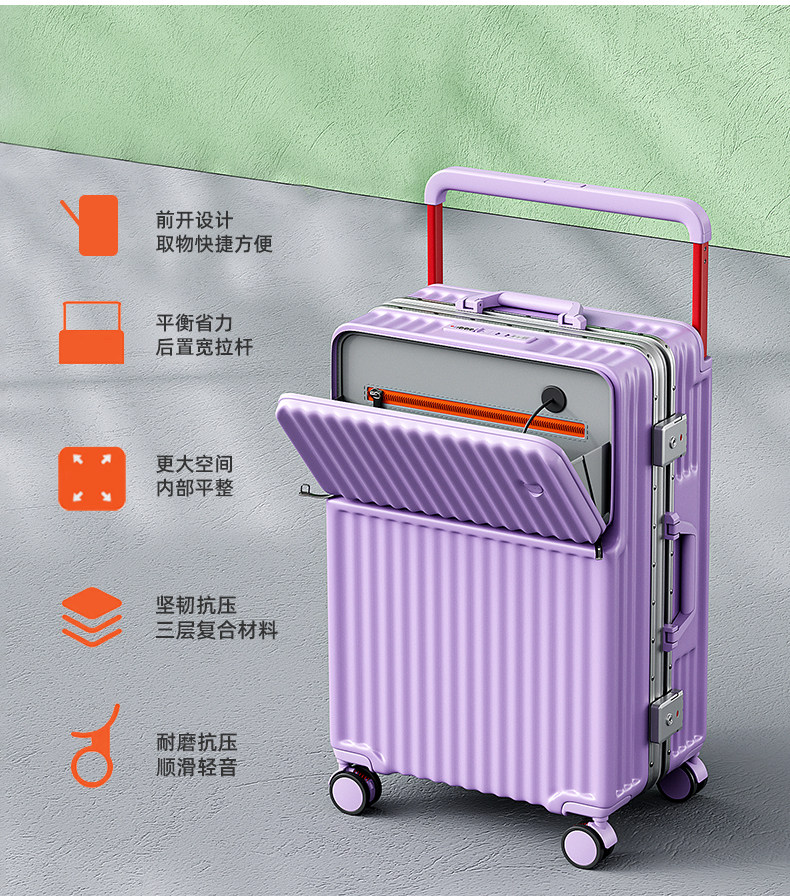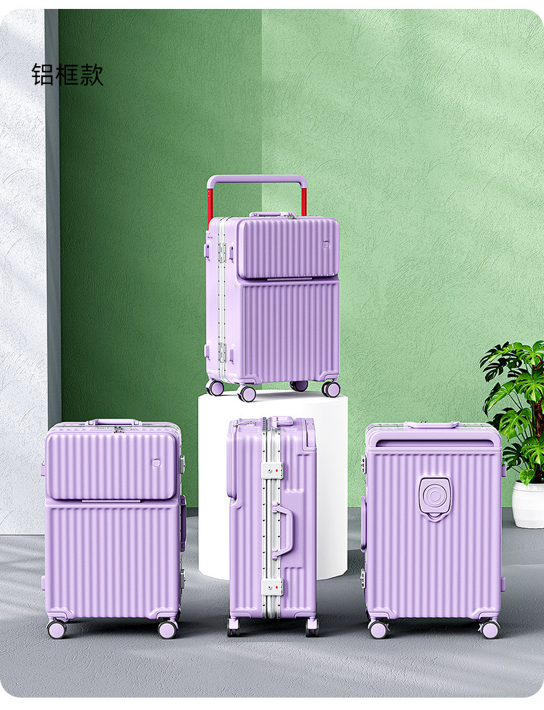 新款寬拉桿行李箱前開口鋁框男女拉桿箱靜音密碼箱大容量旅行箱24
