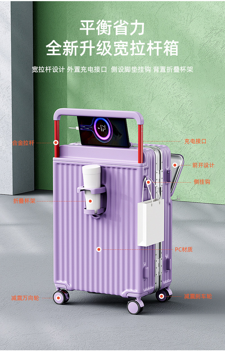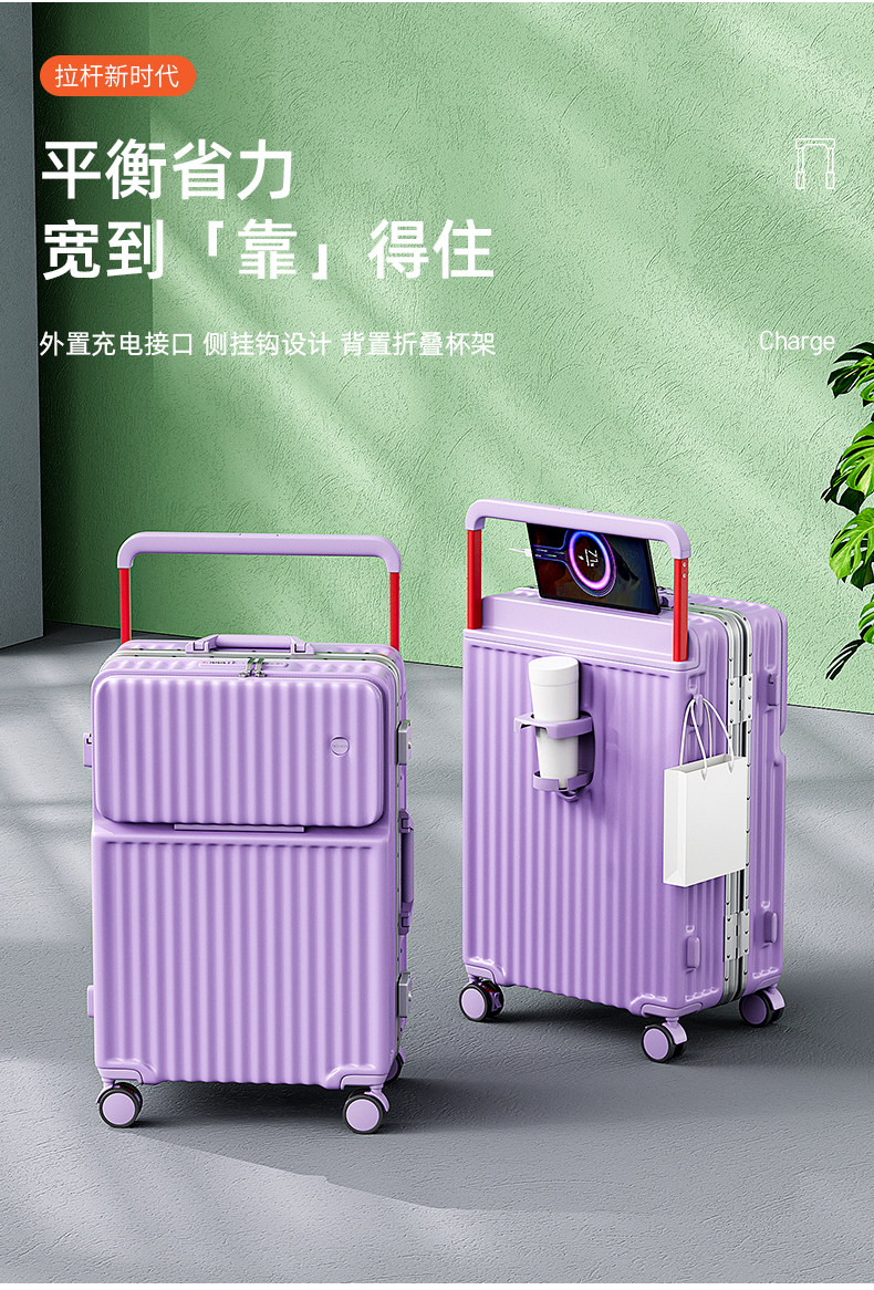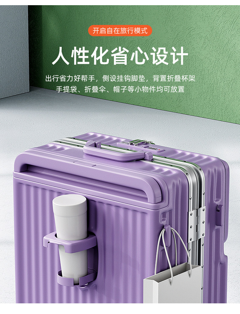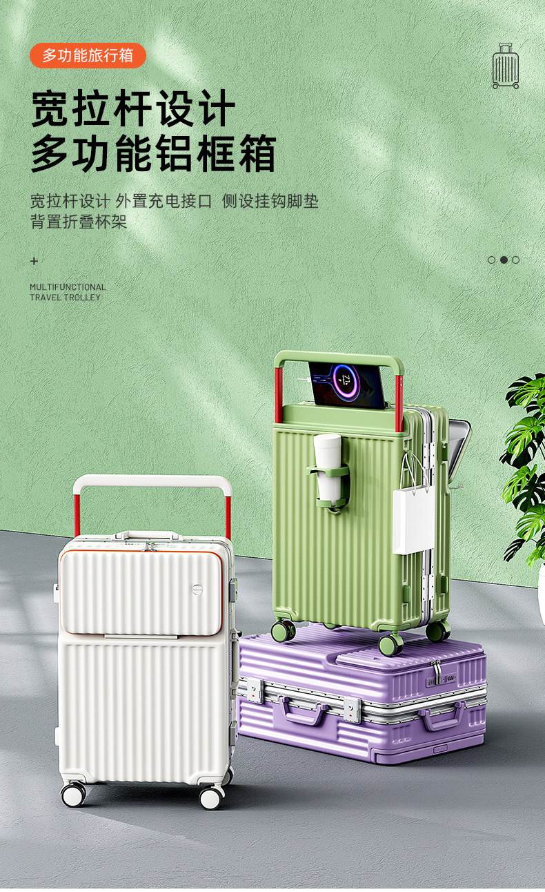 新款寬拉桿行李箱前開口鋁框男女拉桿箱靜音密碼箱大容量旅行箱24