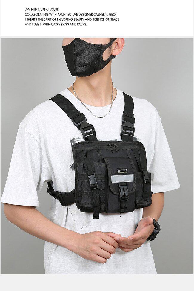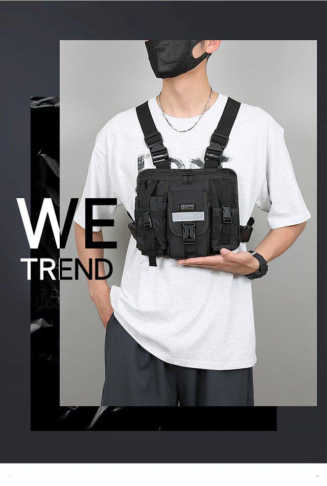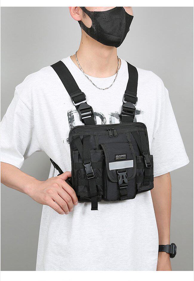 2025新款潮牌戰術包休閒個性馬甲包男士胸包多功能戶外運動包後後背包