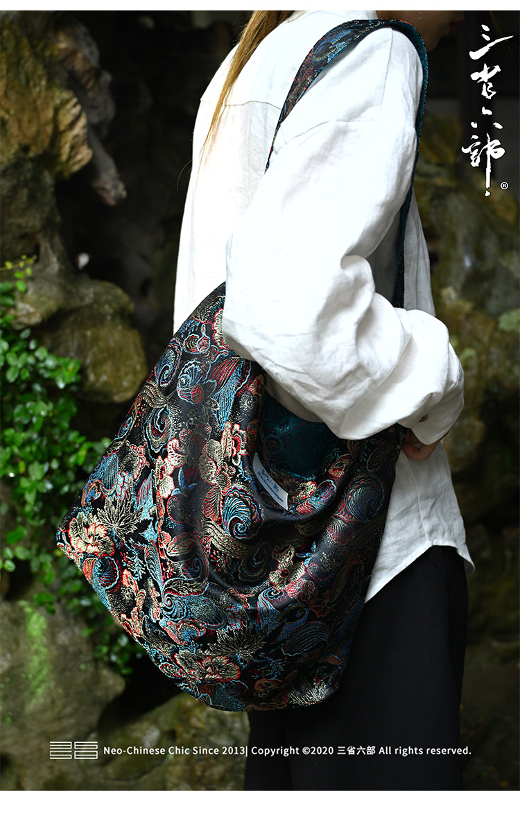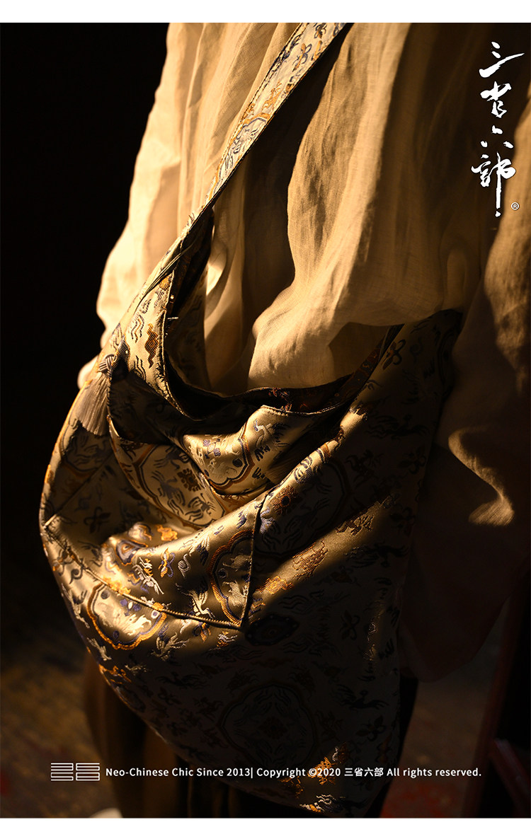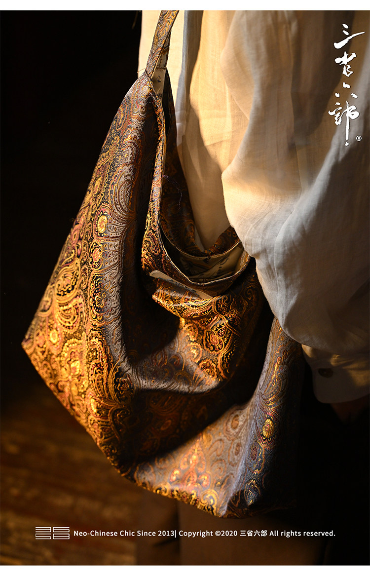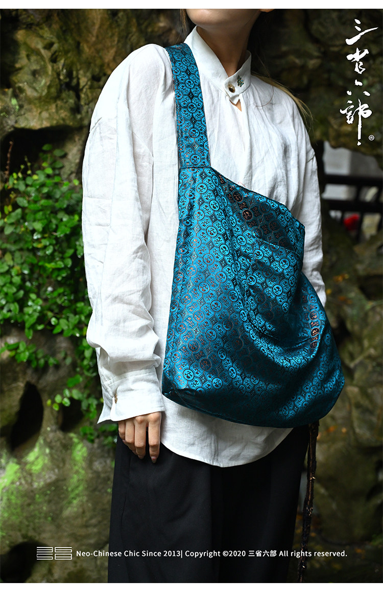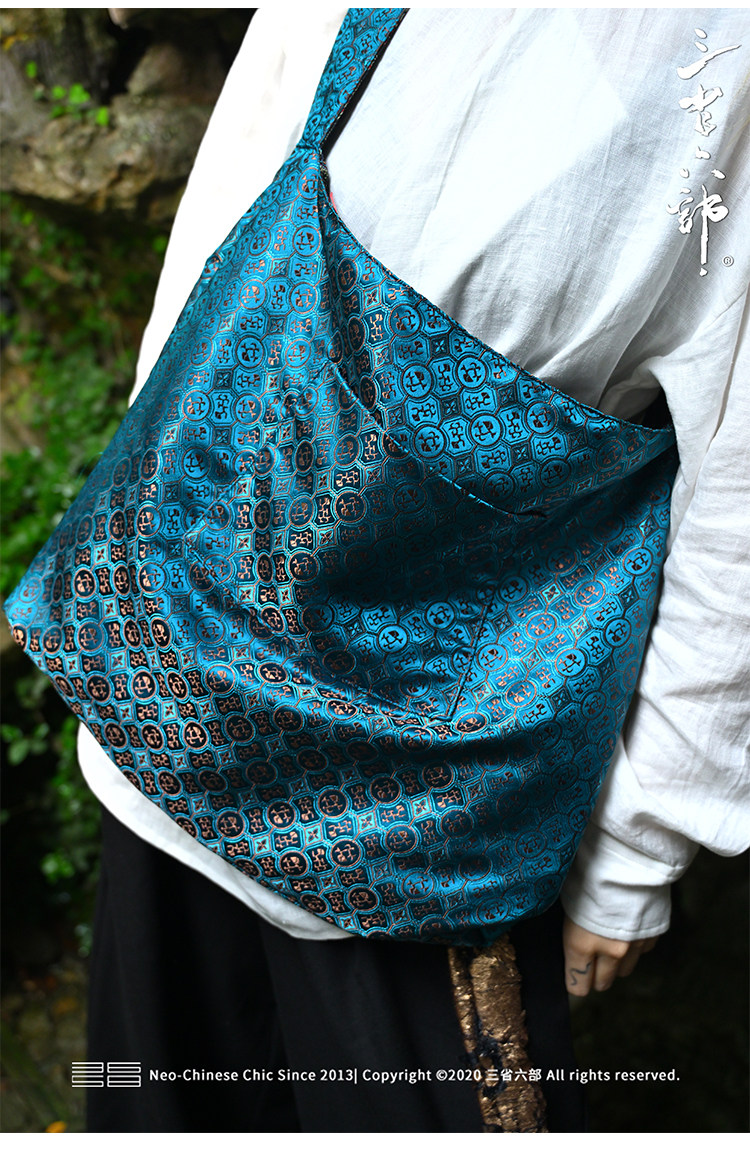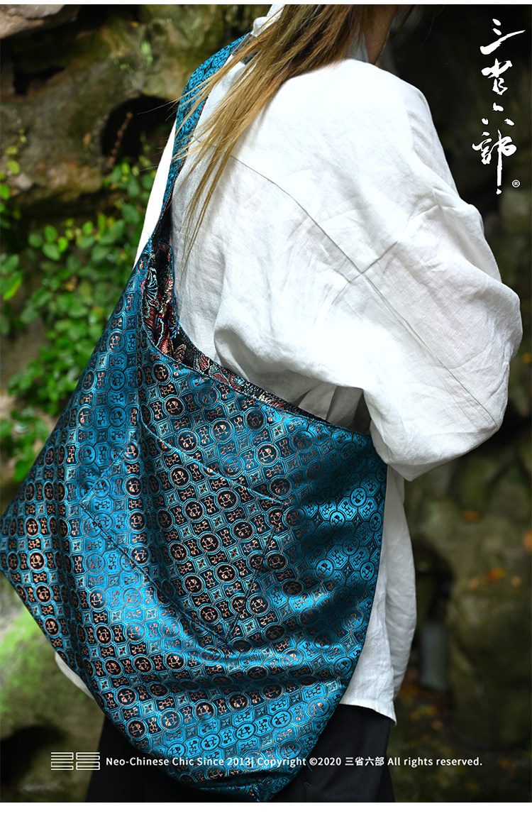 三省六部【科擧】風提花系列男女同款雙面背腋下斜後後背包拎袋