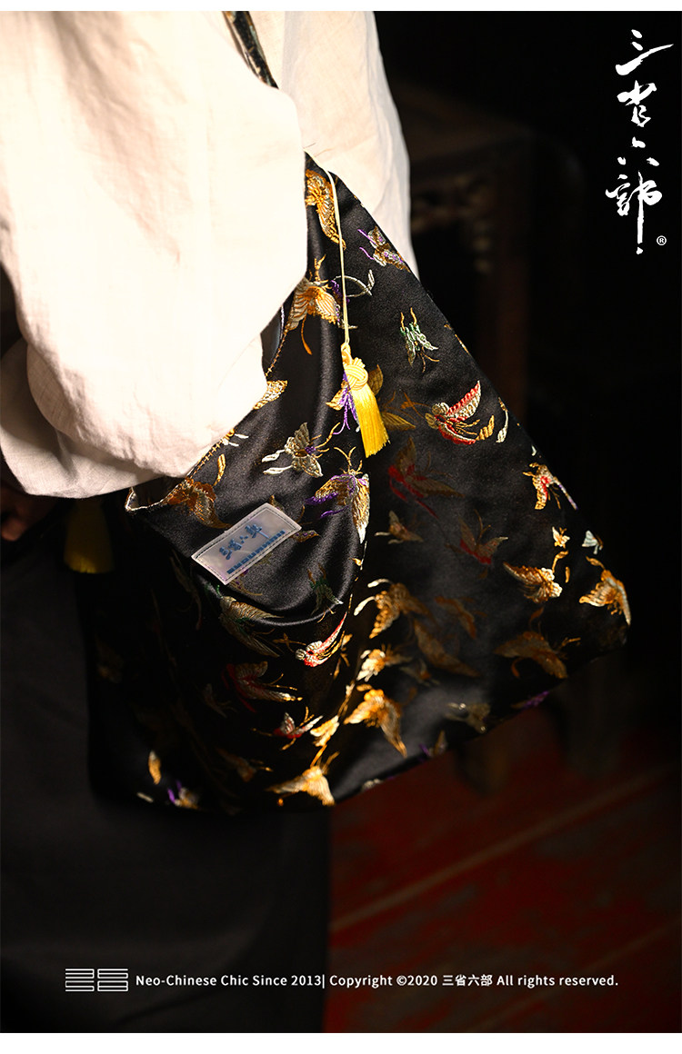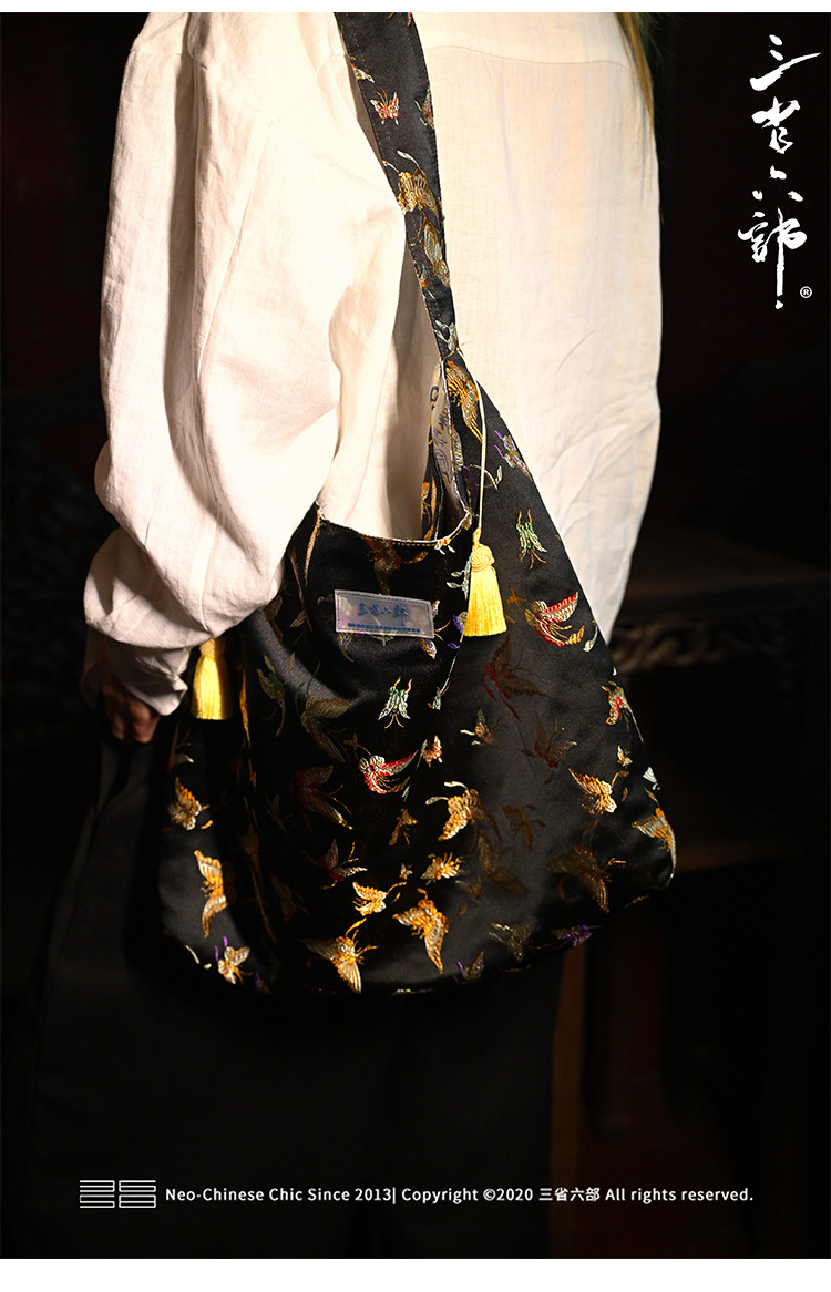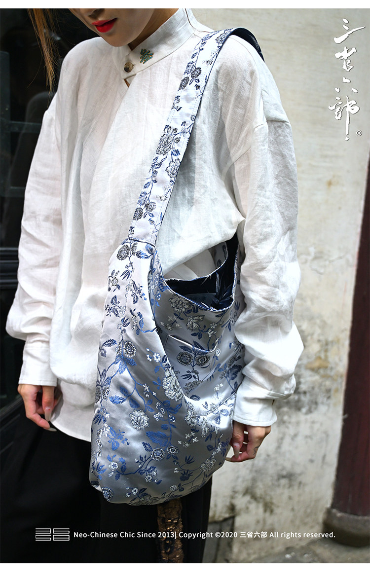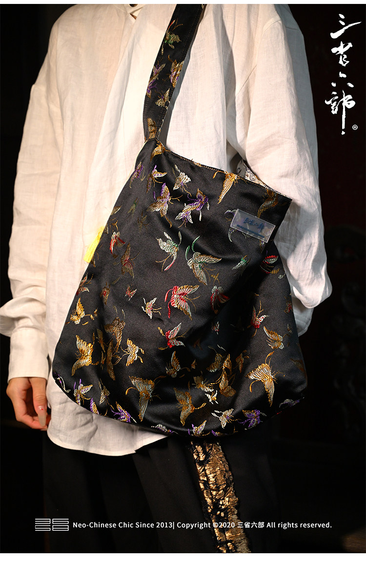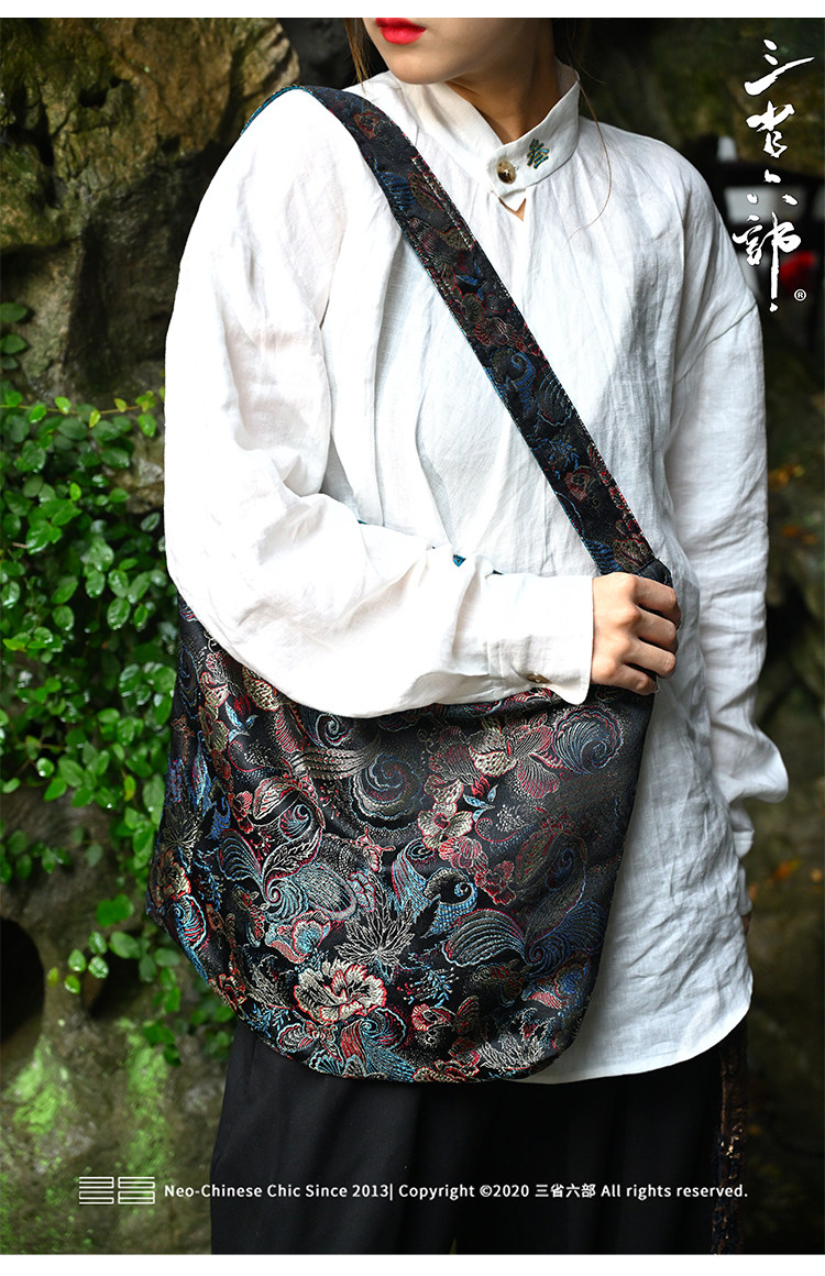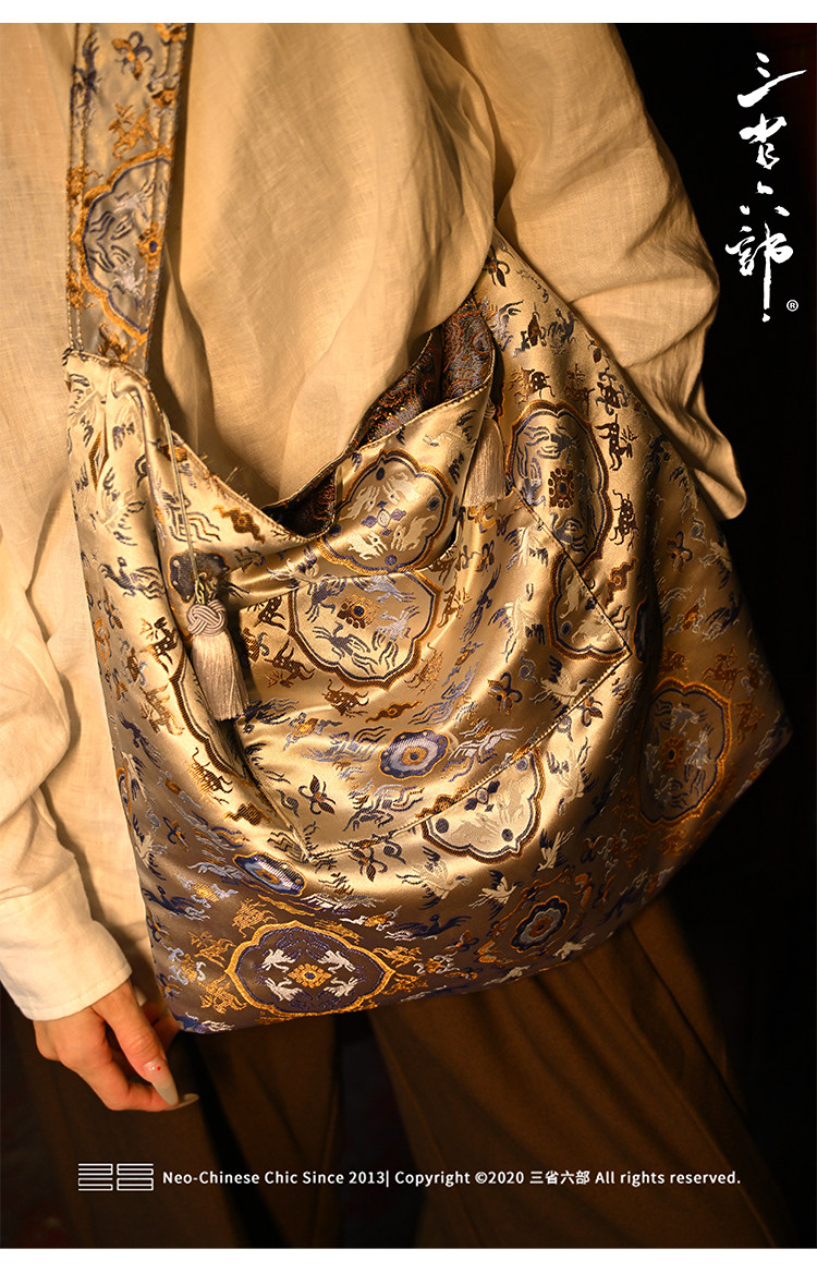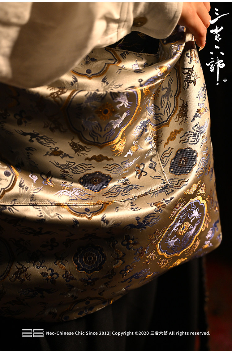 三省六部【科擧】風提花系列男女同款雙面背腋下斜後後背包拎袋