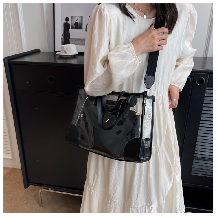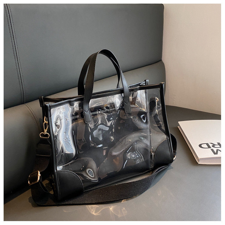 果凍旅行包女夏季大容量手提斜背購物袋透明沙灘包防水健身遊泳包