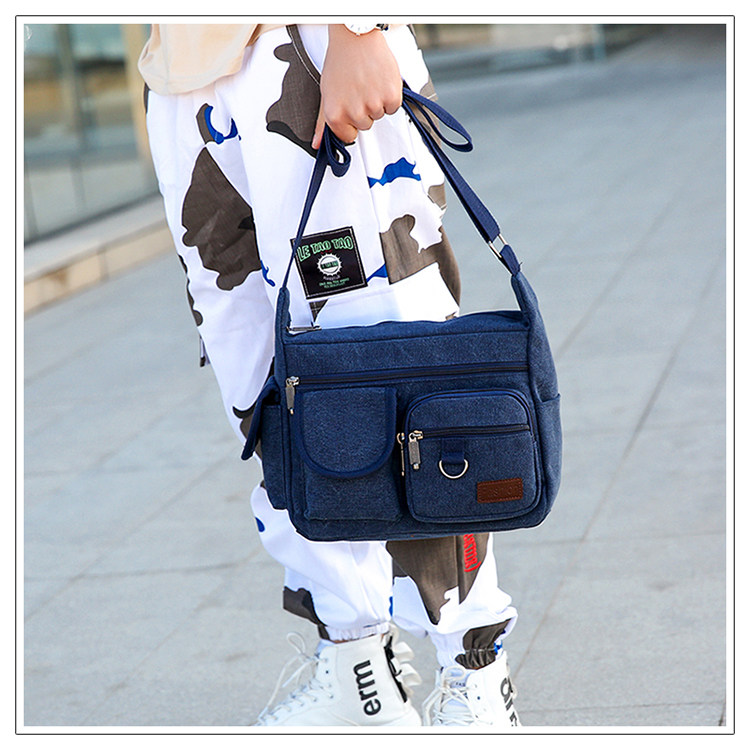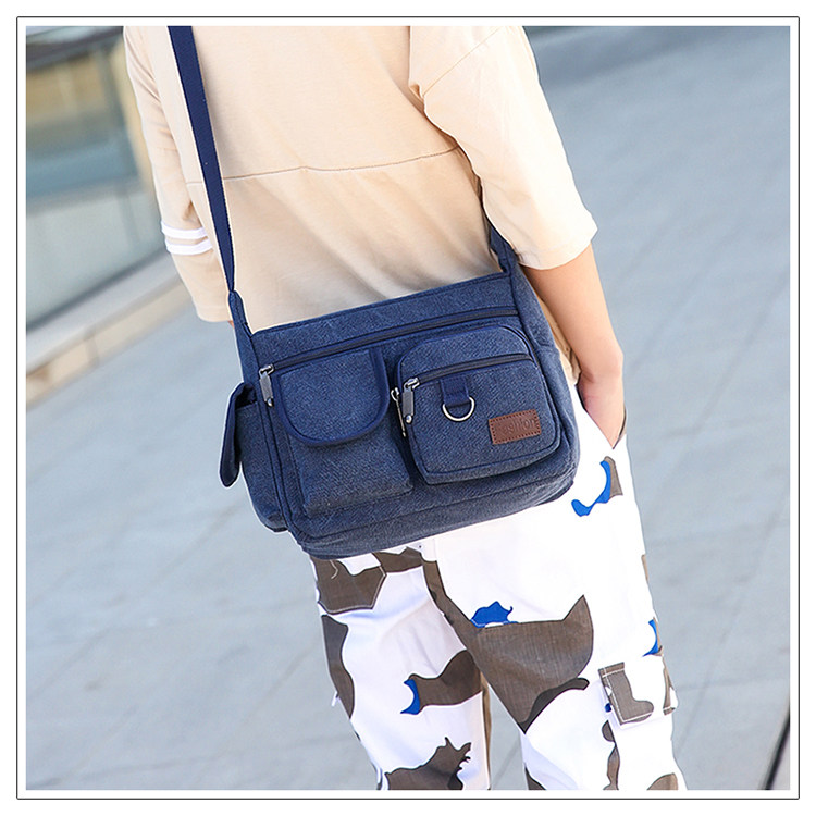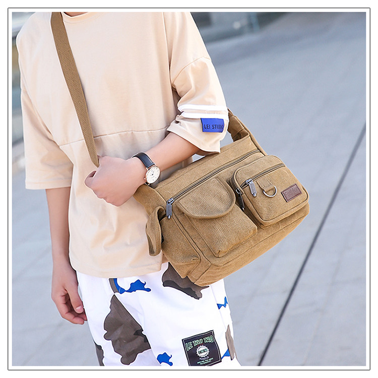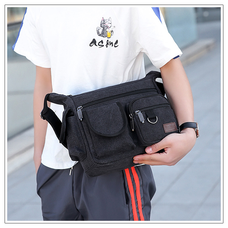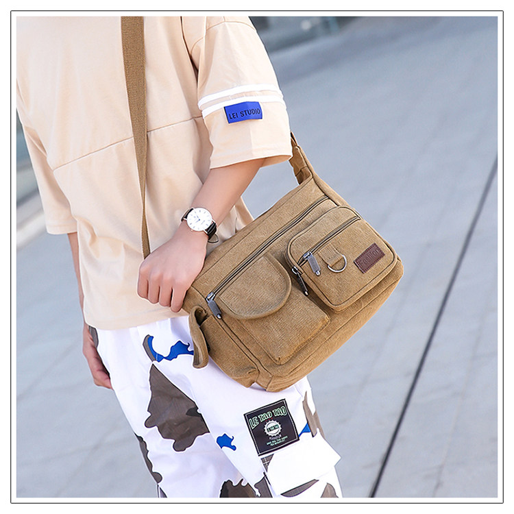 2022新款帆布包男挎包休閒男士包包快遞男包後後背包大容量斜背單肩包
