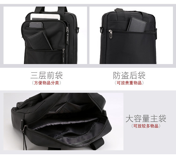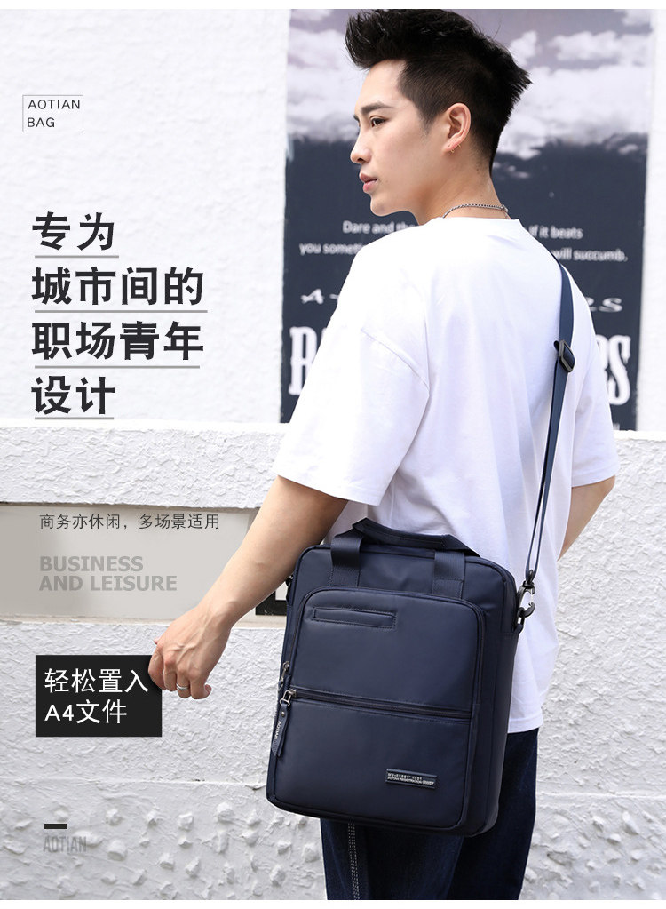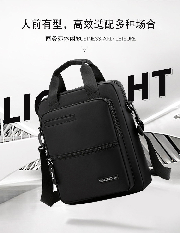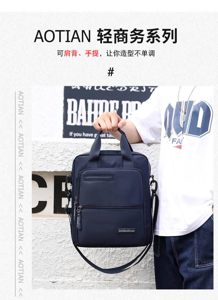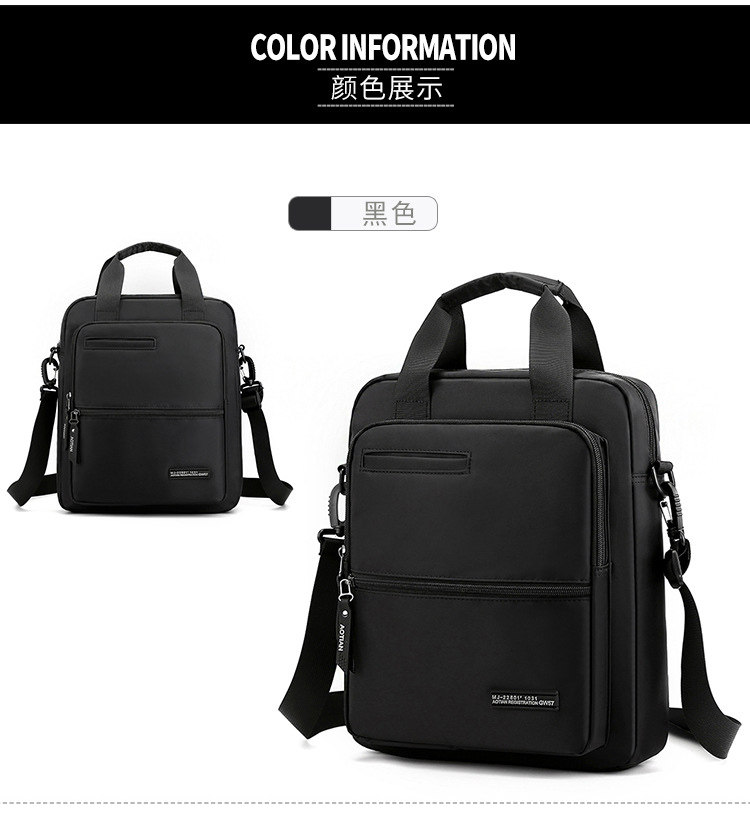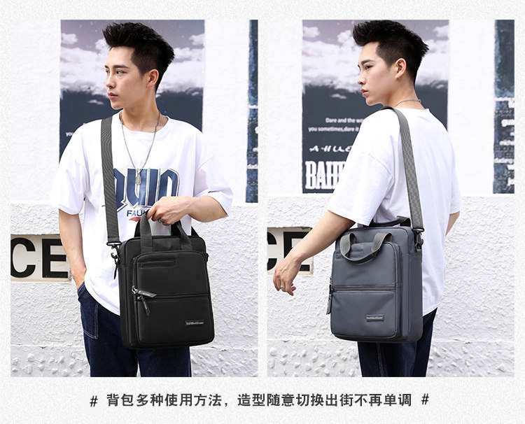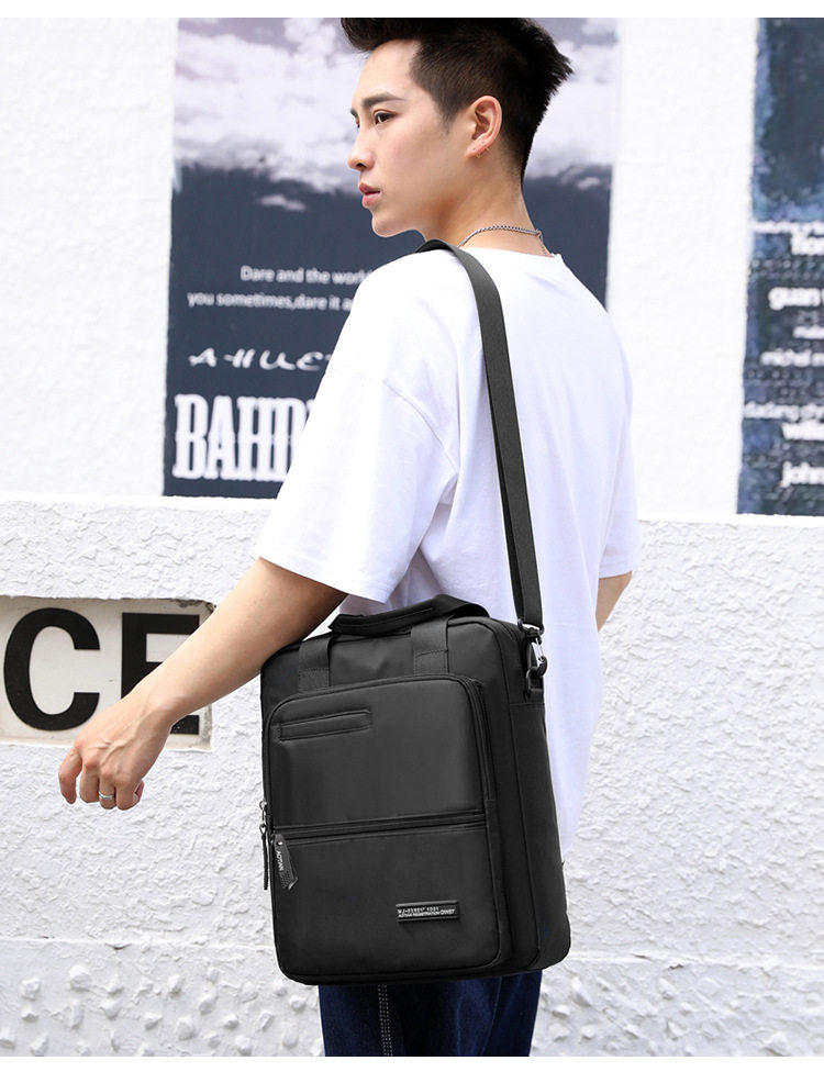 商務A4文件包13寸竪款公文包男手提斜背電腦包防水休閒牛津業務包