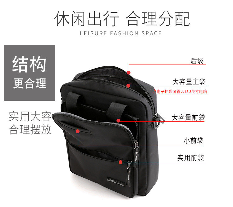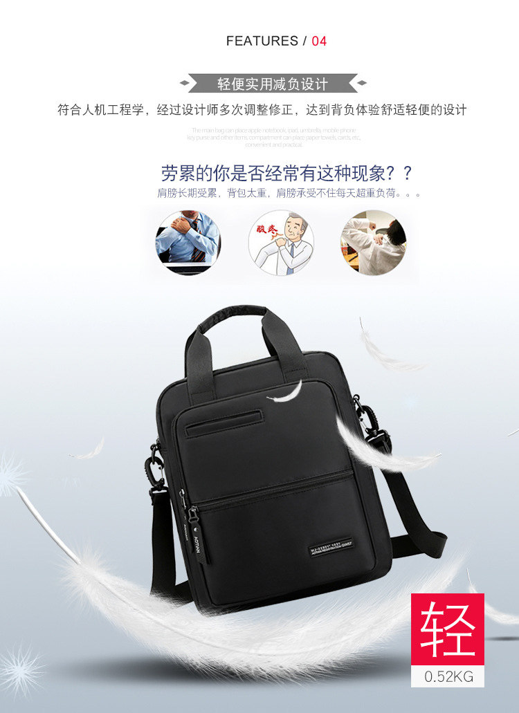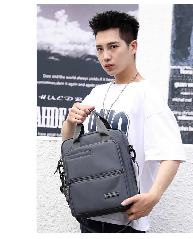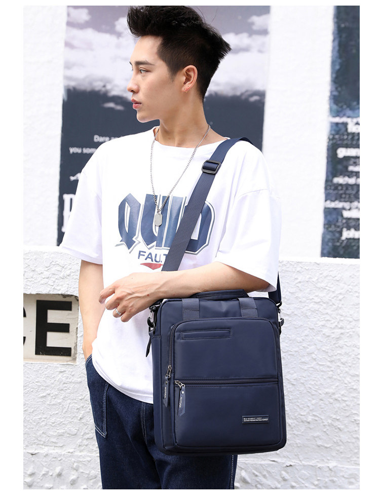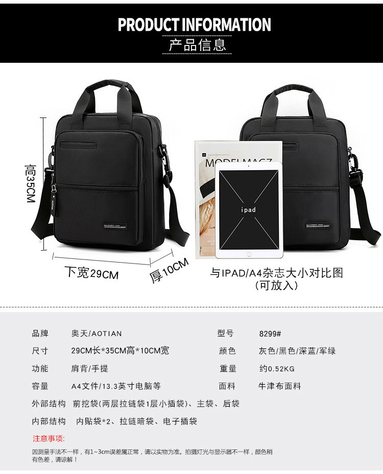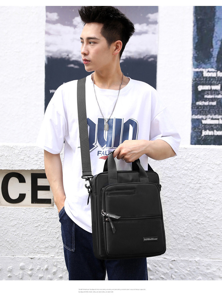 商務A4文件包13寸竪款公文包男手提斜背電腦包防水休閒牛津業務包