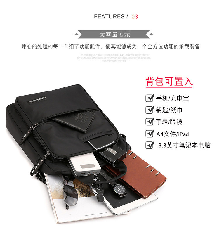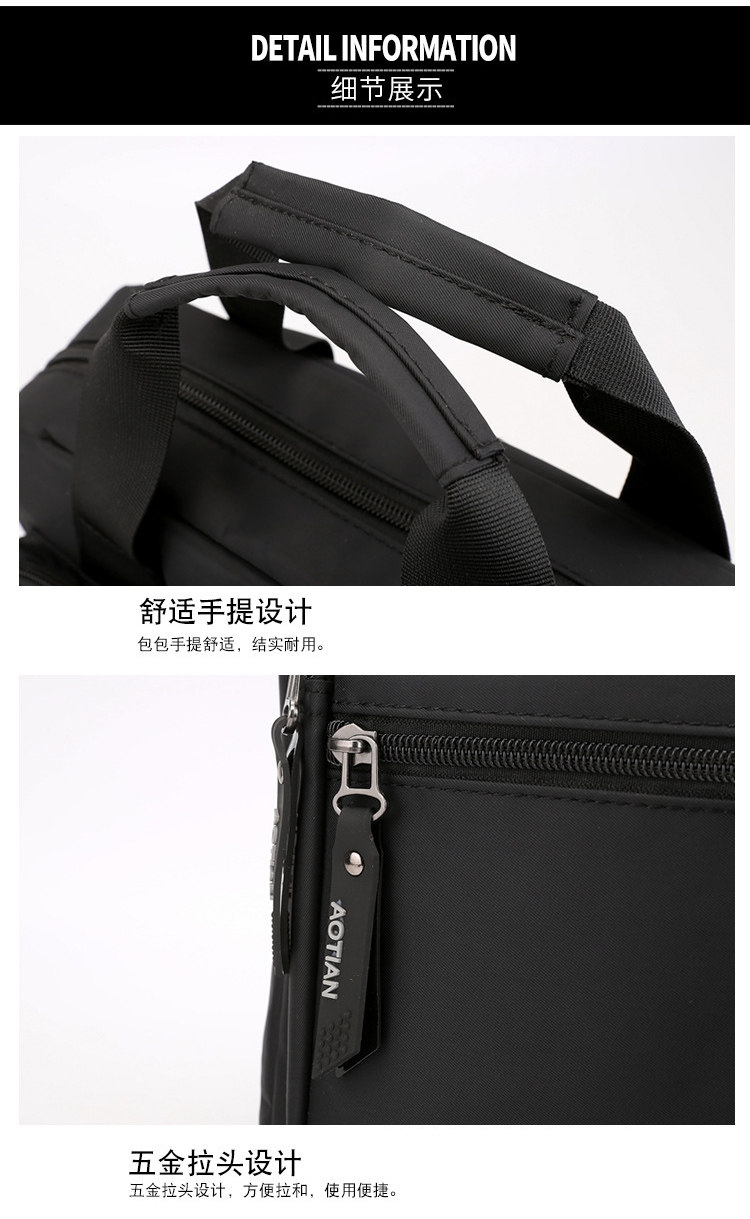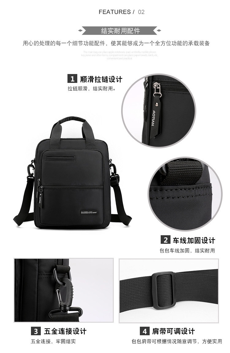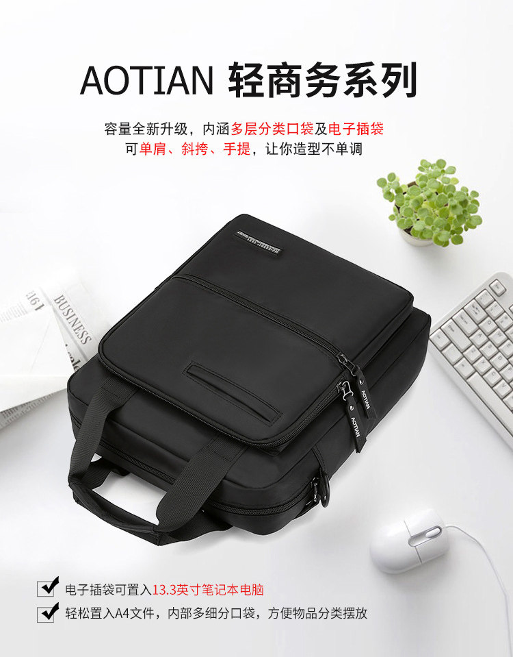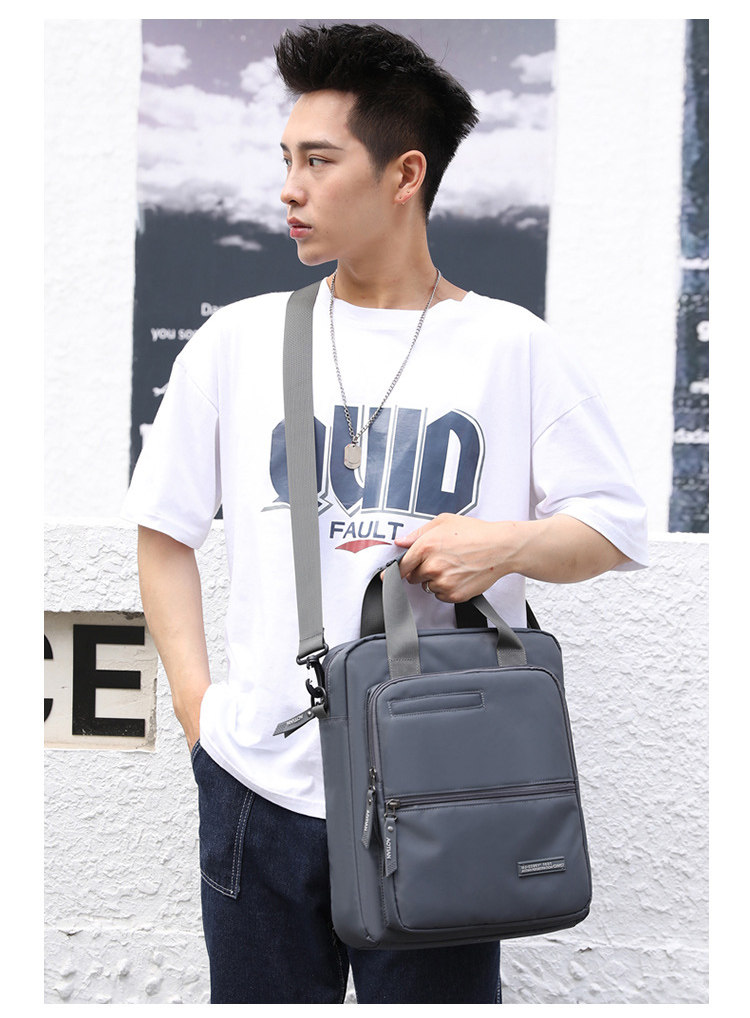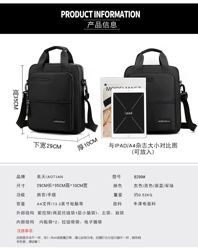 商務A4文件包13寸竪款公文包男手提斜背電腦包防水休閒牛津業務包