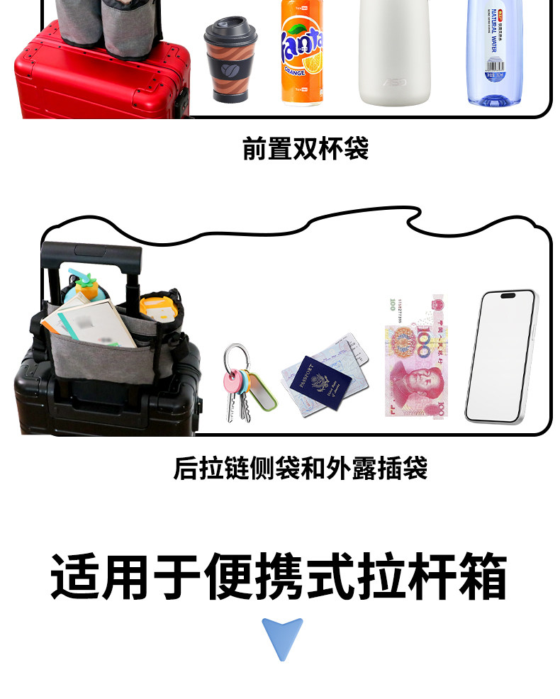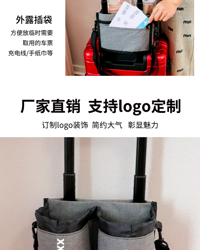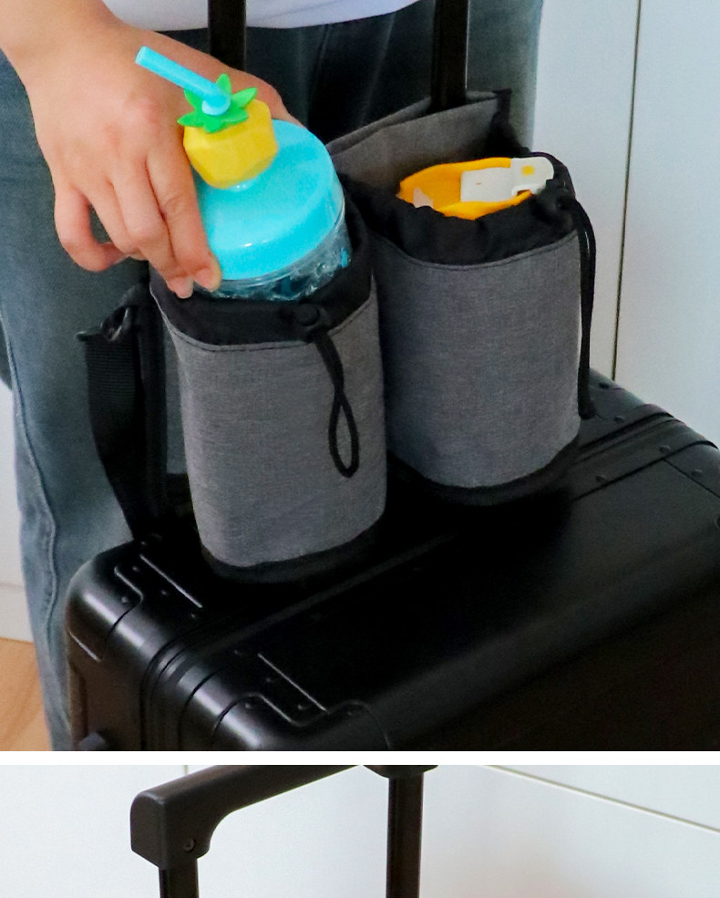 加厚牛津布行李箱拉桿插袋可攜式旅行水杯飲料收納袋多功能旅行杯架