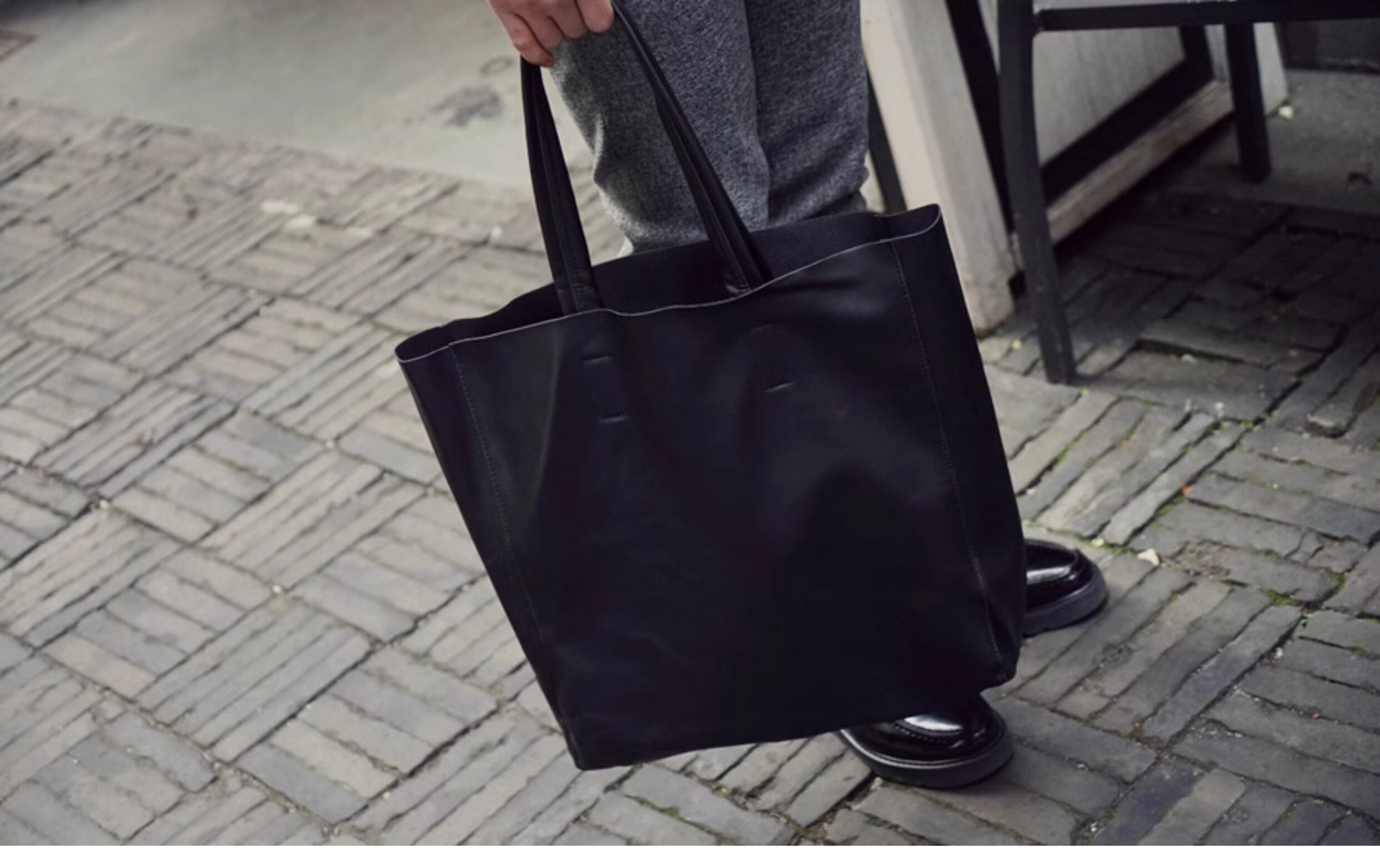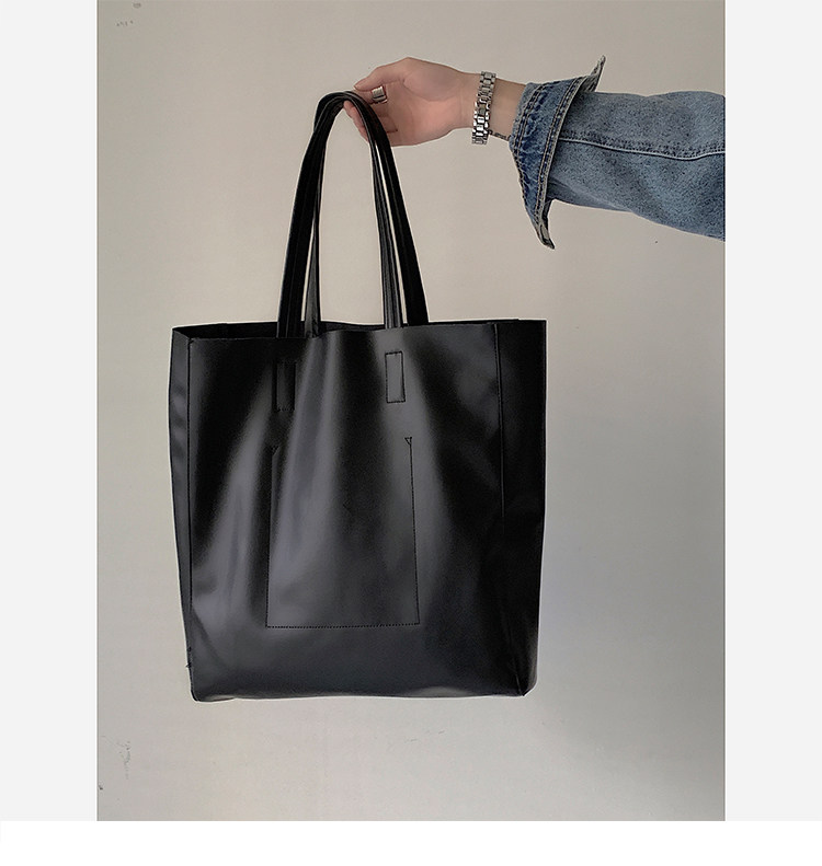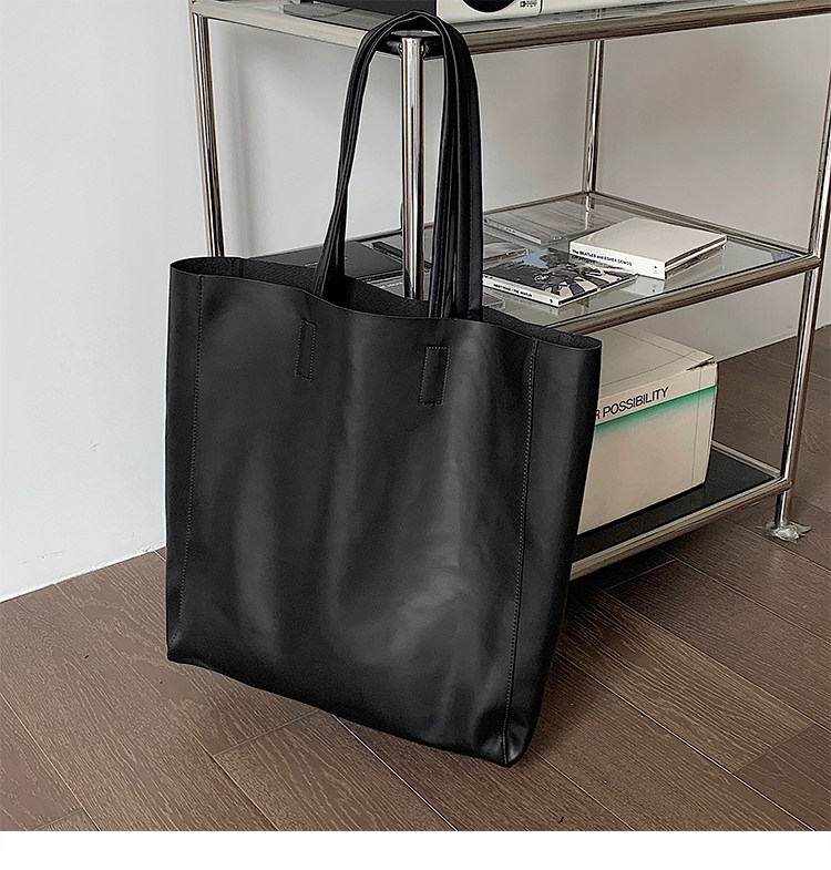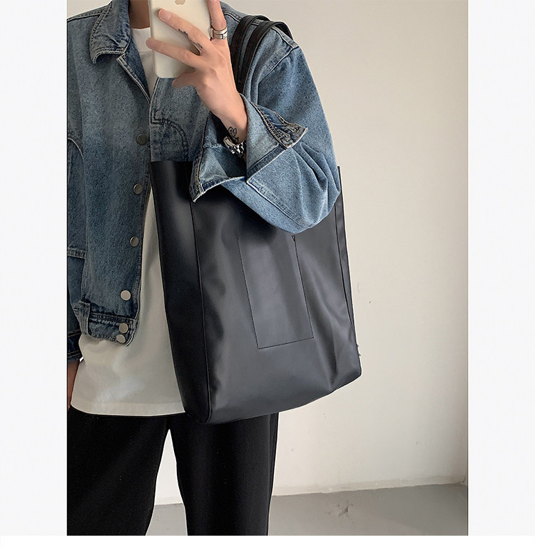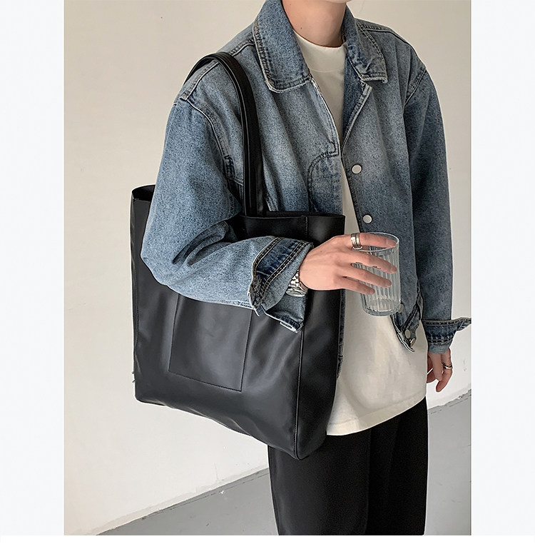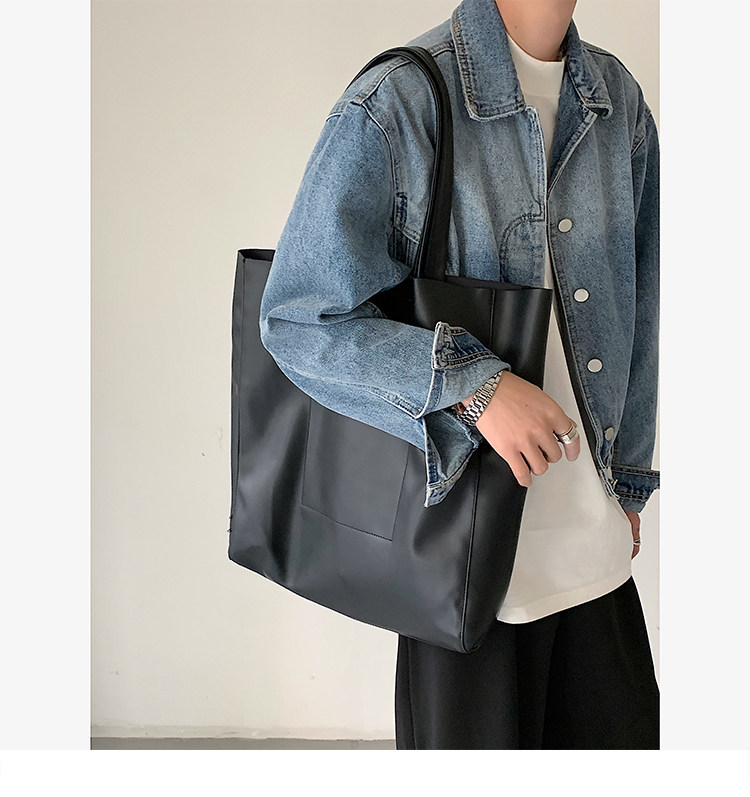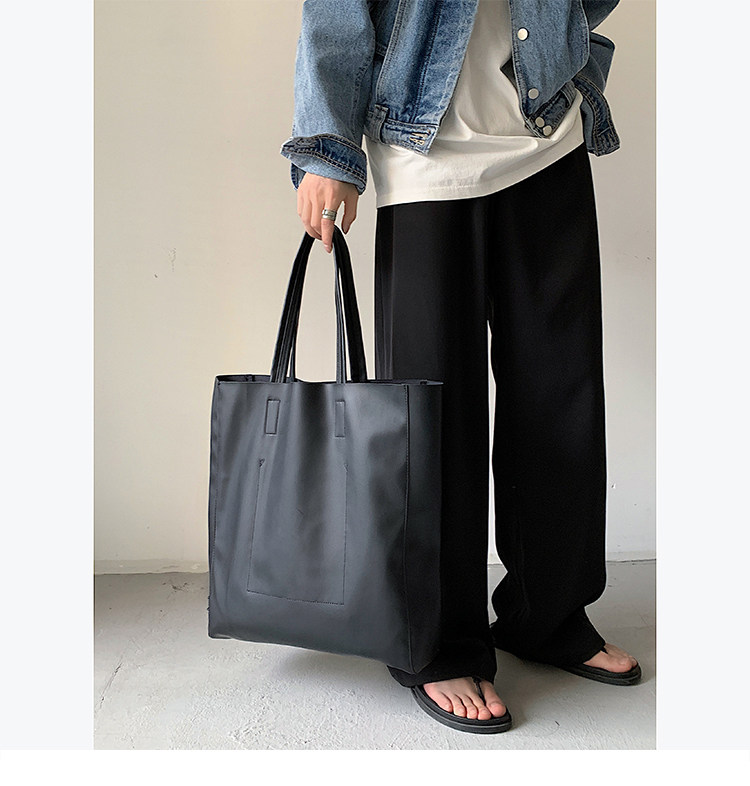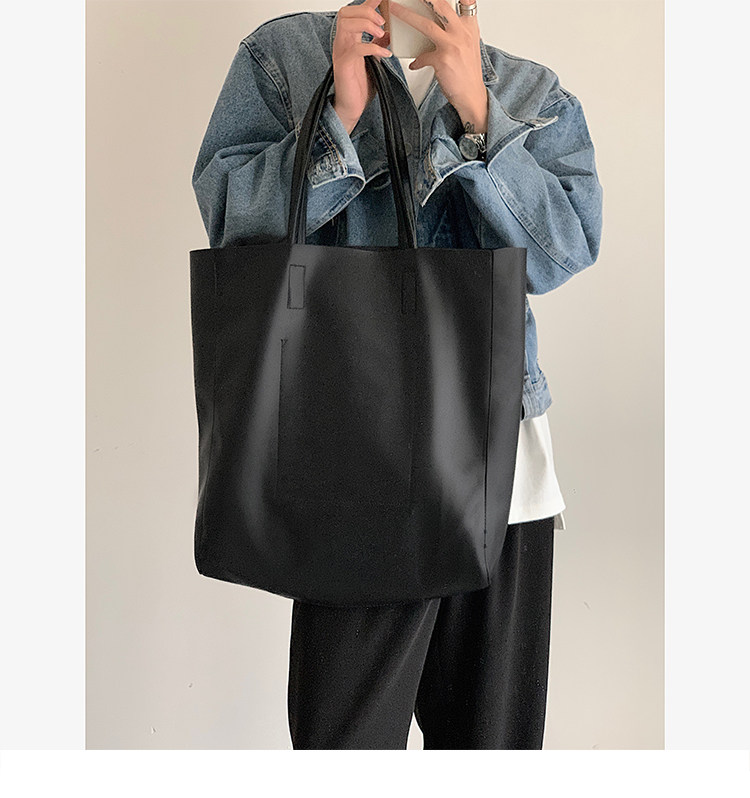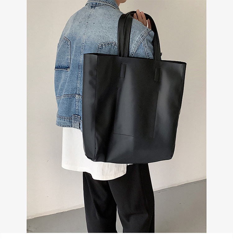 極簡ins風皮面托特包韓版男大容量手提包超軟PU皮面手拎袋單肩包