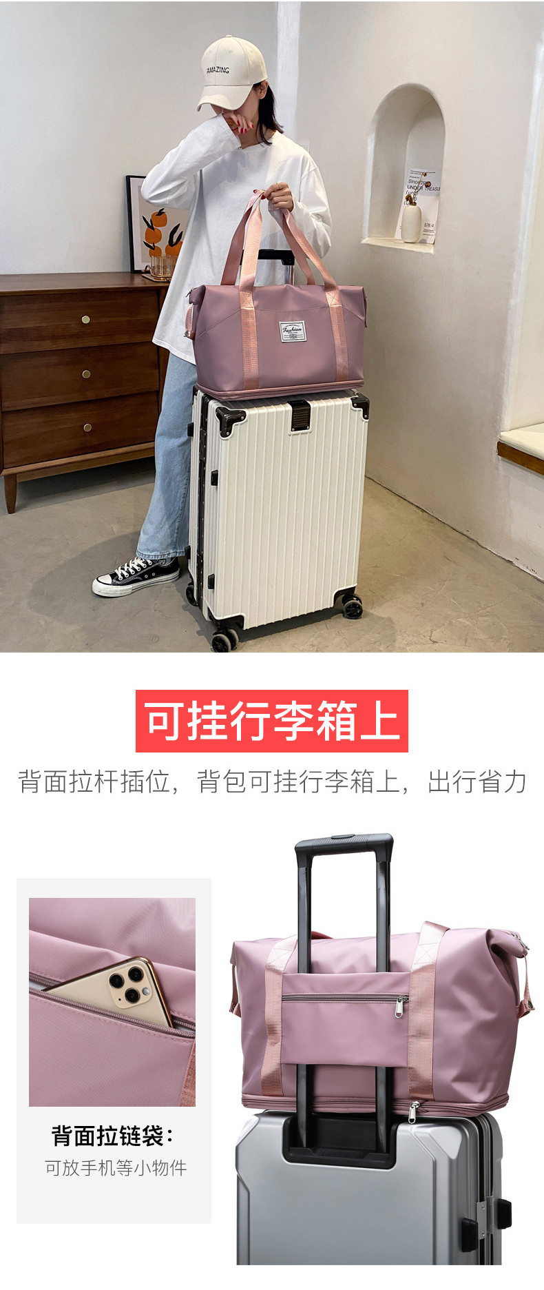 可套拉桿箱上的旅行包女大容量短途旅遊輕便附加手提行李袋收納包