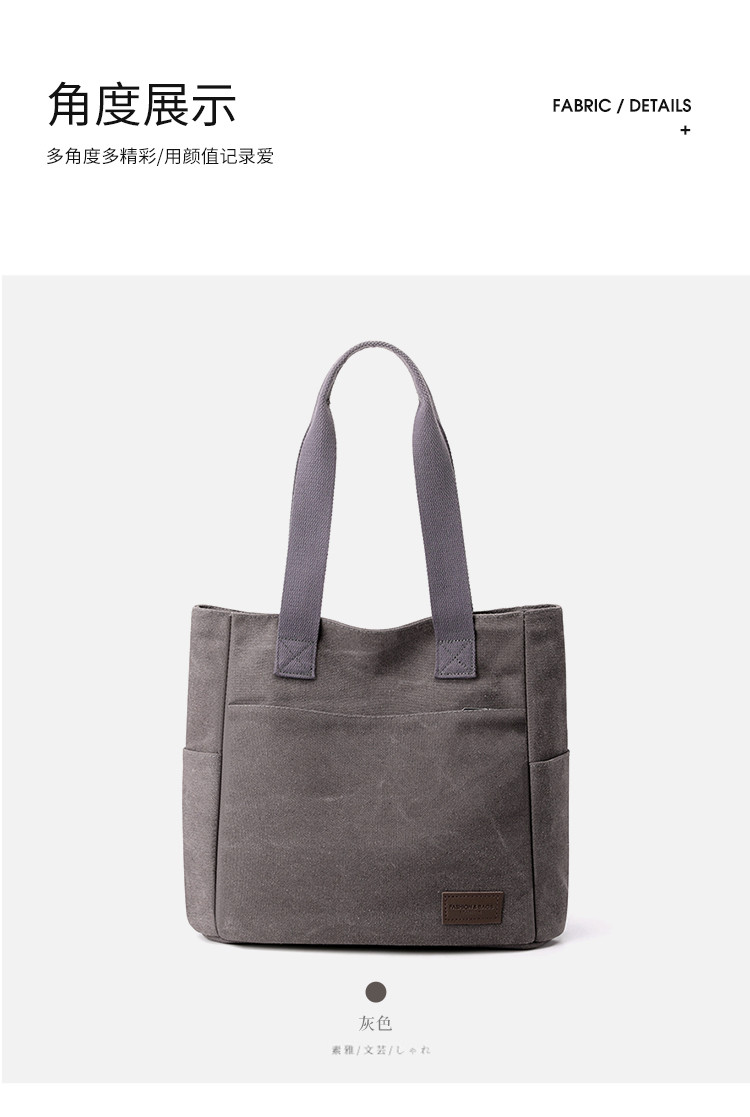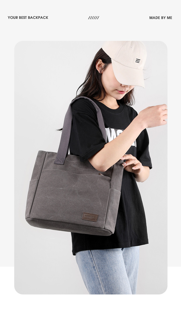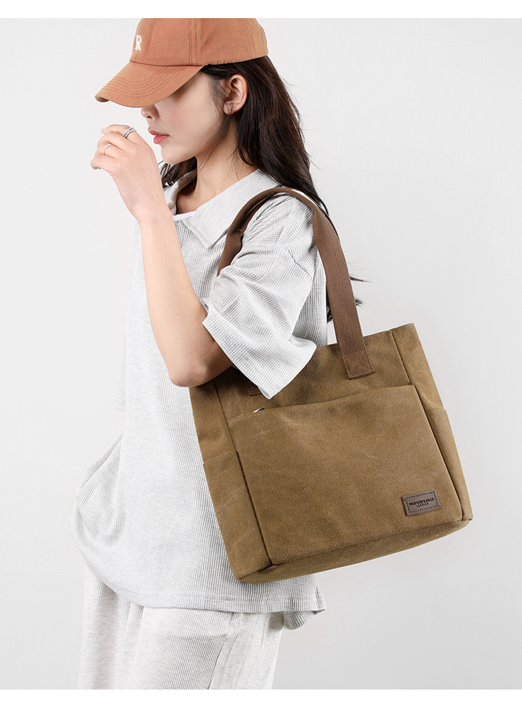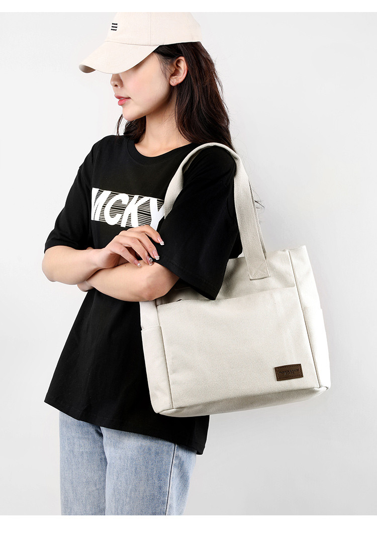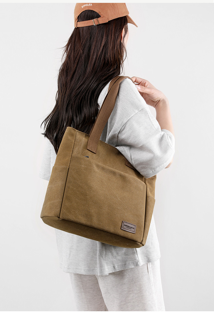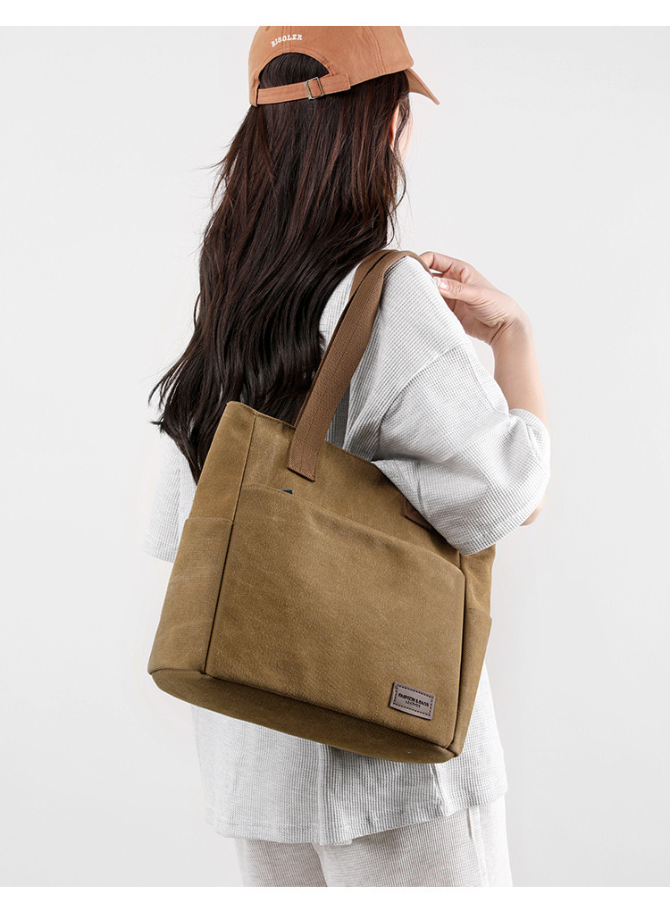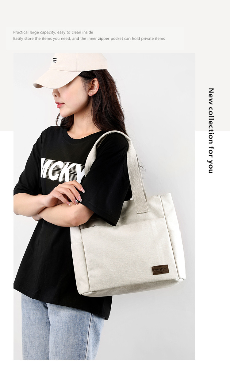 上課通勤大容量上班托特包包女士2025新款單肩文藝帆布包拉鍊布袋
