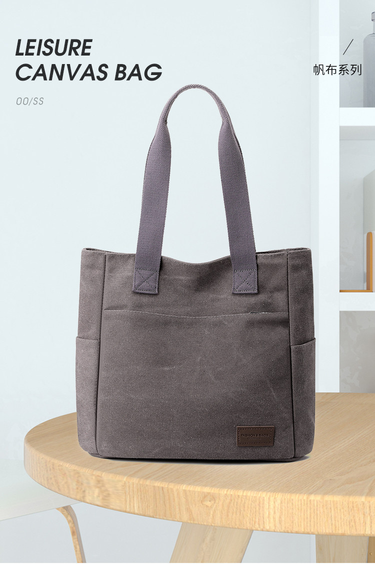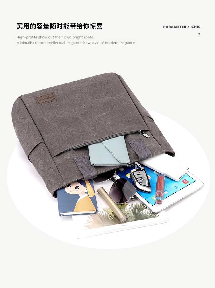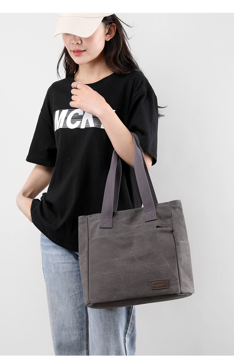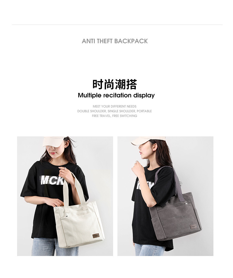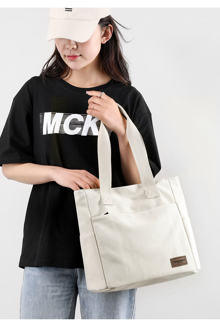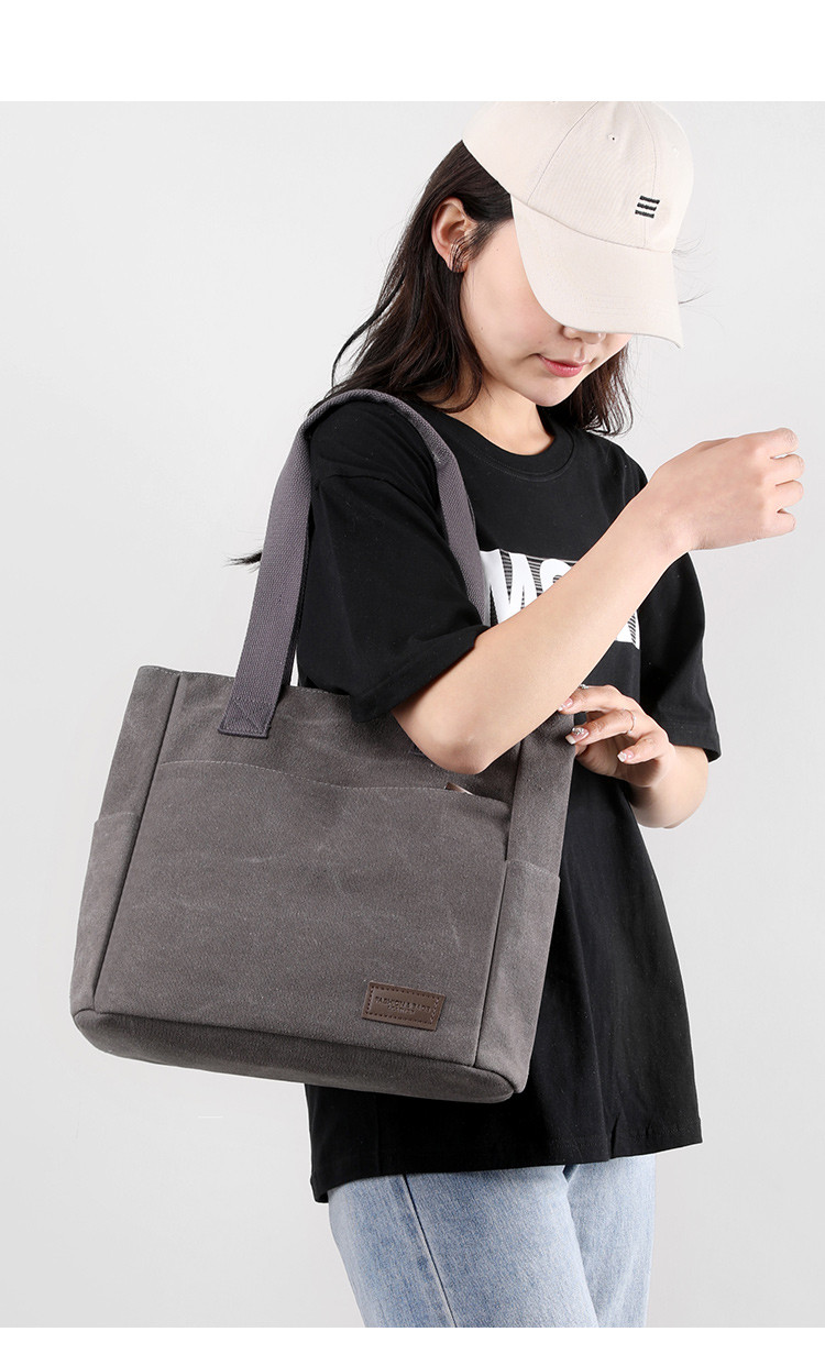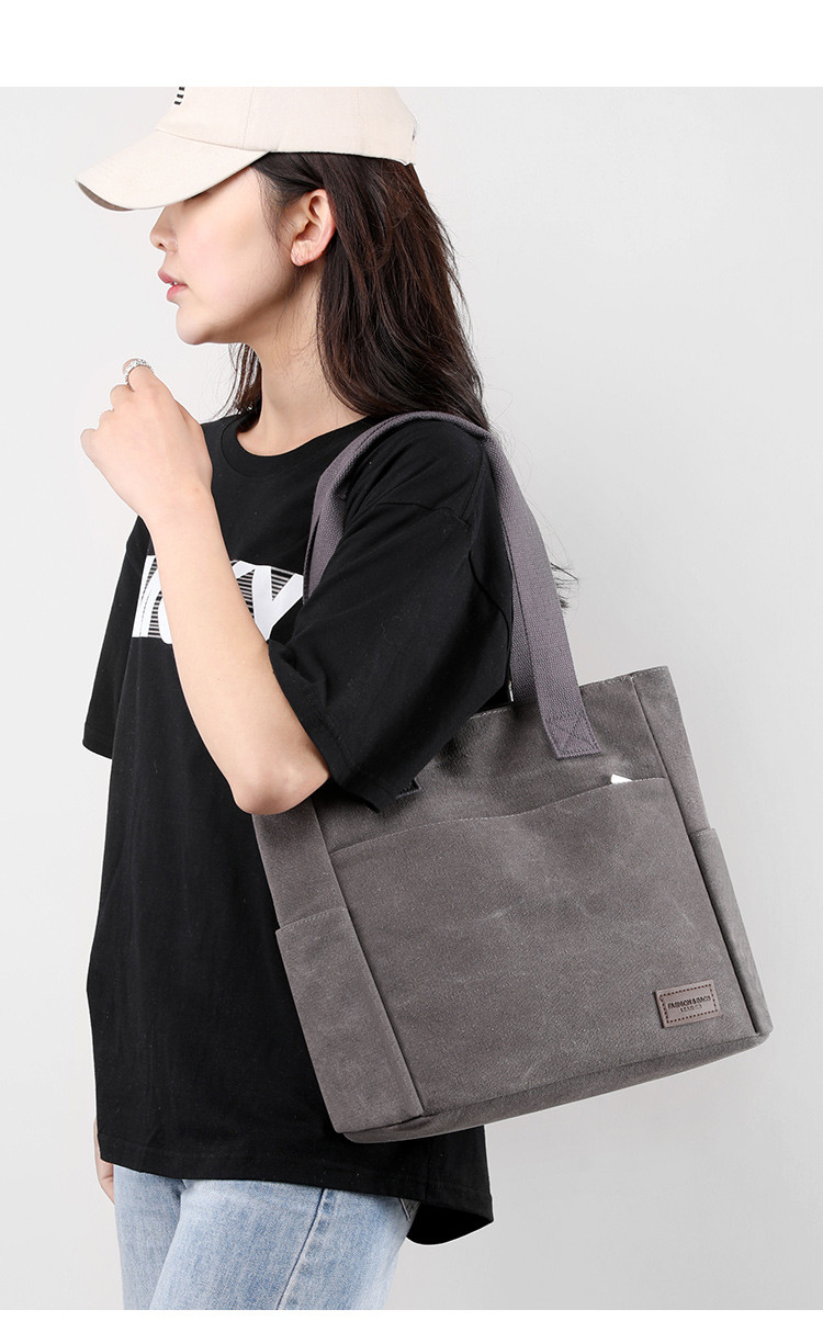 上課通勤大容量上班托特包包女士2025新款單肩文藝帆布包拉鍊布袋