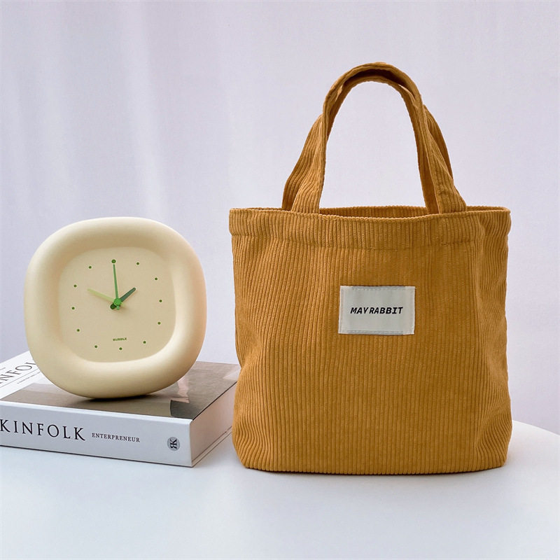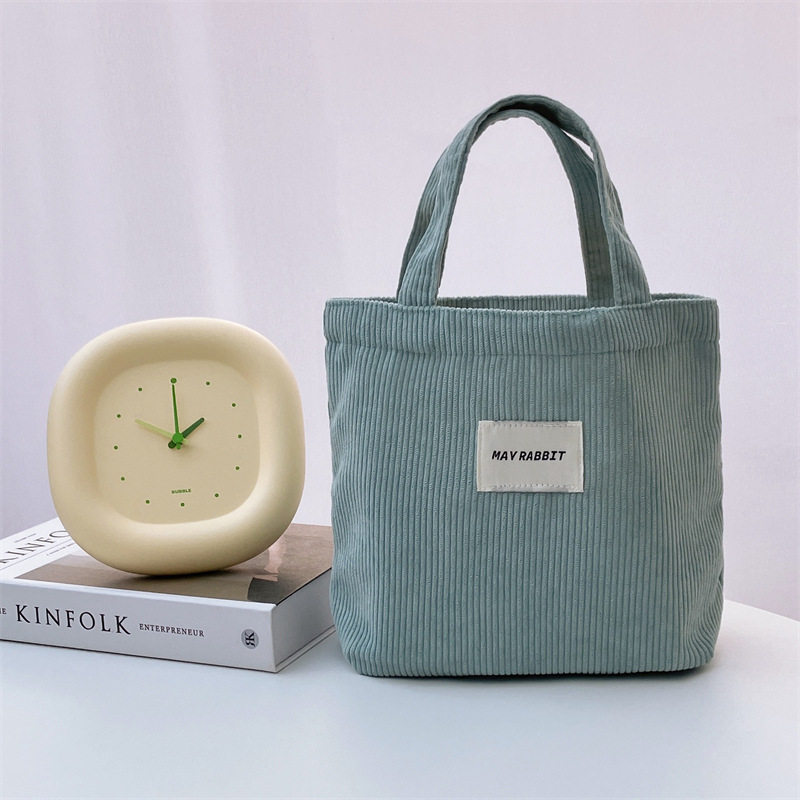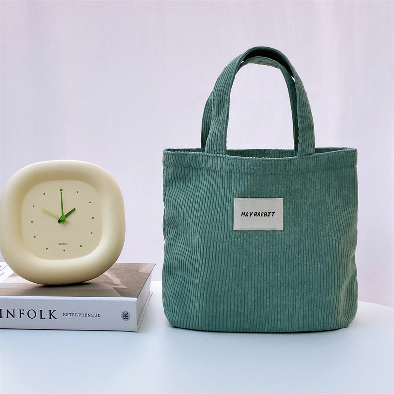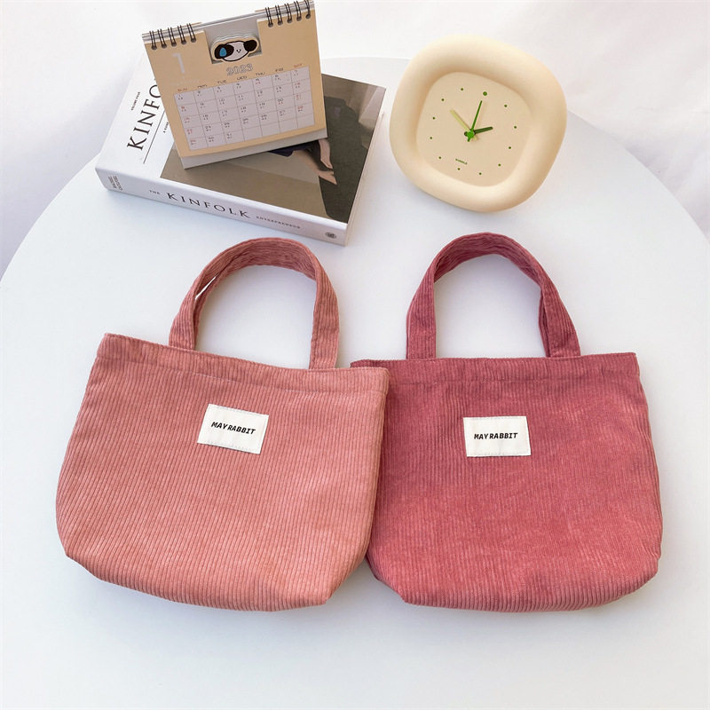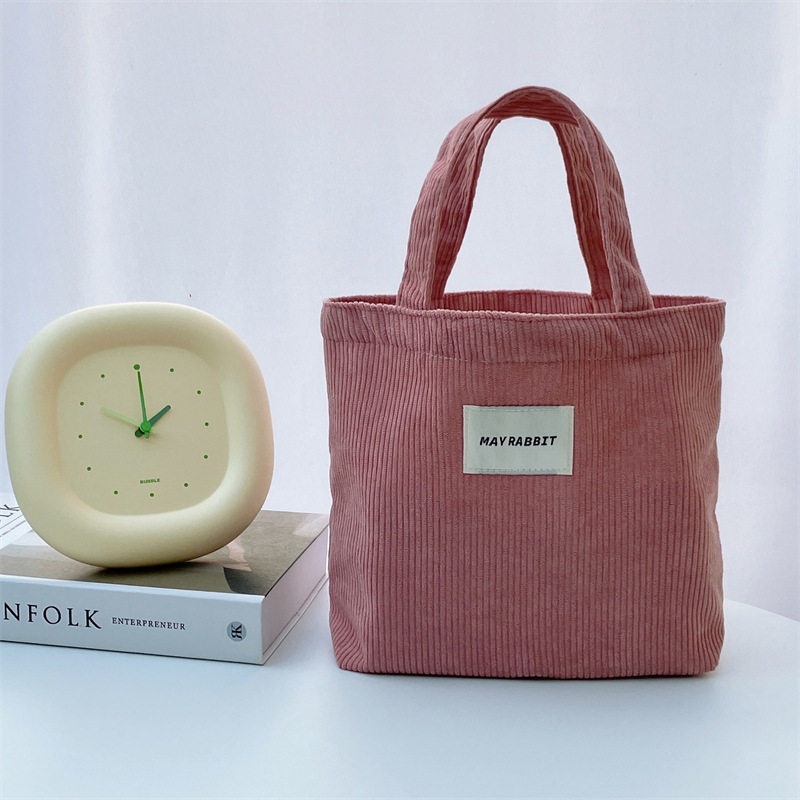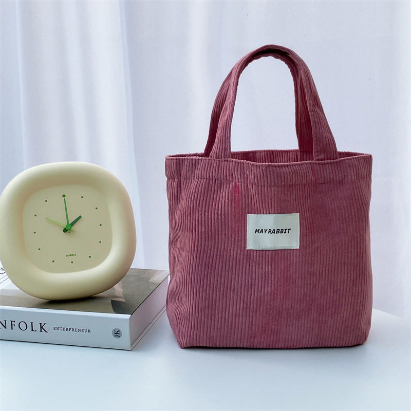 純色燈芯絨手提包帆布包女日系清新大容量上班手拎包托特包便當包