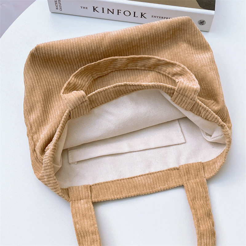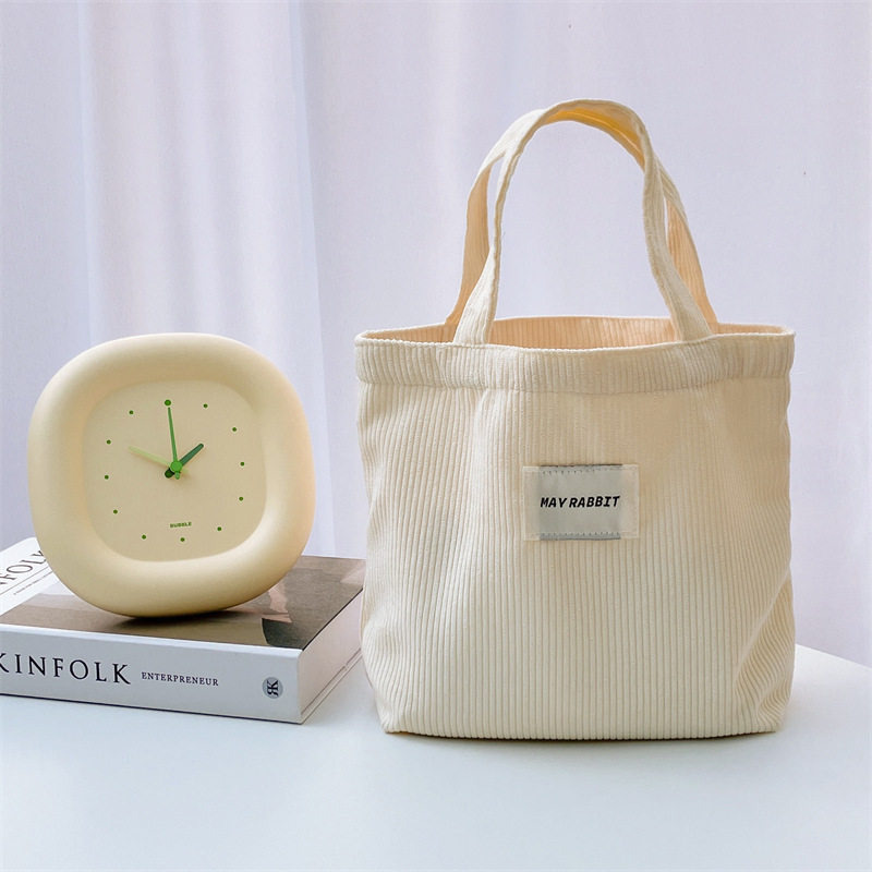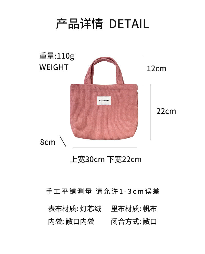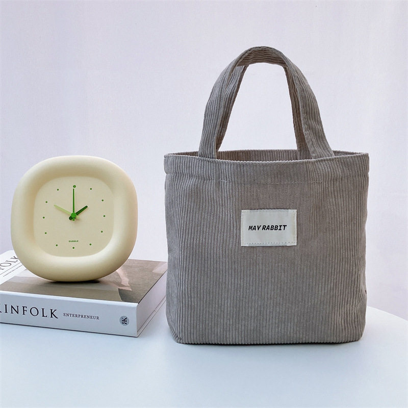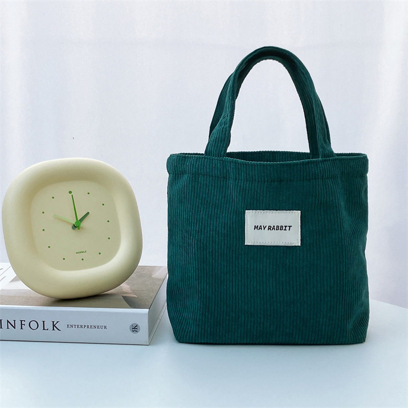 純色燈芯絨手提包帆布包女日系清新大容量上班手拎包托特包便當包