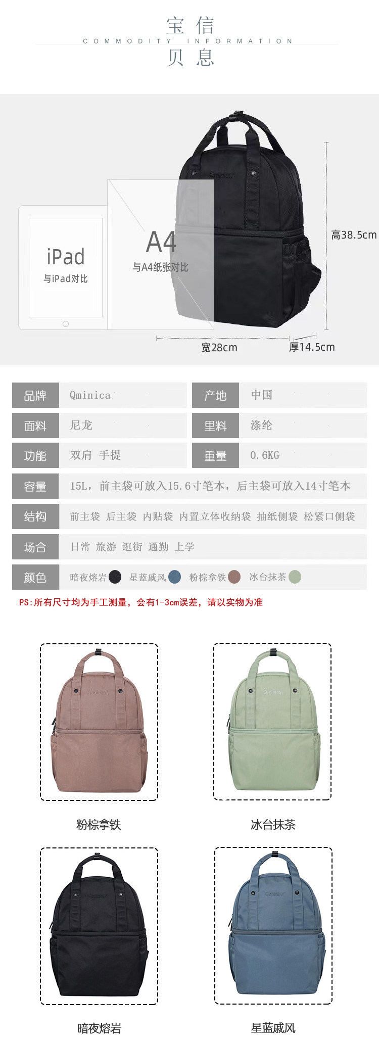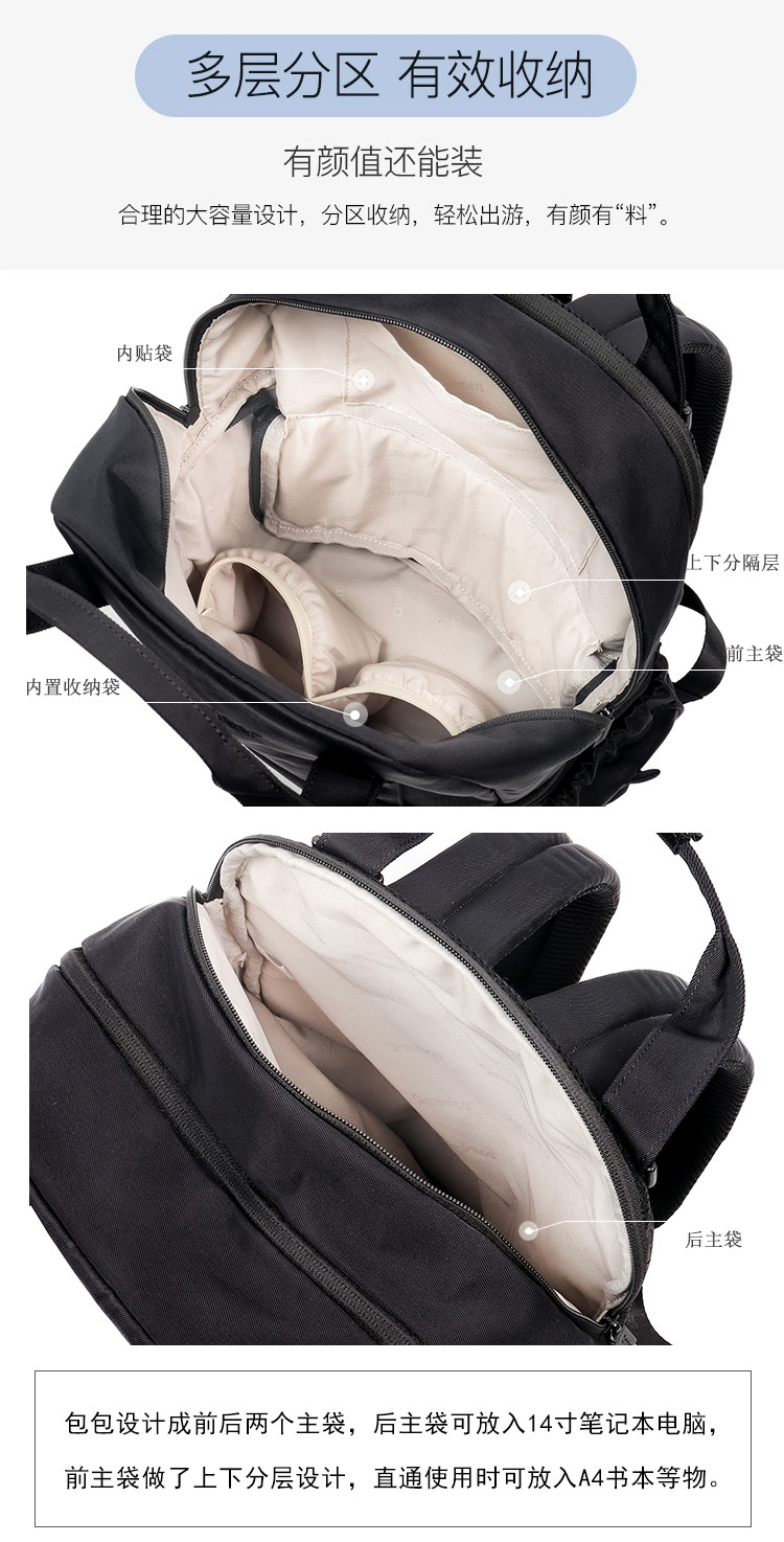 Qminica大容量書包上下分層旅行包健身輕便通勤電腦包休閒雙肩包