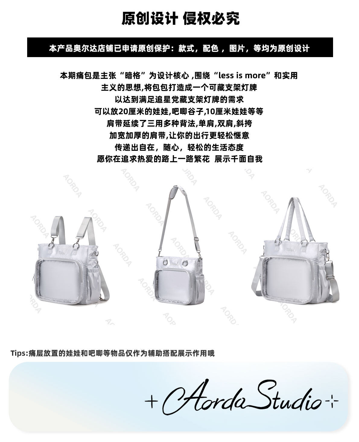 AORDA 演唱會暗格痛包追星藏燈牌包二次元雙肩外出大容量斜背娃包