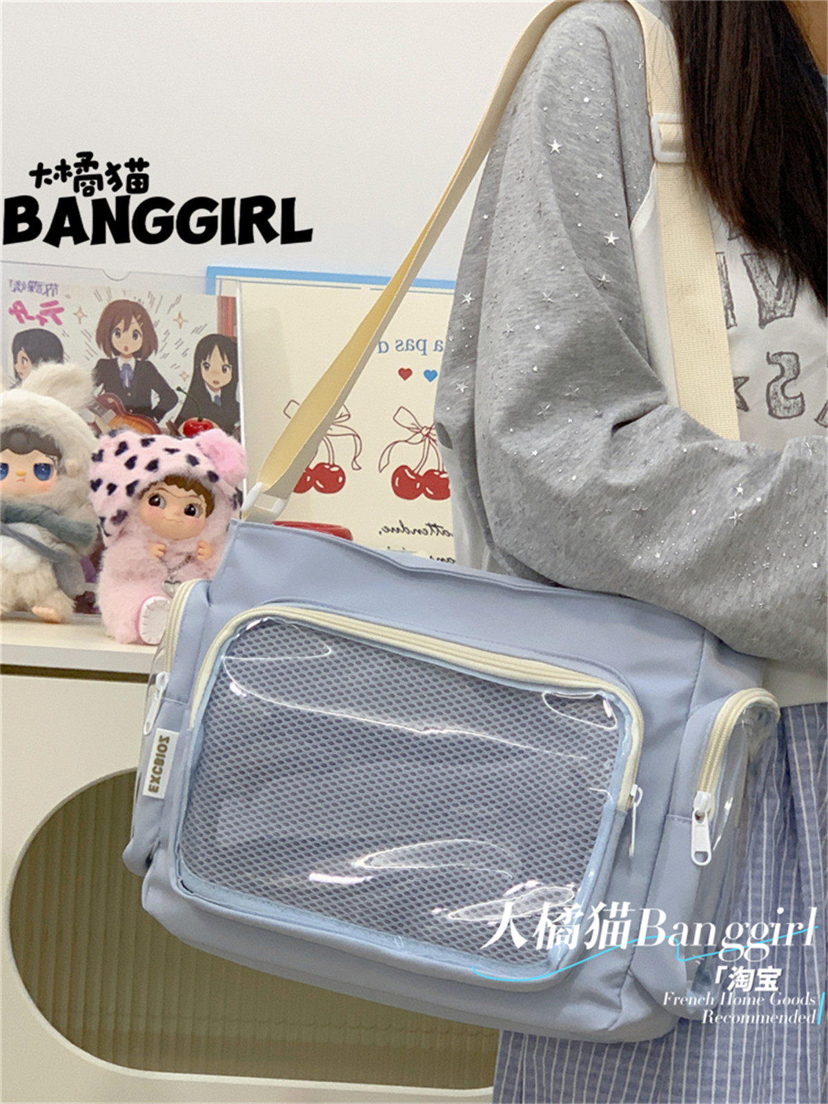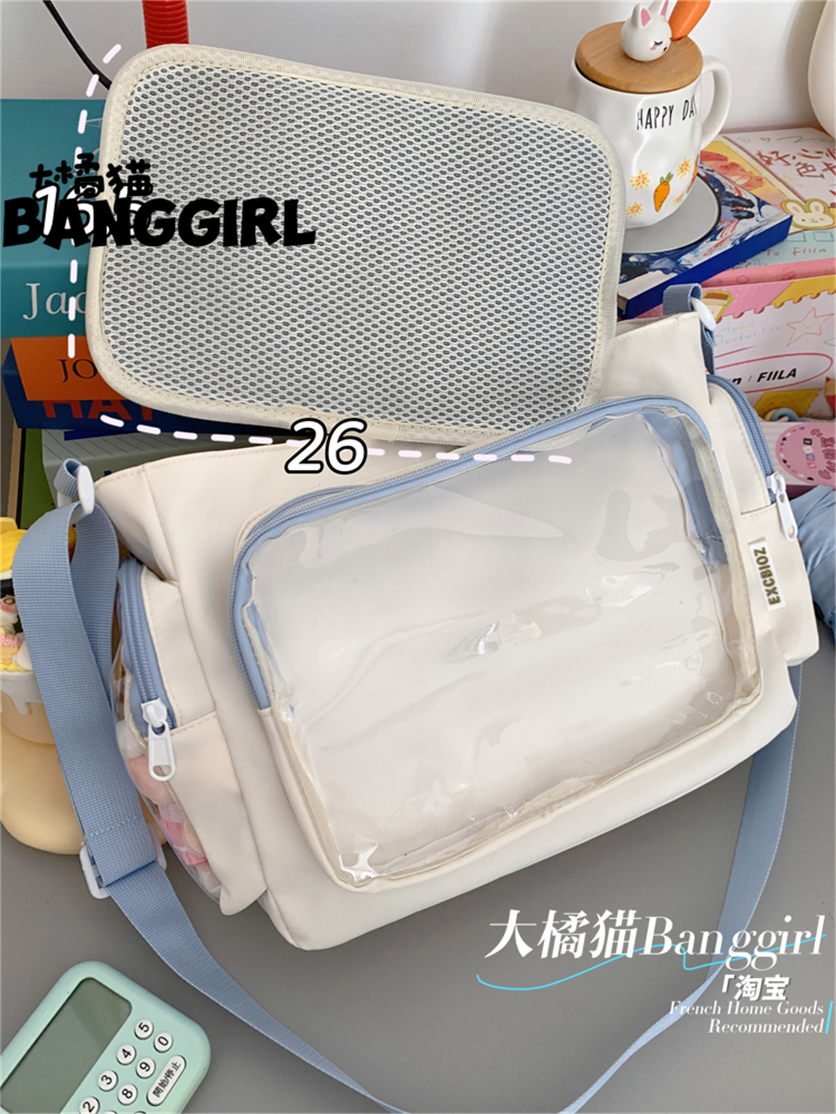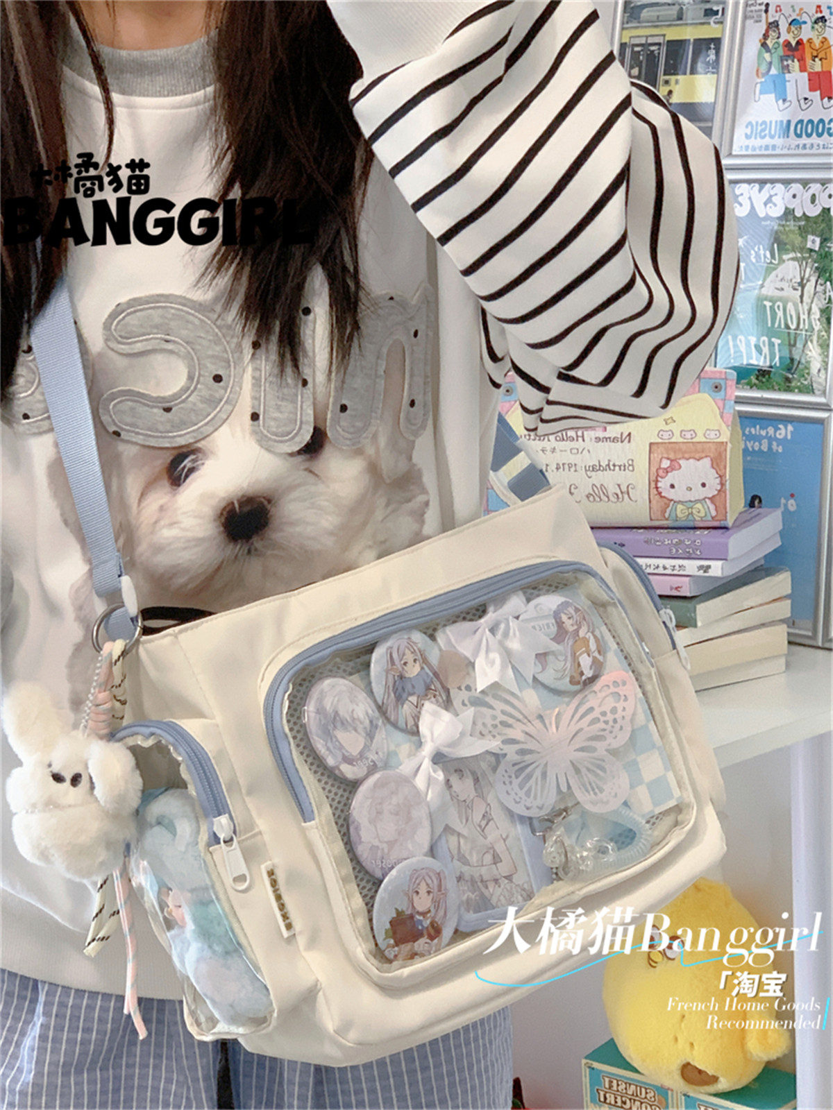 大橘貓學院風百搭簡約大容量斜後後背包少女透明吧唧單肩包娃包痛包女