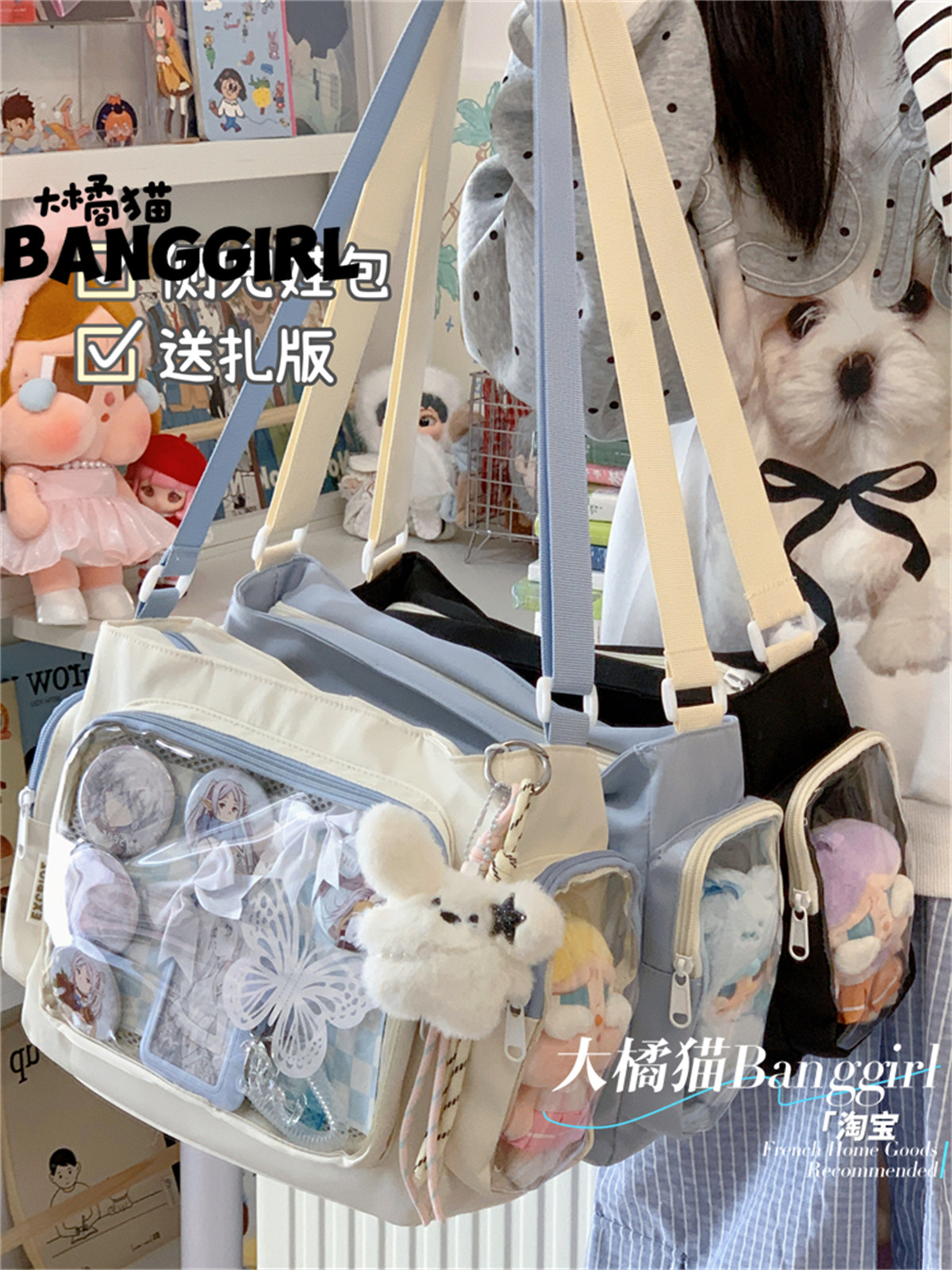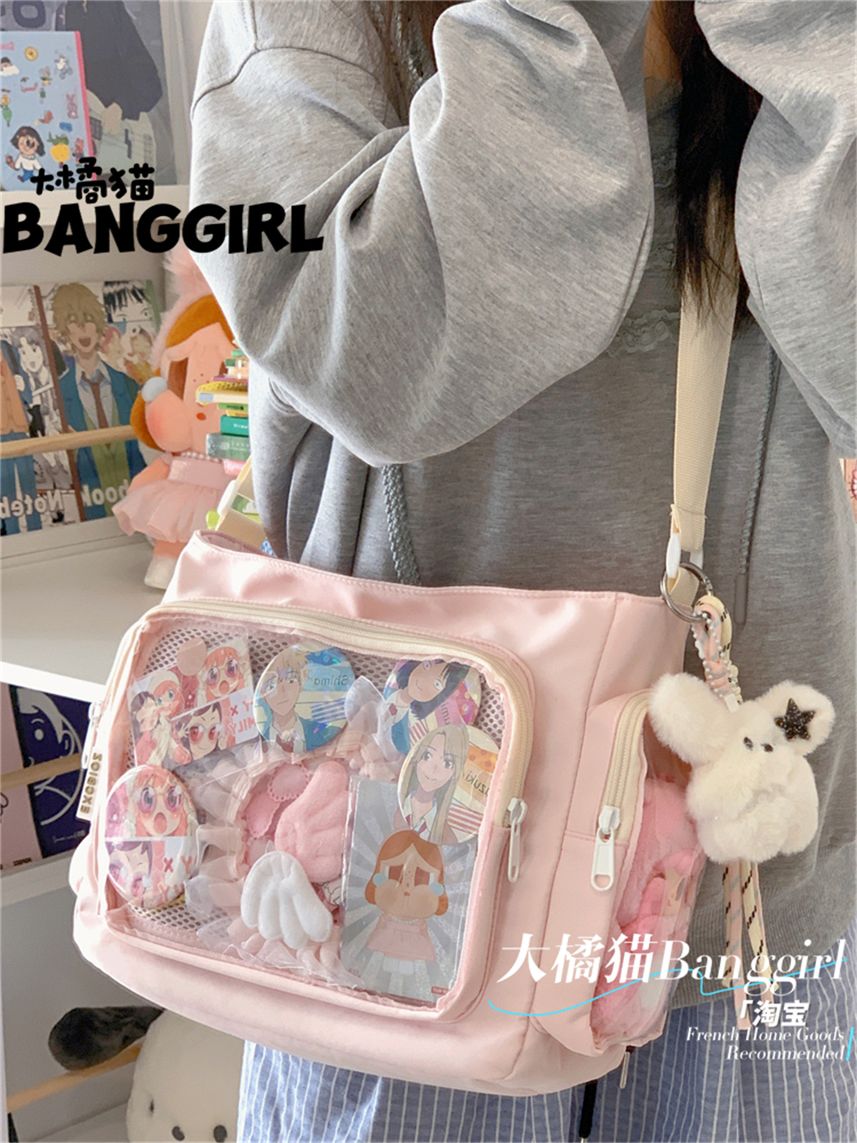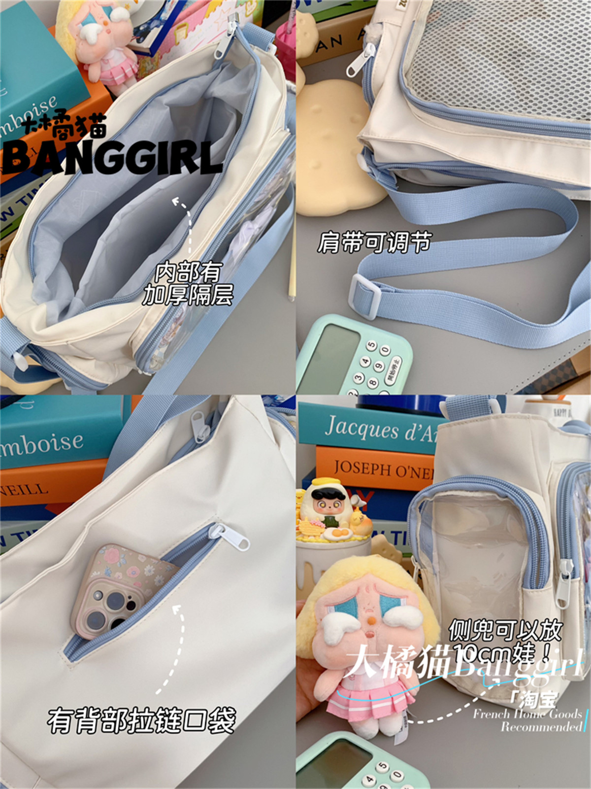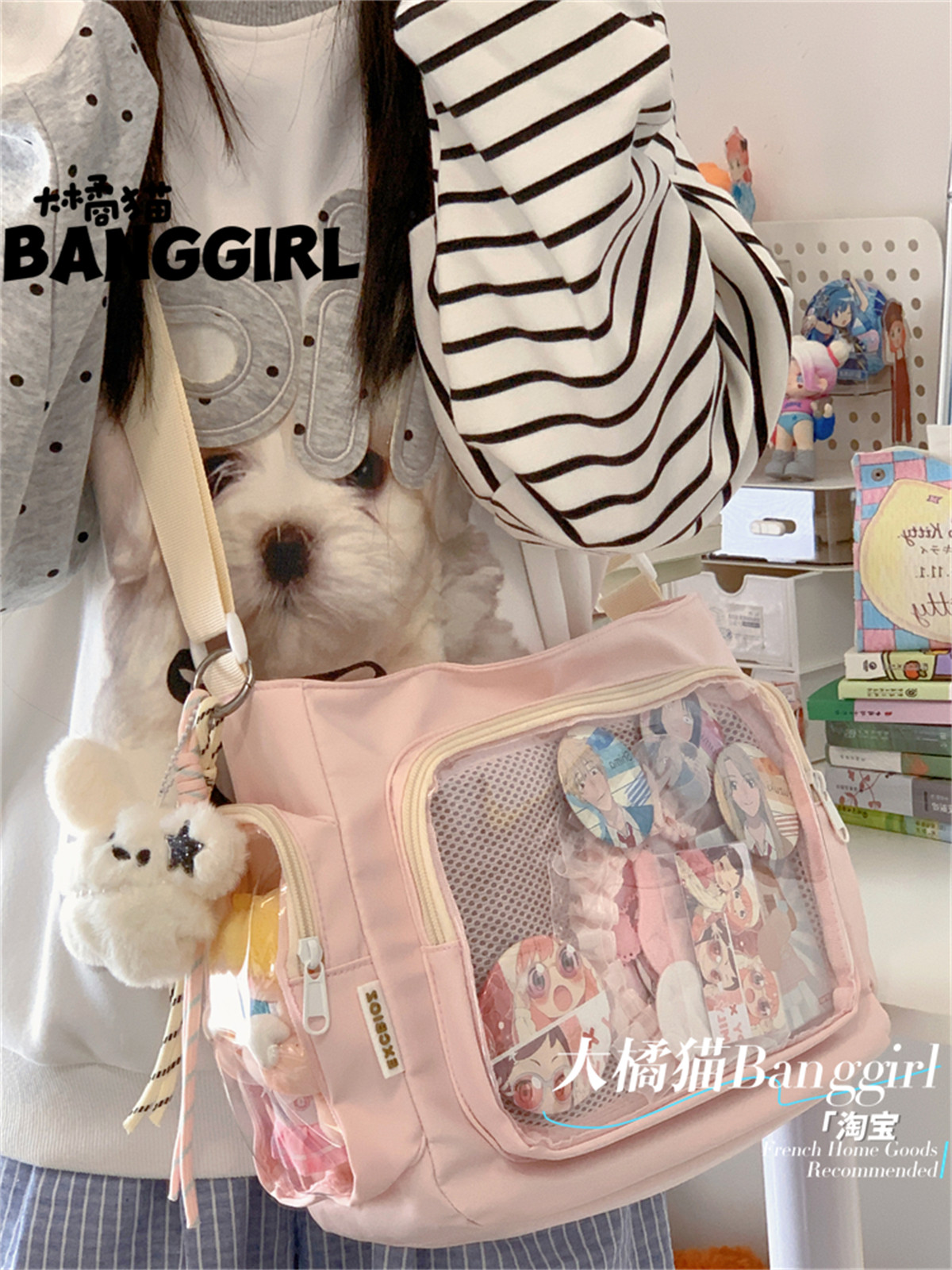 大橘貓學院風百搭簡約大容量斜後後背包少女透明吧唧單肩包娃包痛包女