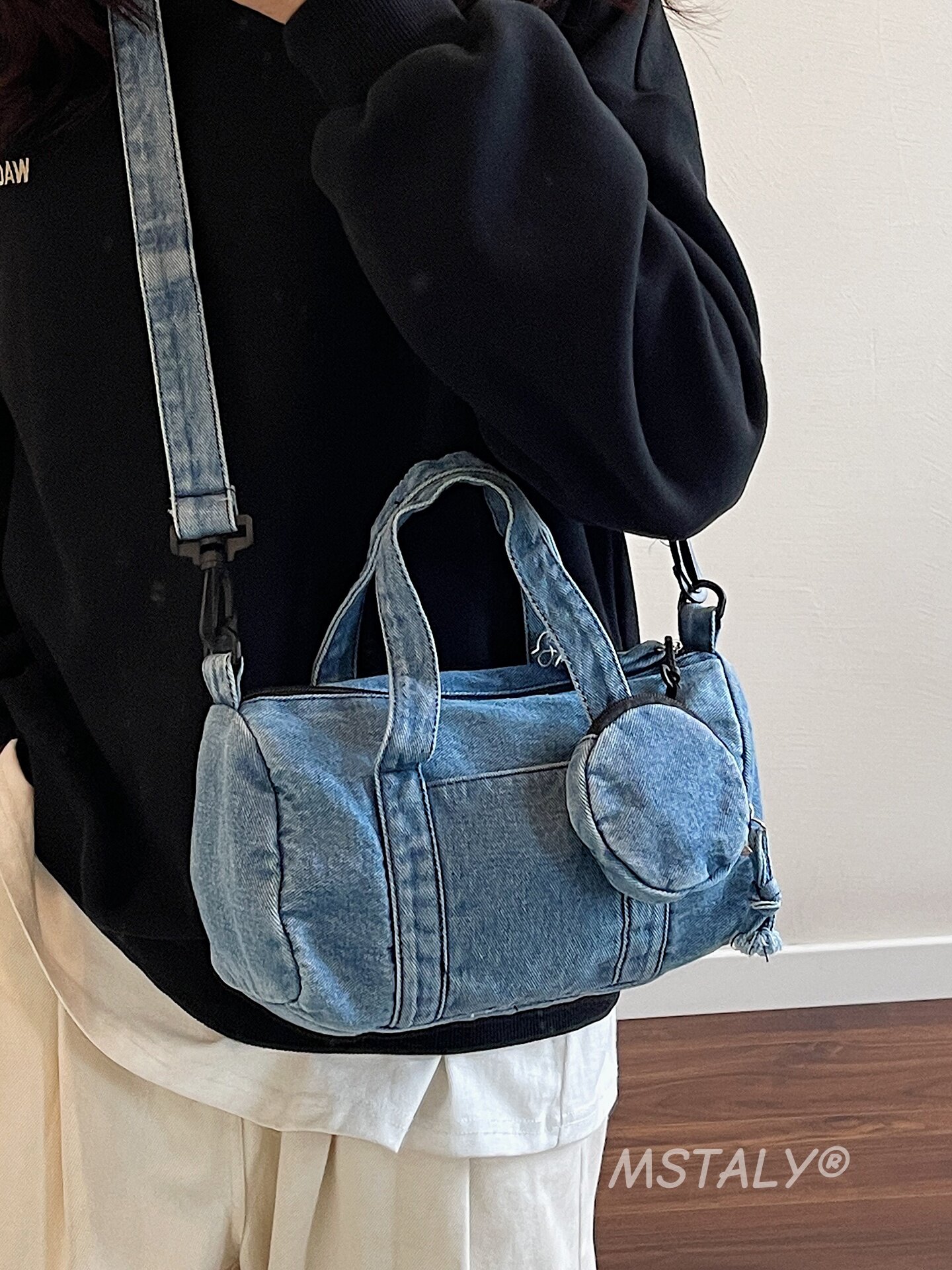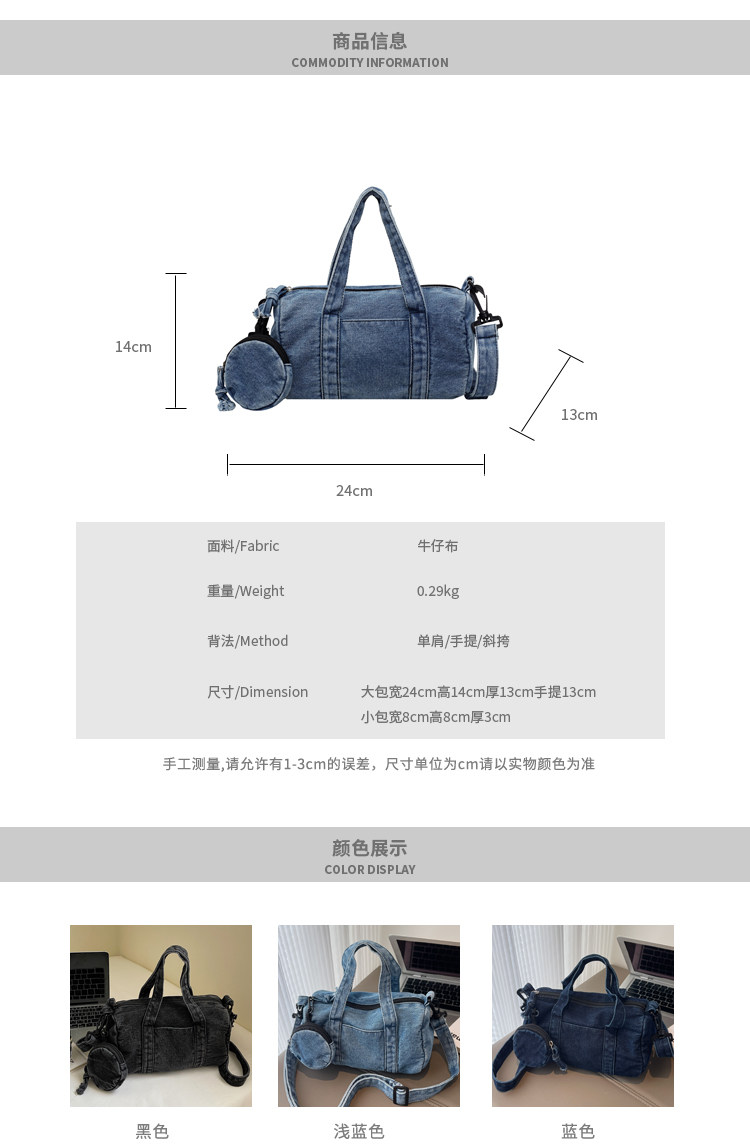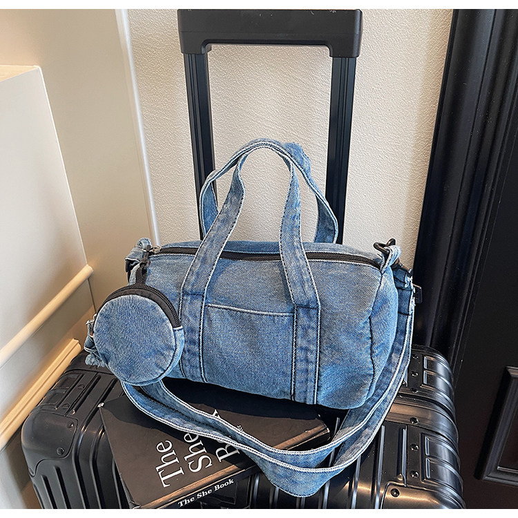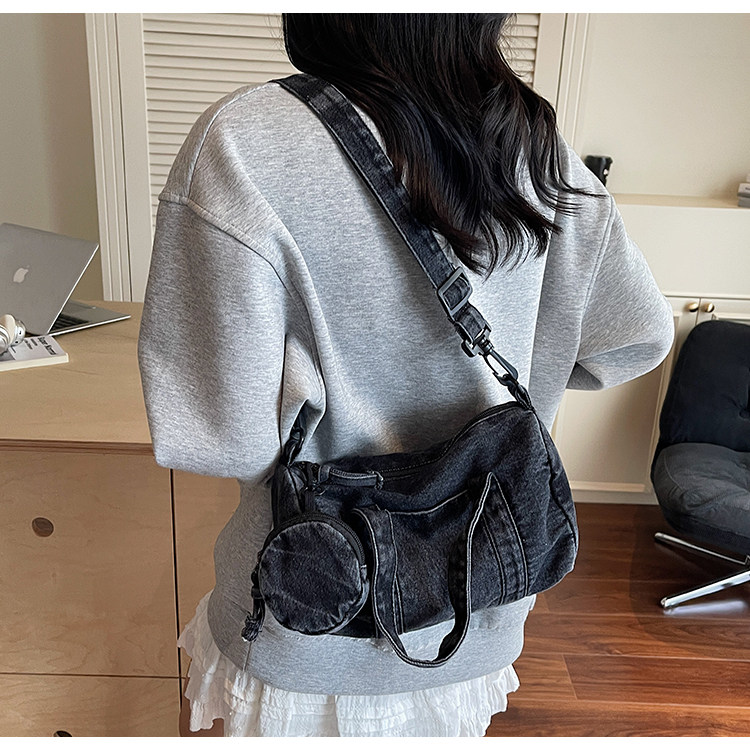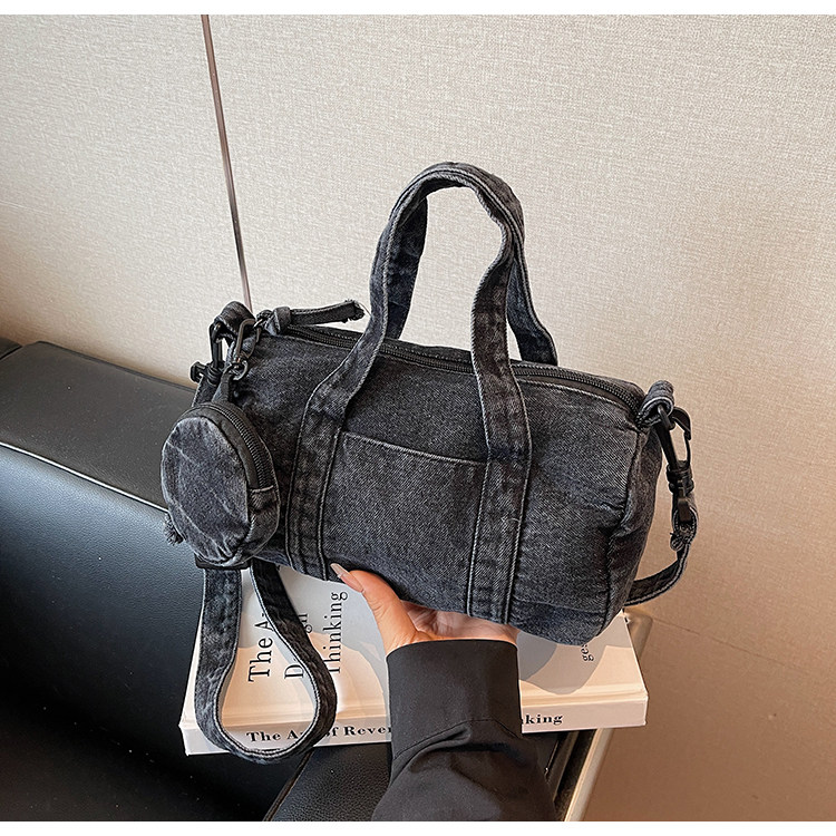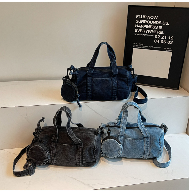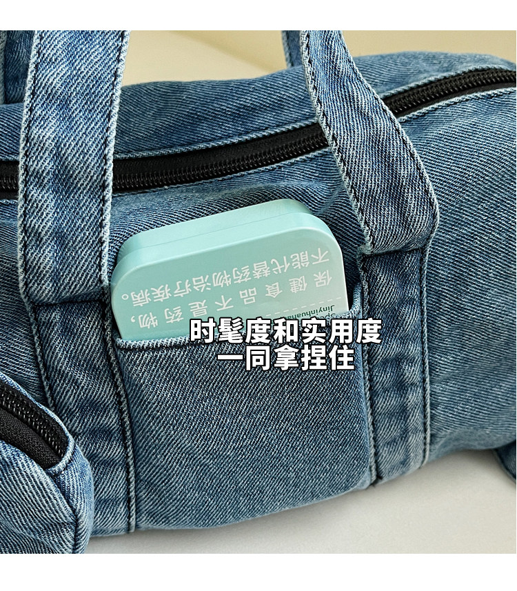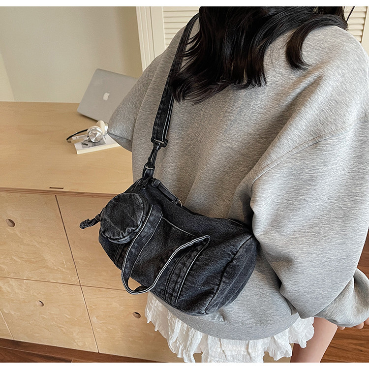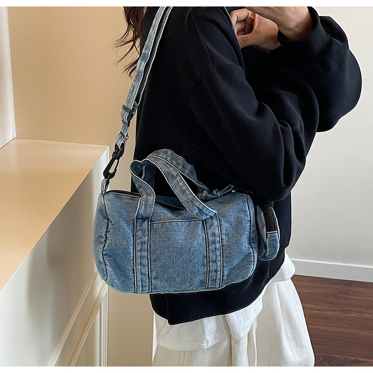 水洗丹甯牛仔布小包包女2026新款時尚手提波士頓包簡約休閒斜後後背包