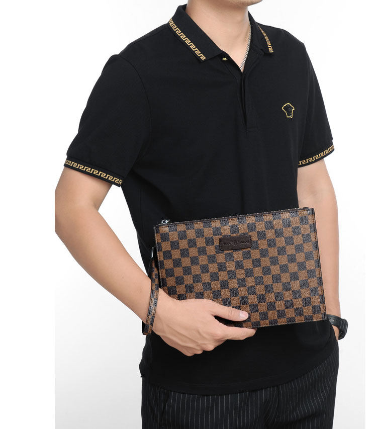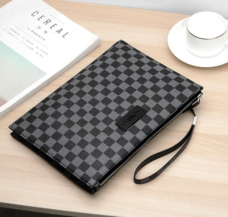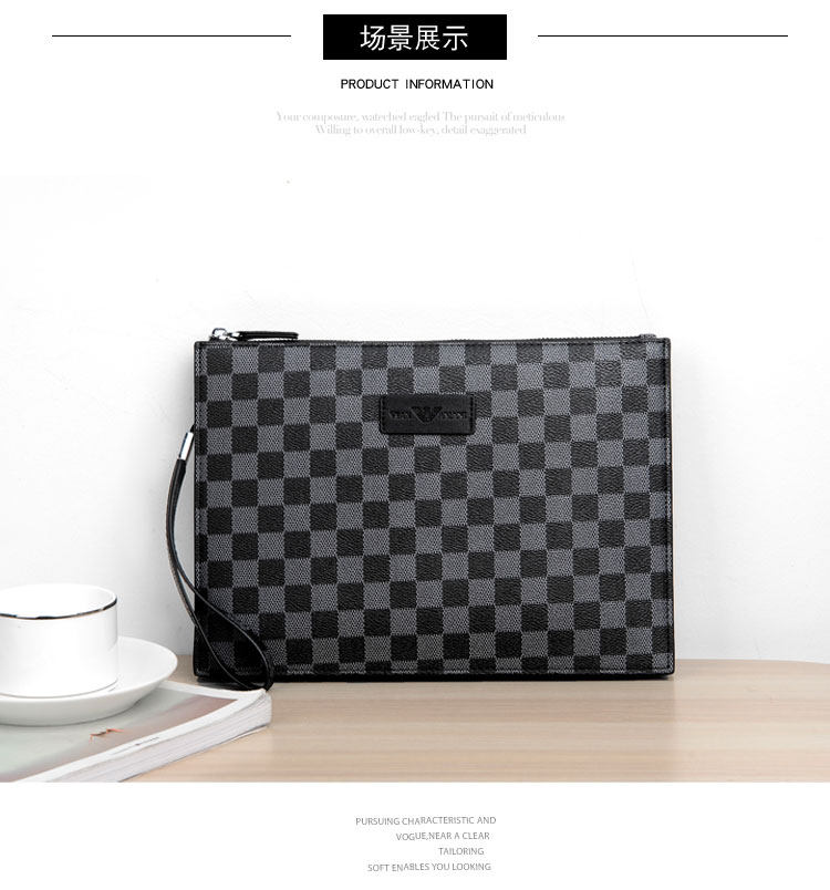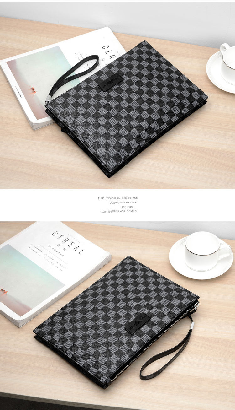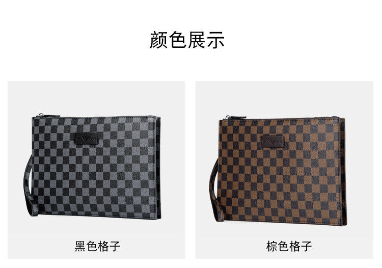 2026新款男士手拿包手包男真皮商務時尚格子信封包手抓包夾包男潮