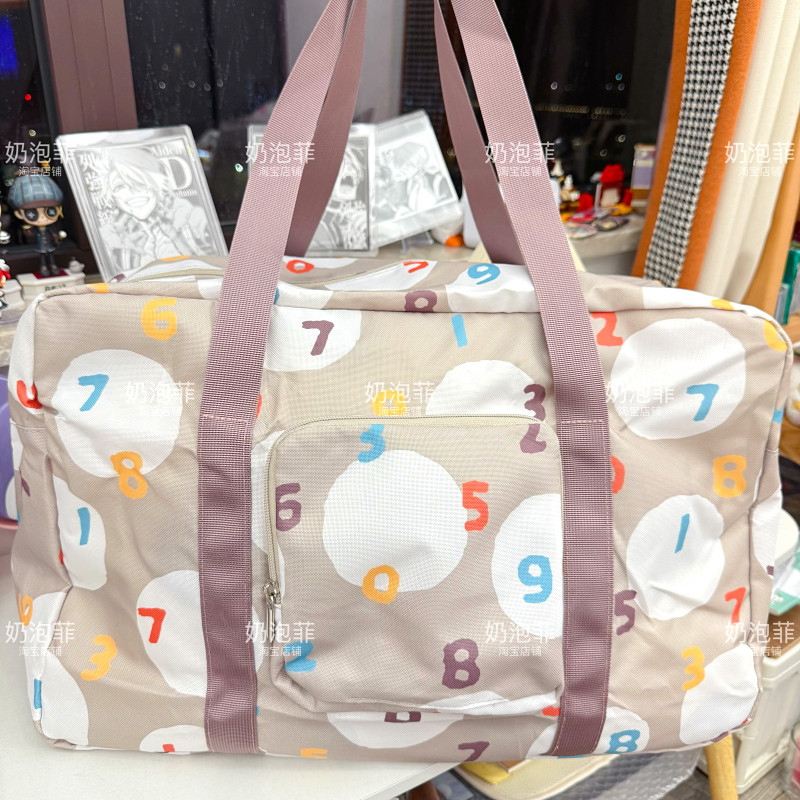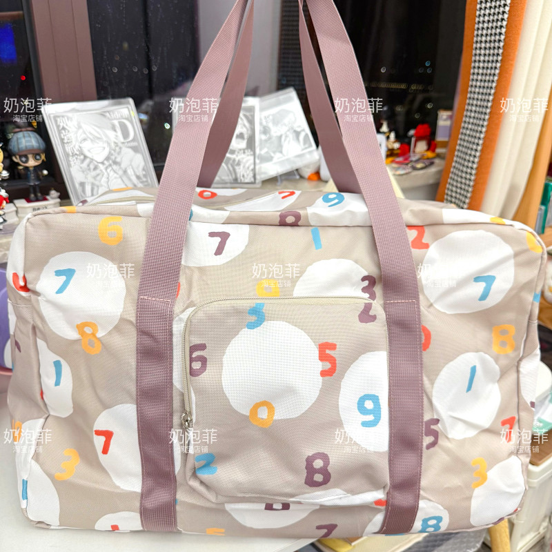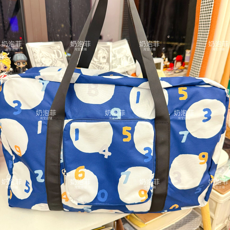 日系潮牌數字旅行袋折曡大容量手提單肩行李袋出差旅遊收納登機包
